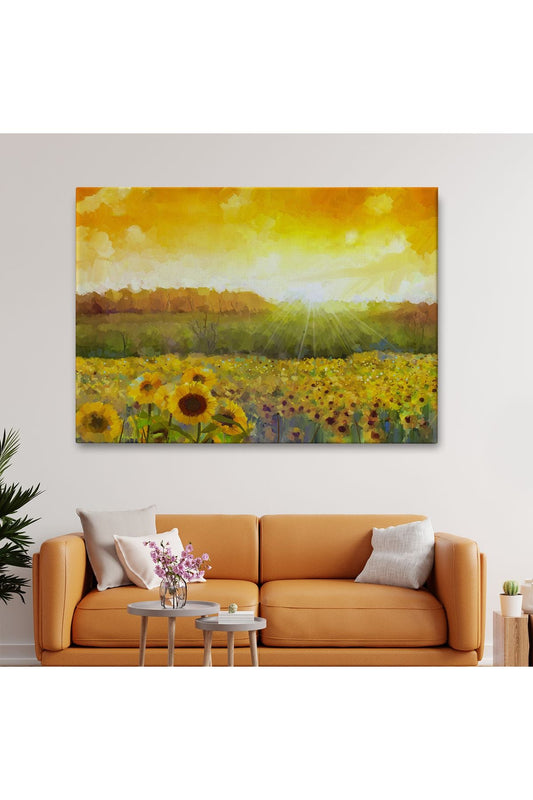 Ayçiçeği Tarlası Yağlıboya Görünüm Dekoratif Kanvas Tablo-3445