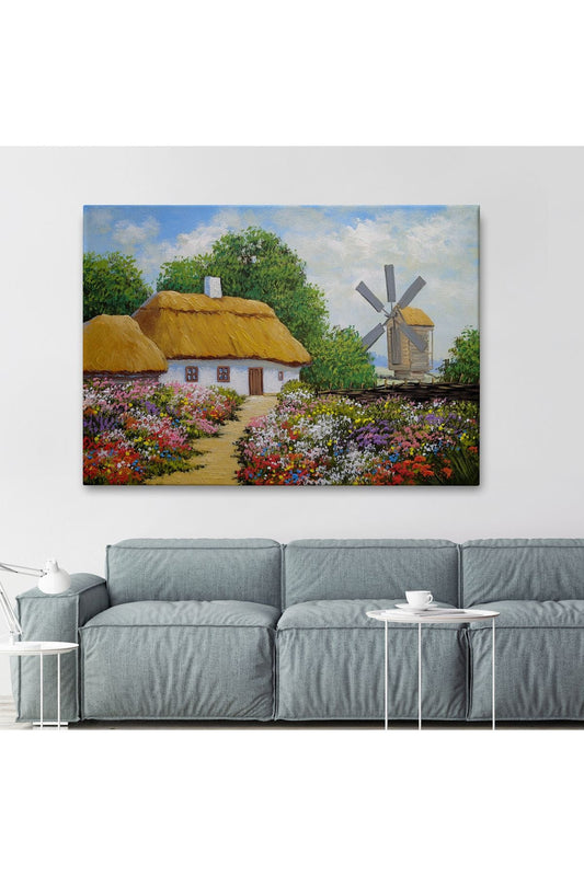 Ukrayna Köy Evi Manzarası Yağlıboya Görünüm Dekoratif Kanvas Duvar Tablosu-3681