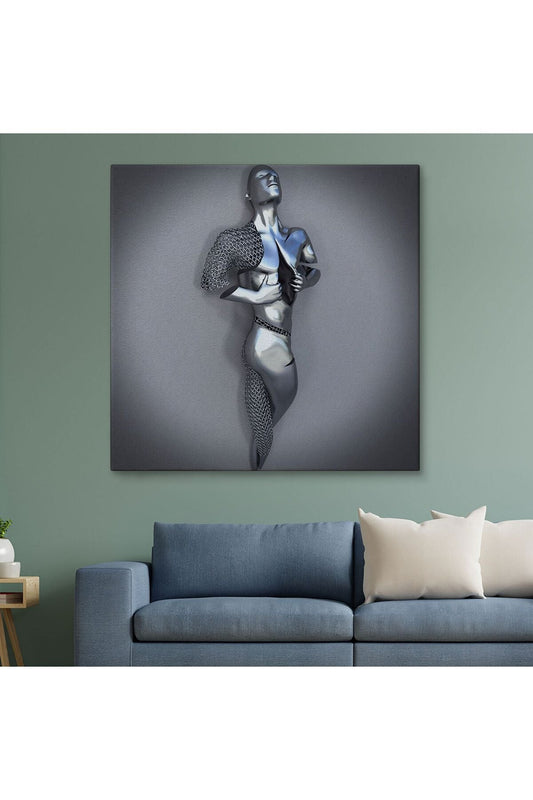Romantik Beden, Aşk Sanatı, 3D Efekti Gümüş İnsan, Metalik Efektli Kanvas Tablo-5352