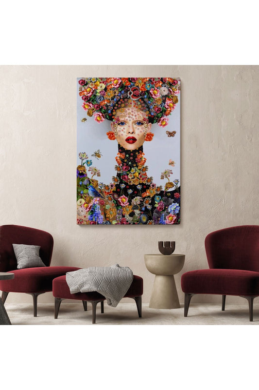 Çiçek ve Kadın Temalı Dekoratif Duvar Tablosu-6338