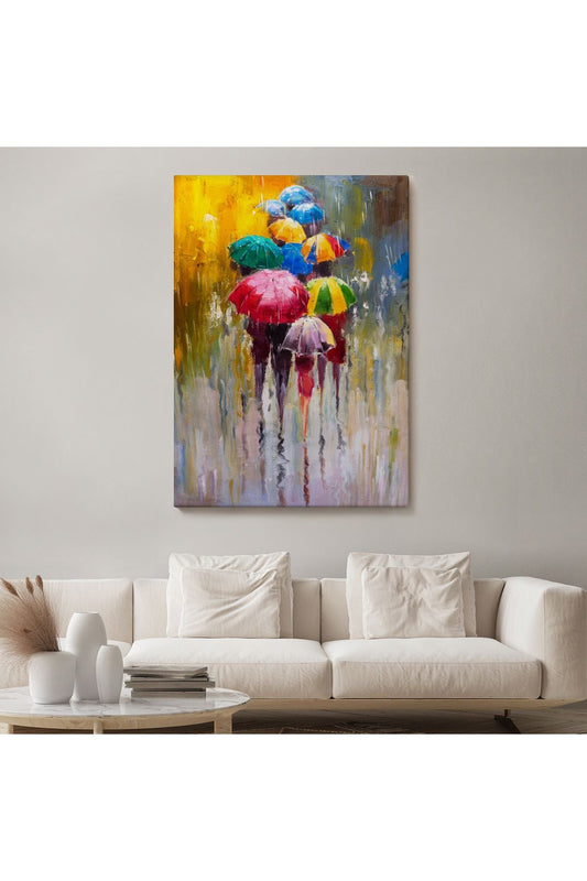 Renkli Şemsiyeler Yağlıboya Görünüm Dekoratif Kanvas Duvar Tablosu -5932
