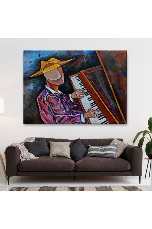DB HG Piyano Çalan Sürreal Adam Duvar Tablosu-3599
