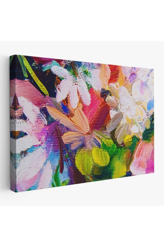 DB Renkli Çiçek Desenli Yağlıboya Görünüm Dekoratif Kanvas Duvar Tablosu-3566
