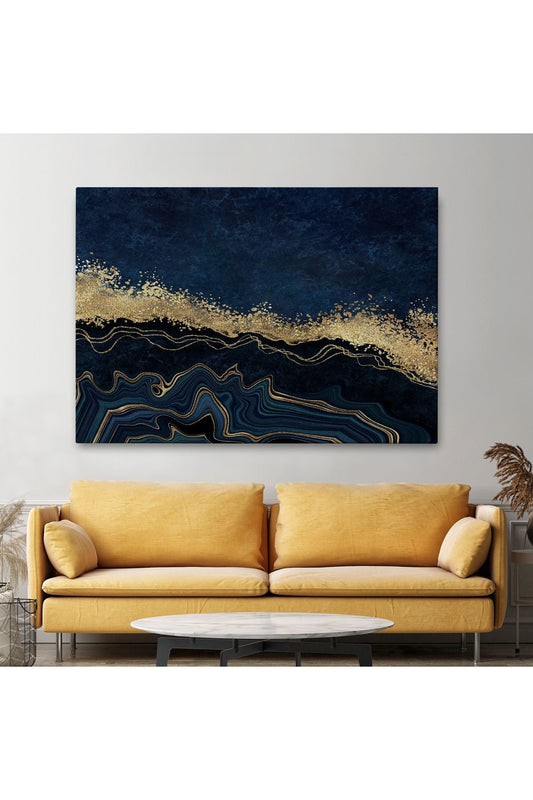 Mavi ve Gold'un Müthiş Uyumu Mermer Görünümlü Modern Kanvas Tablo-5062