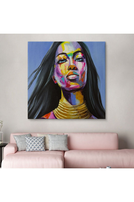 Renkli Kadın Yağlıboya Görünüm Dekoratif Kanvas Duvar Tablosu-5835
