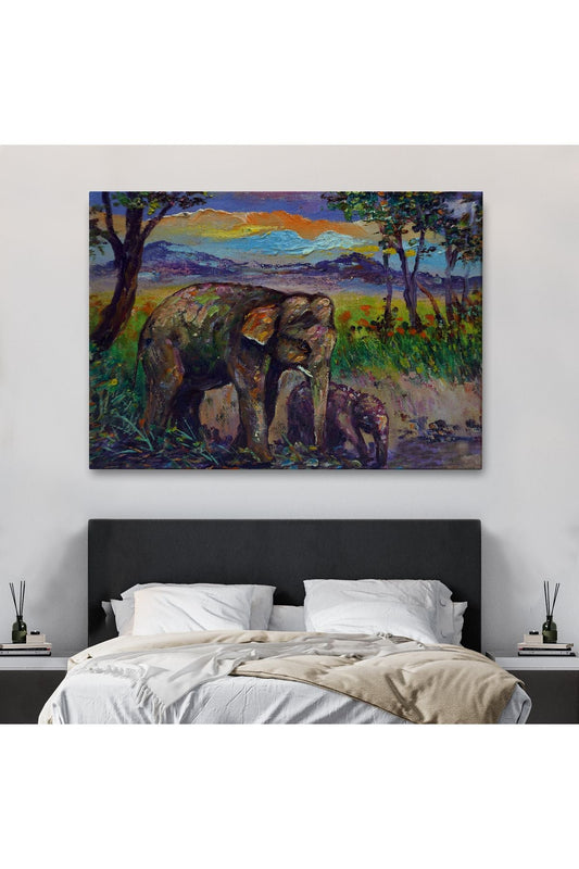 Ormandaki Yavru Fil ve Anne Fil Tablosu-1242