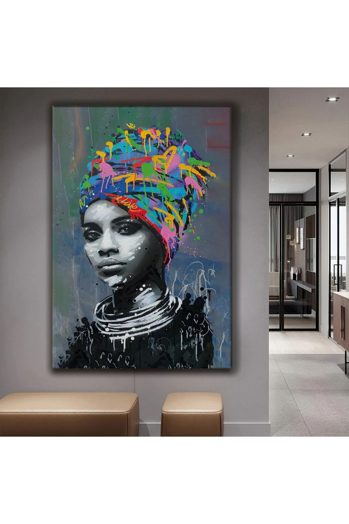 Kolaj Çizim Afrikalı Geç Kız Kanvas Tablo