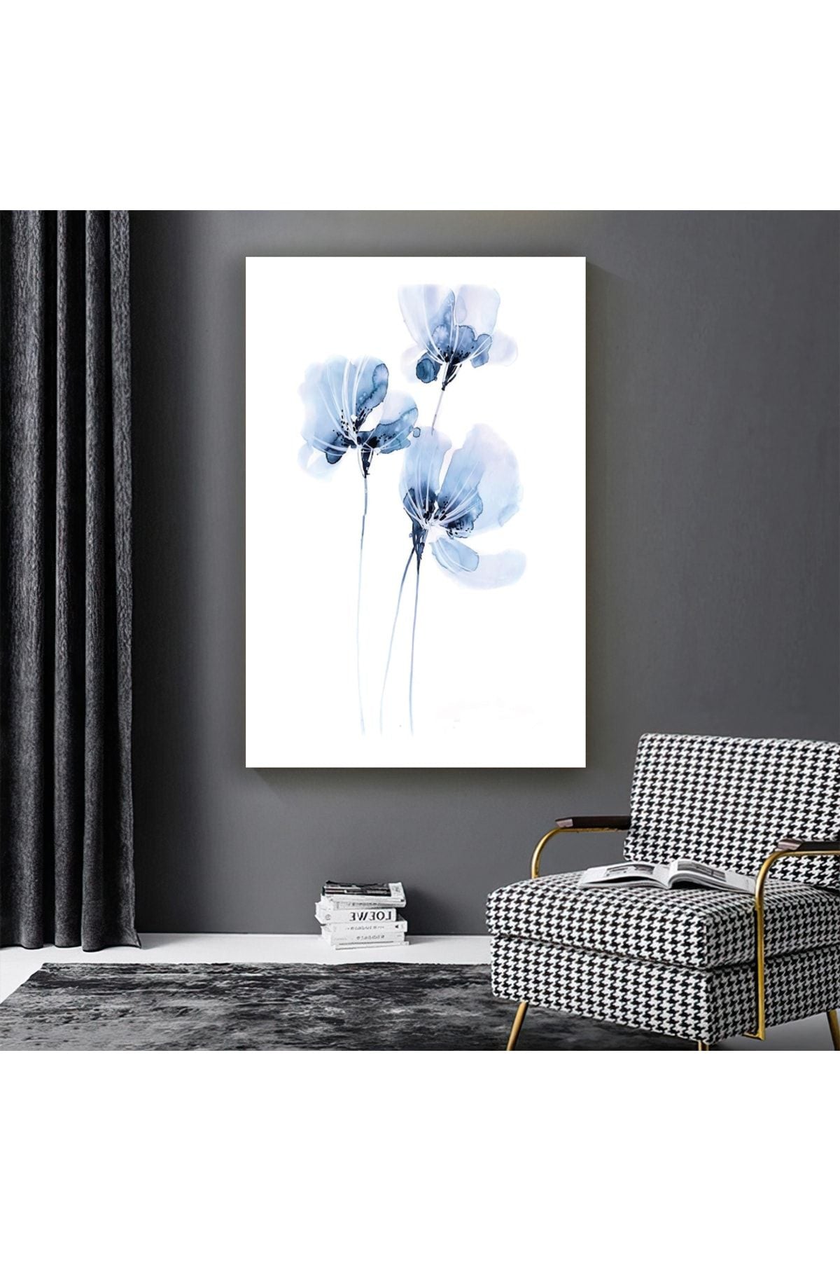 Kolaj Çizim Mavi Çiçekler Kanvas Tablo