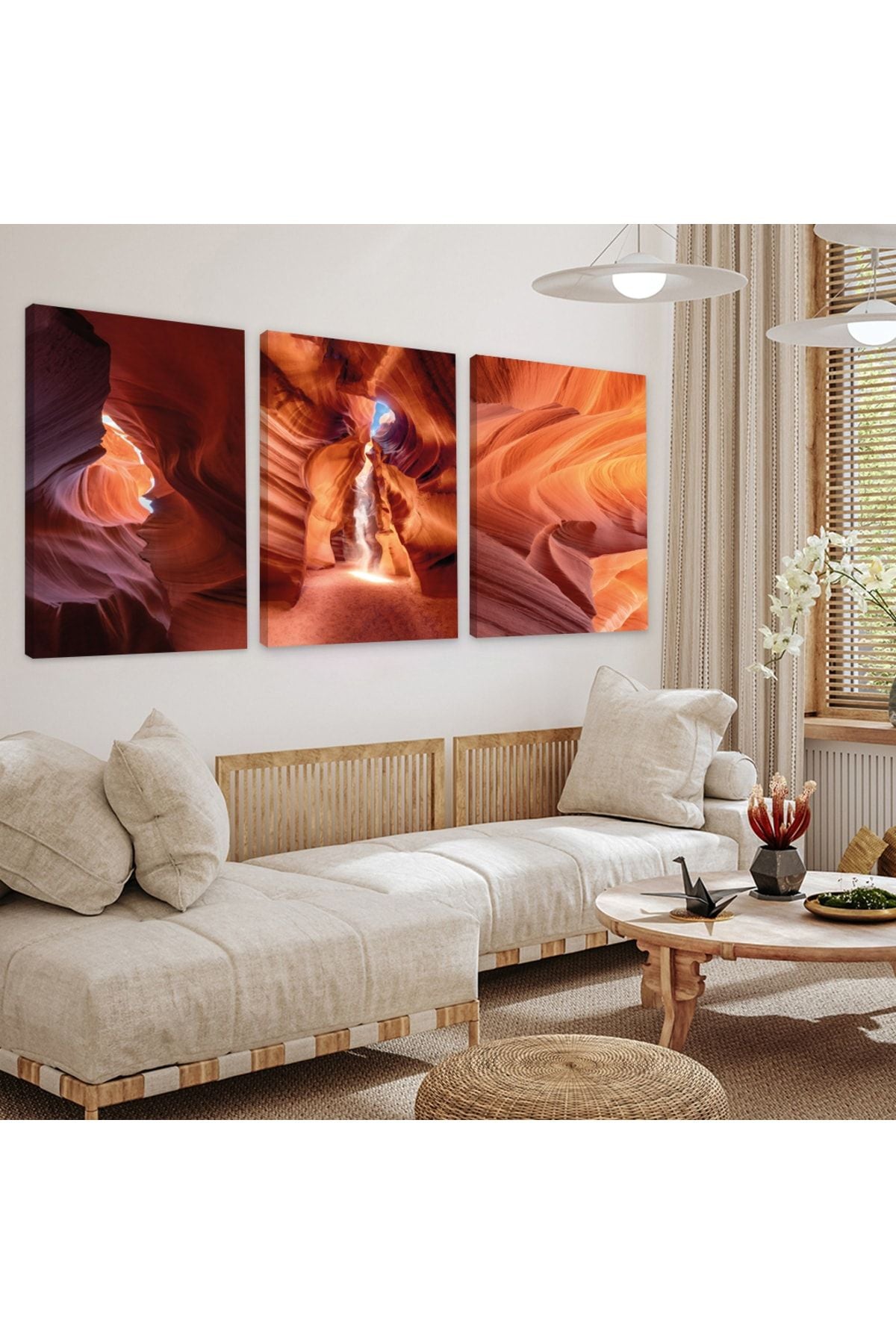 Mağara Soyut Desen 3'Lü Kanvas Tablo