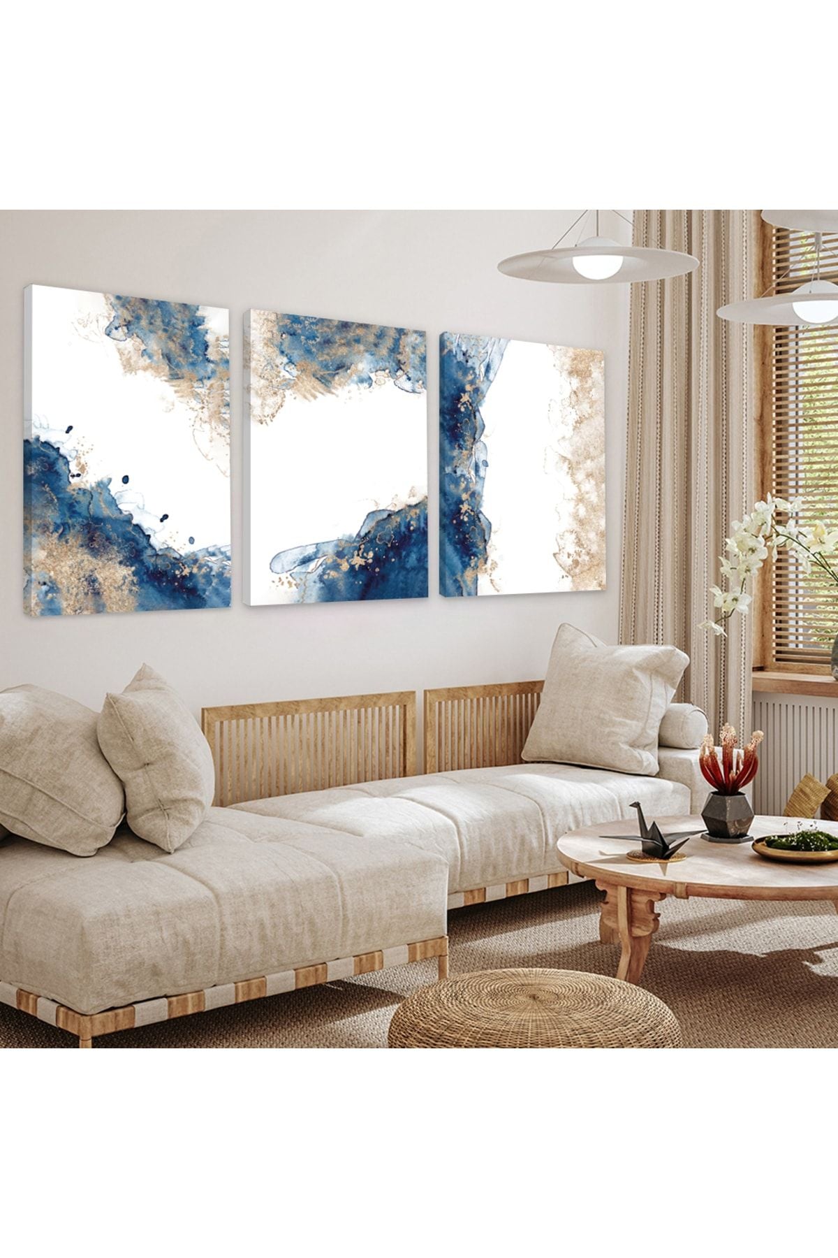 Mavi Beyaz Kolaj 3'Lü Kanvas Tablo
