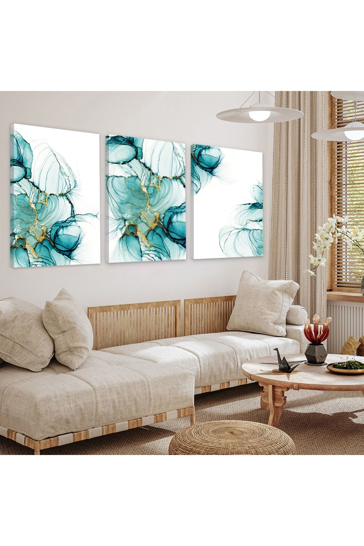 Mavi Çiçek Kolaj 3'Lü Kanvas Tablo