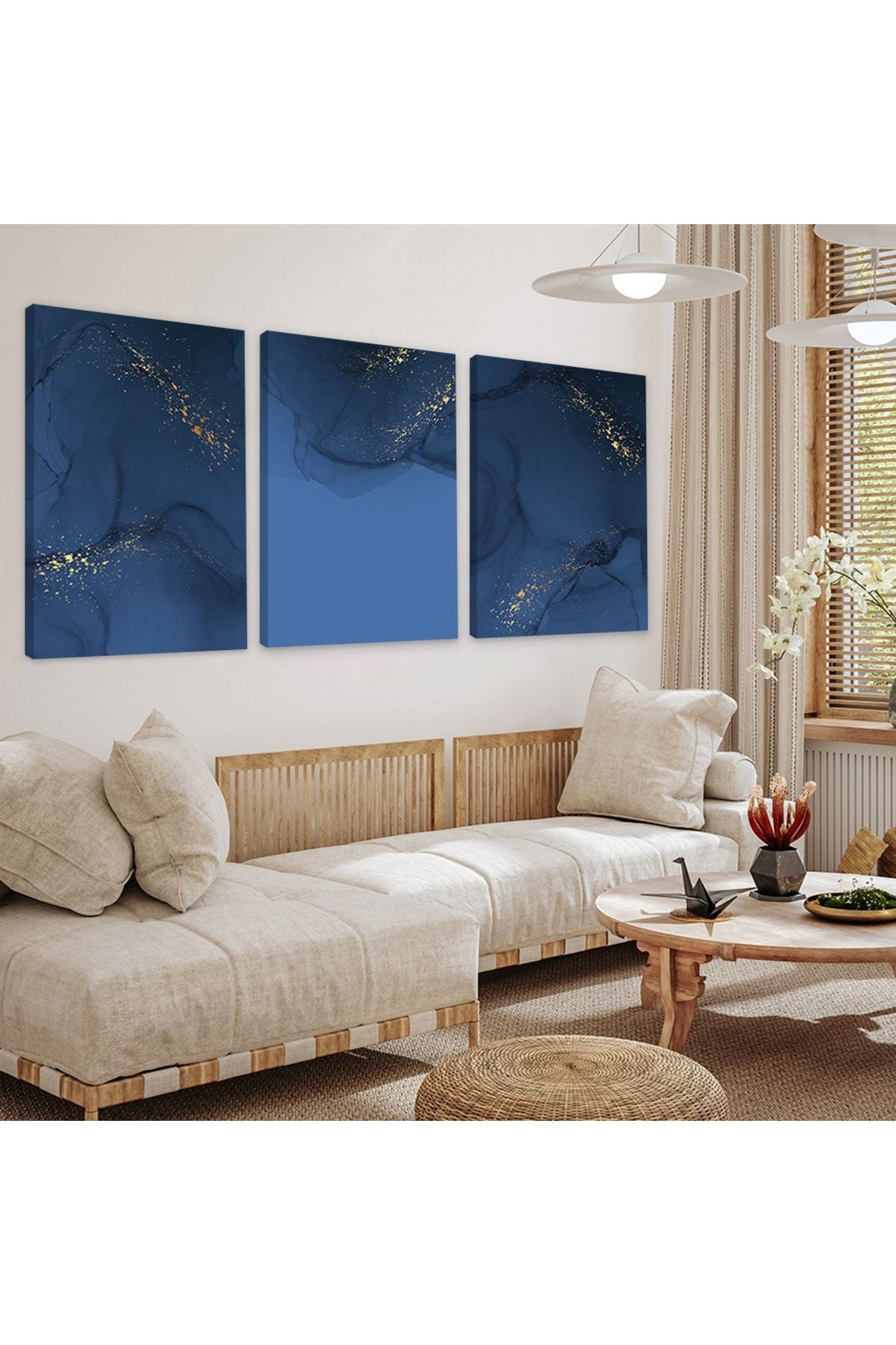 Mavi Soyut Desen 3'Lü Kanvas Tablo