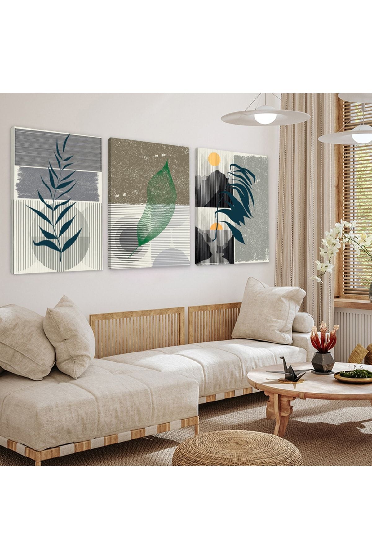 Minimalist Çiçek Soyut Desen 3'Lü Kanvas Tablo