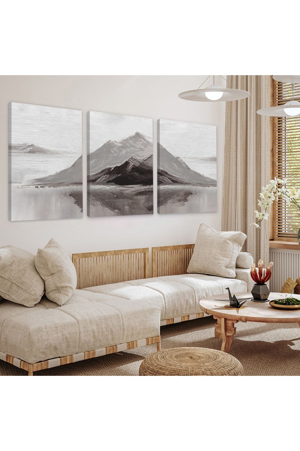 Minimalist Dağ Manzara Soyut Desen 3'Lü Kanvas Tablo
