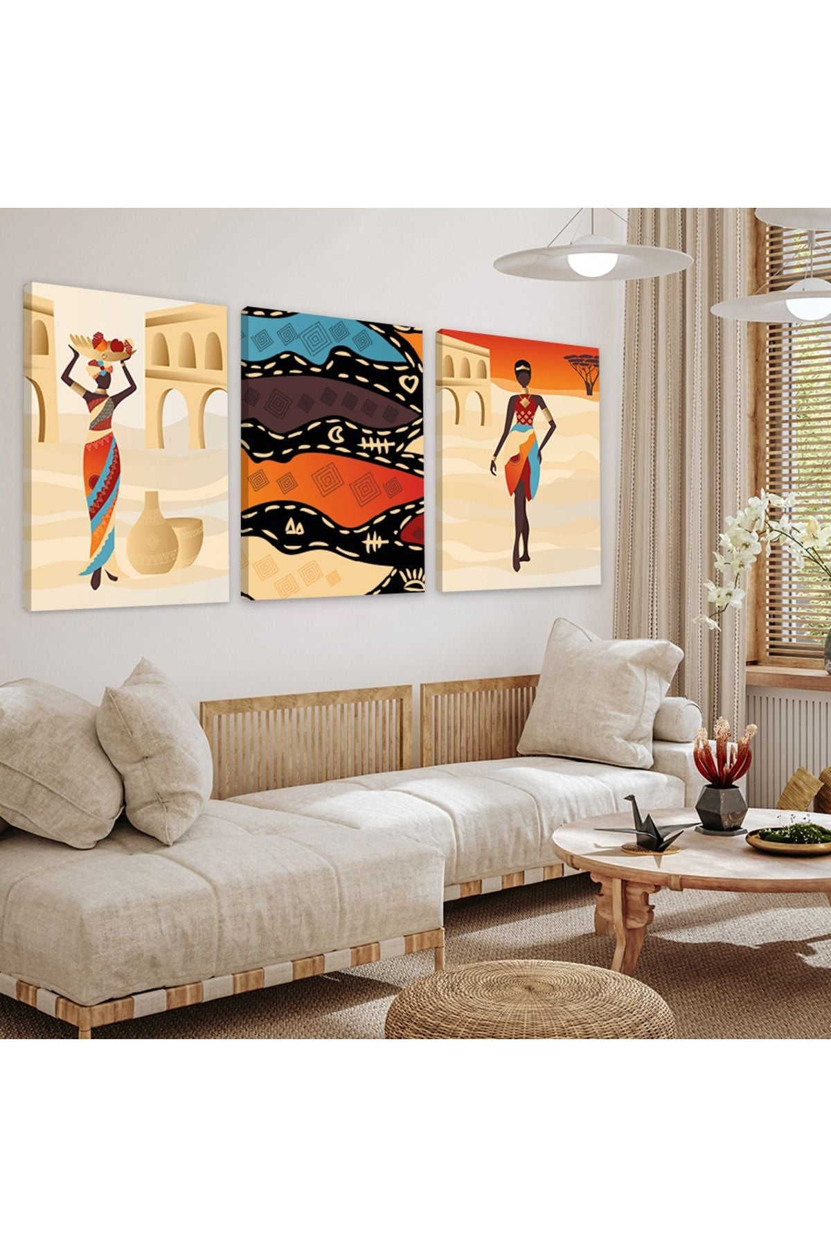 Mısır Medeniyeti Soyut Desen 3'Lü Kanvas Tablo
