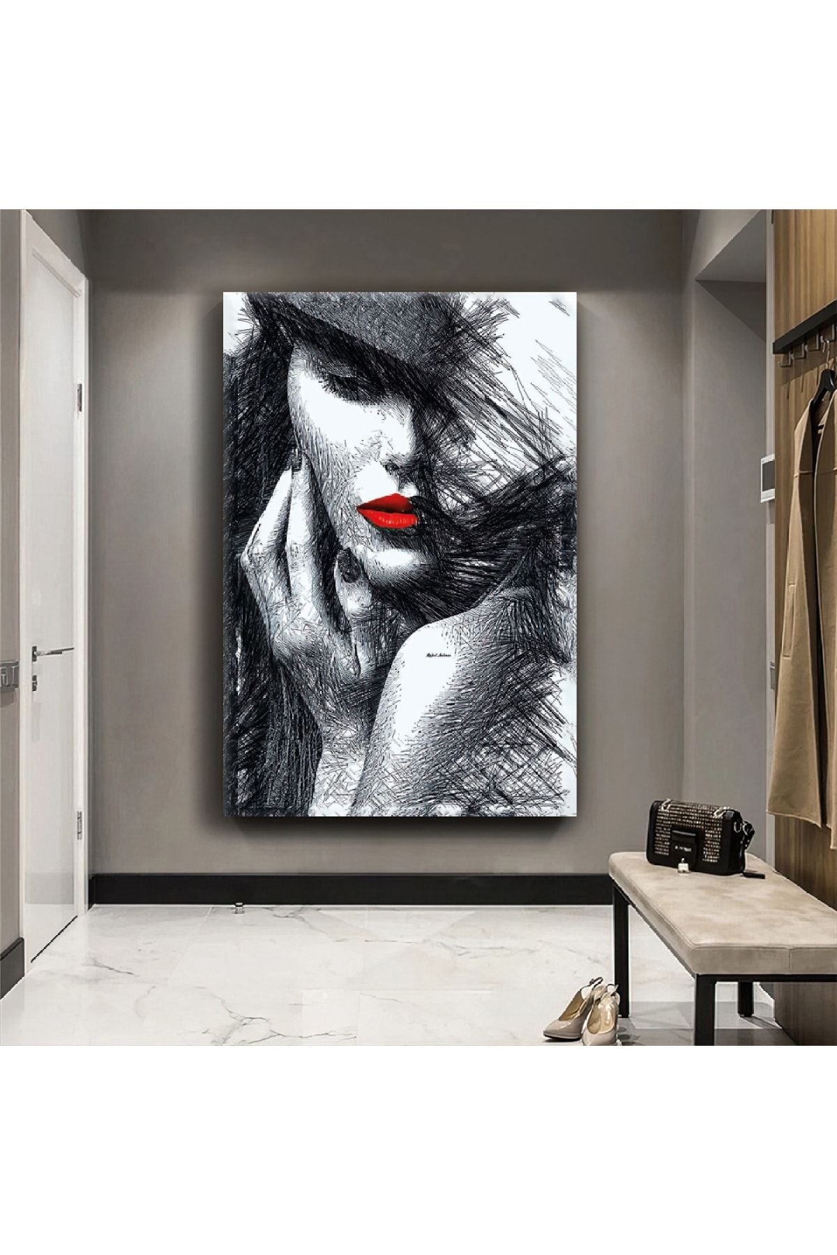 Kolaj Çizim Kadın Yüzü Kanvas Tablo
