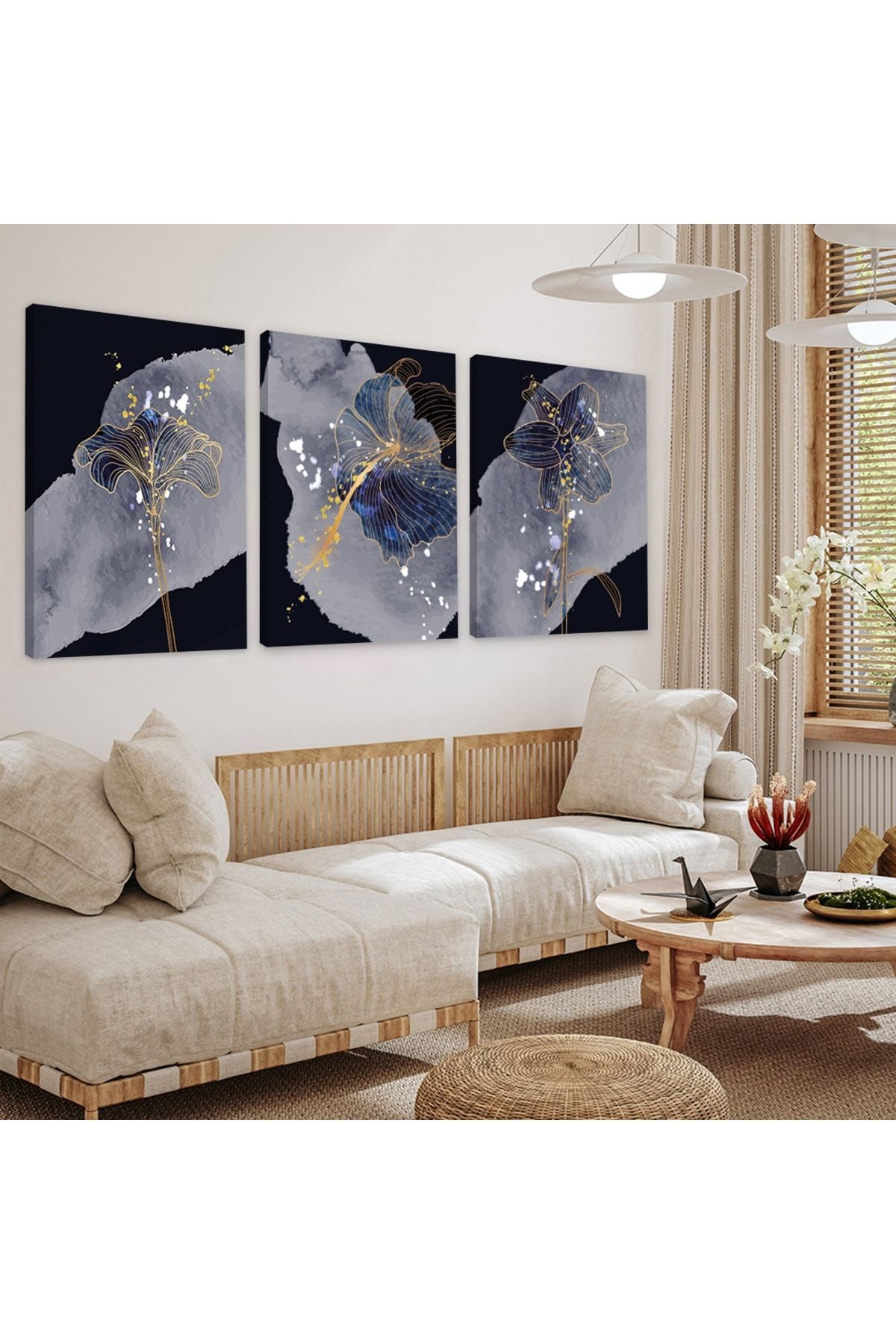 Mor Bitki Soyut Desen 3'Lü Kanvas Tablo