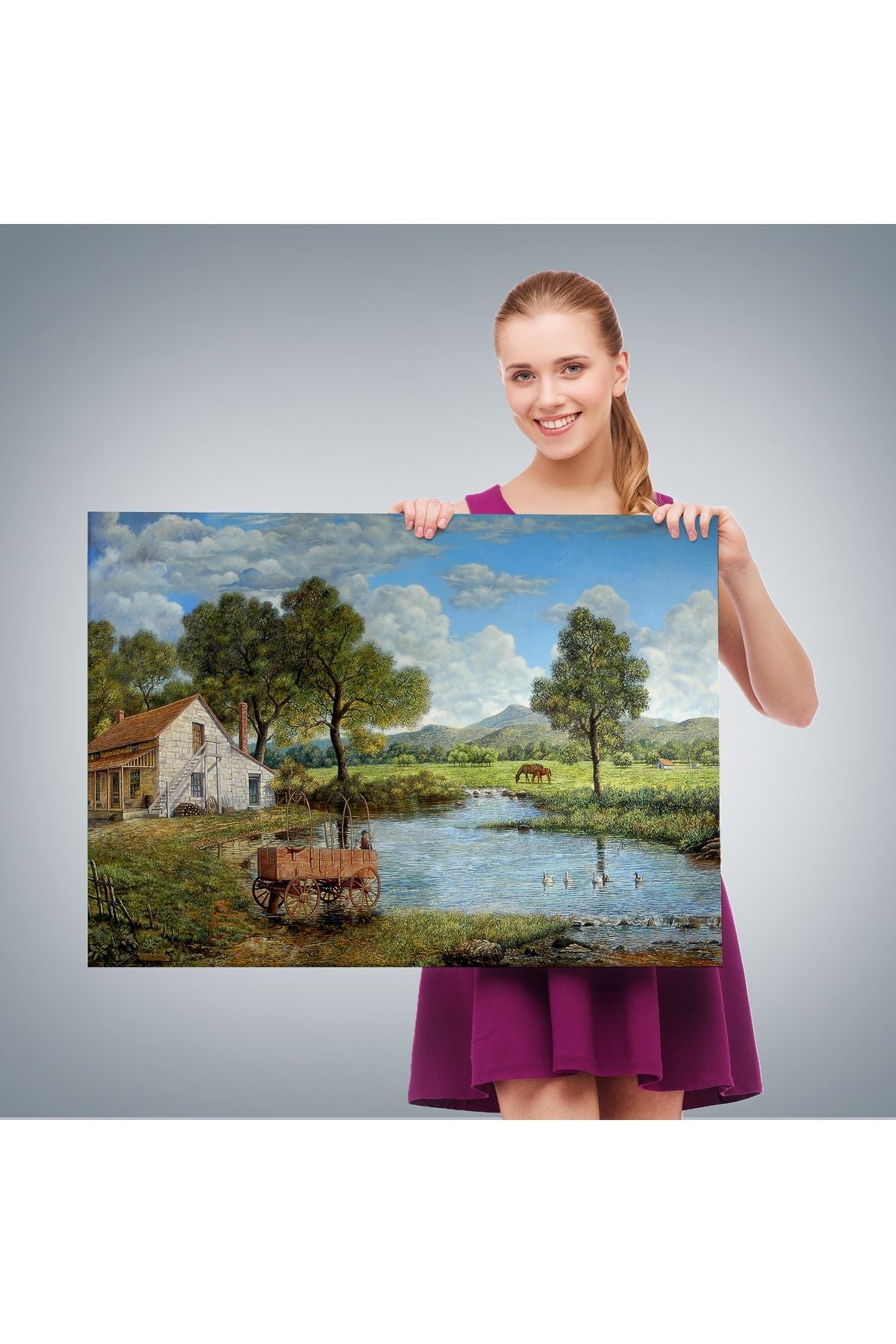 Köy Ve Akarsu Manzaralı Dekoratif Kanvas Duvar Tablosu-3425