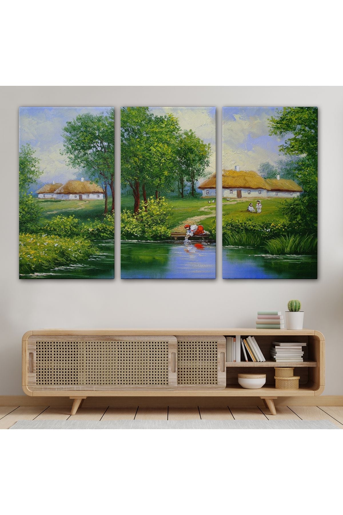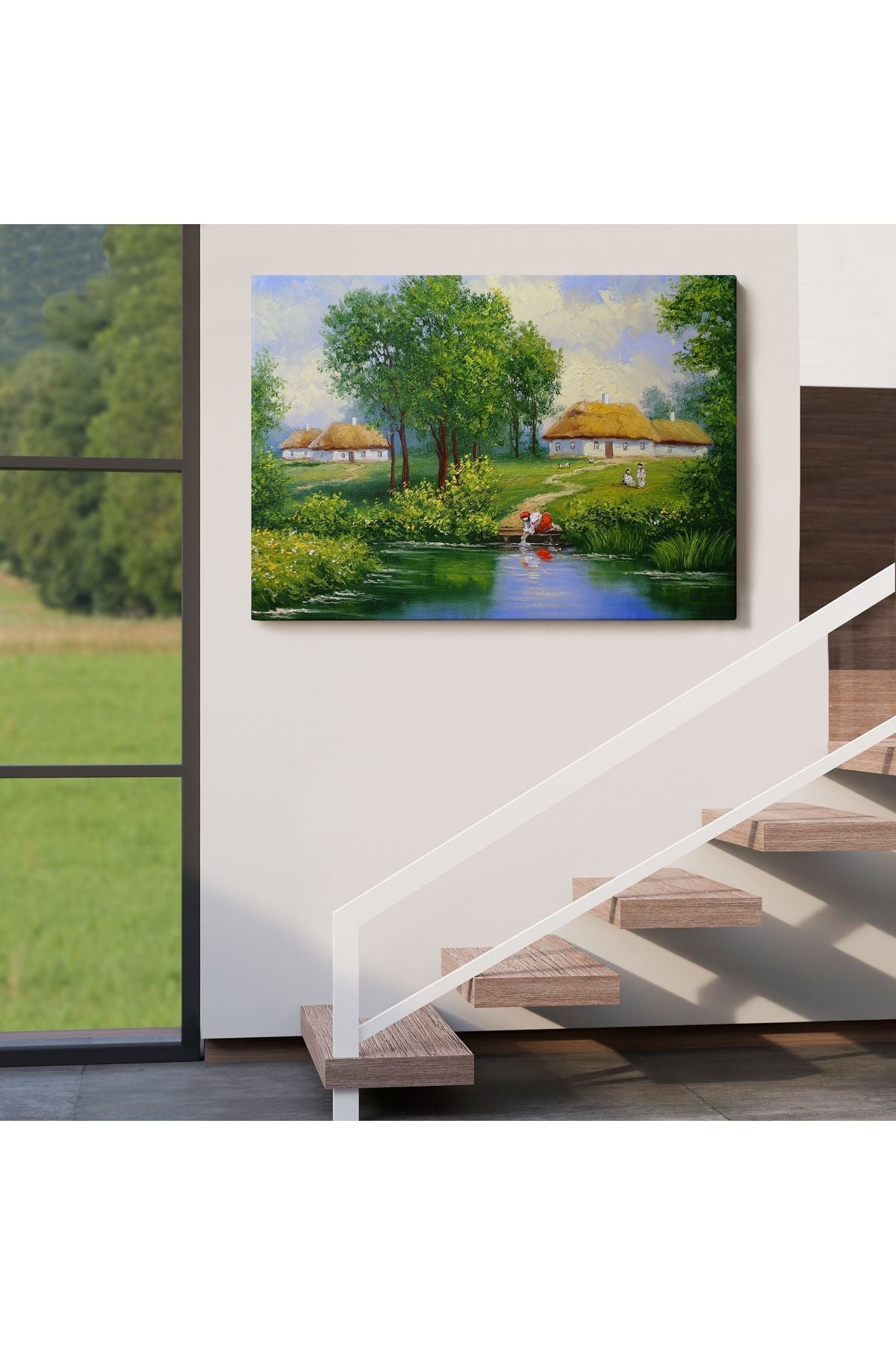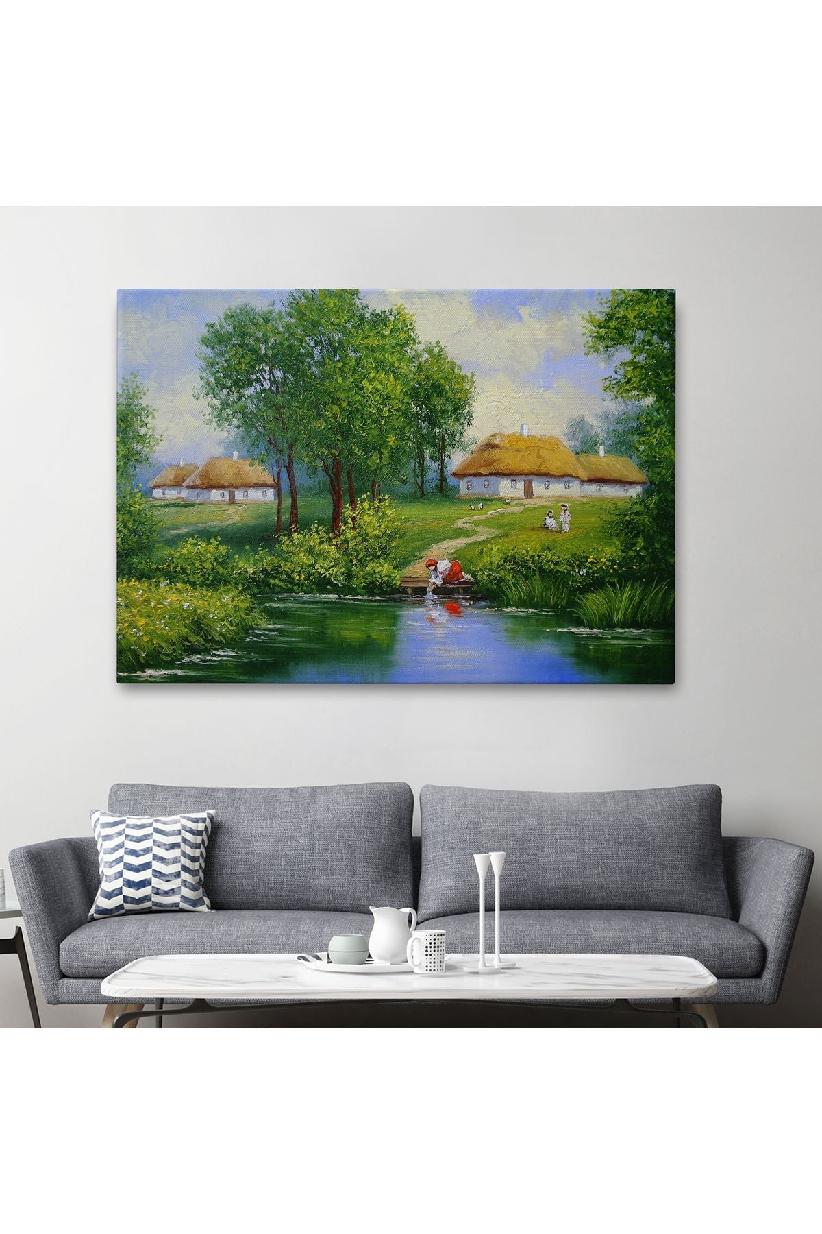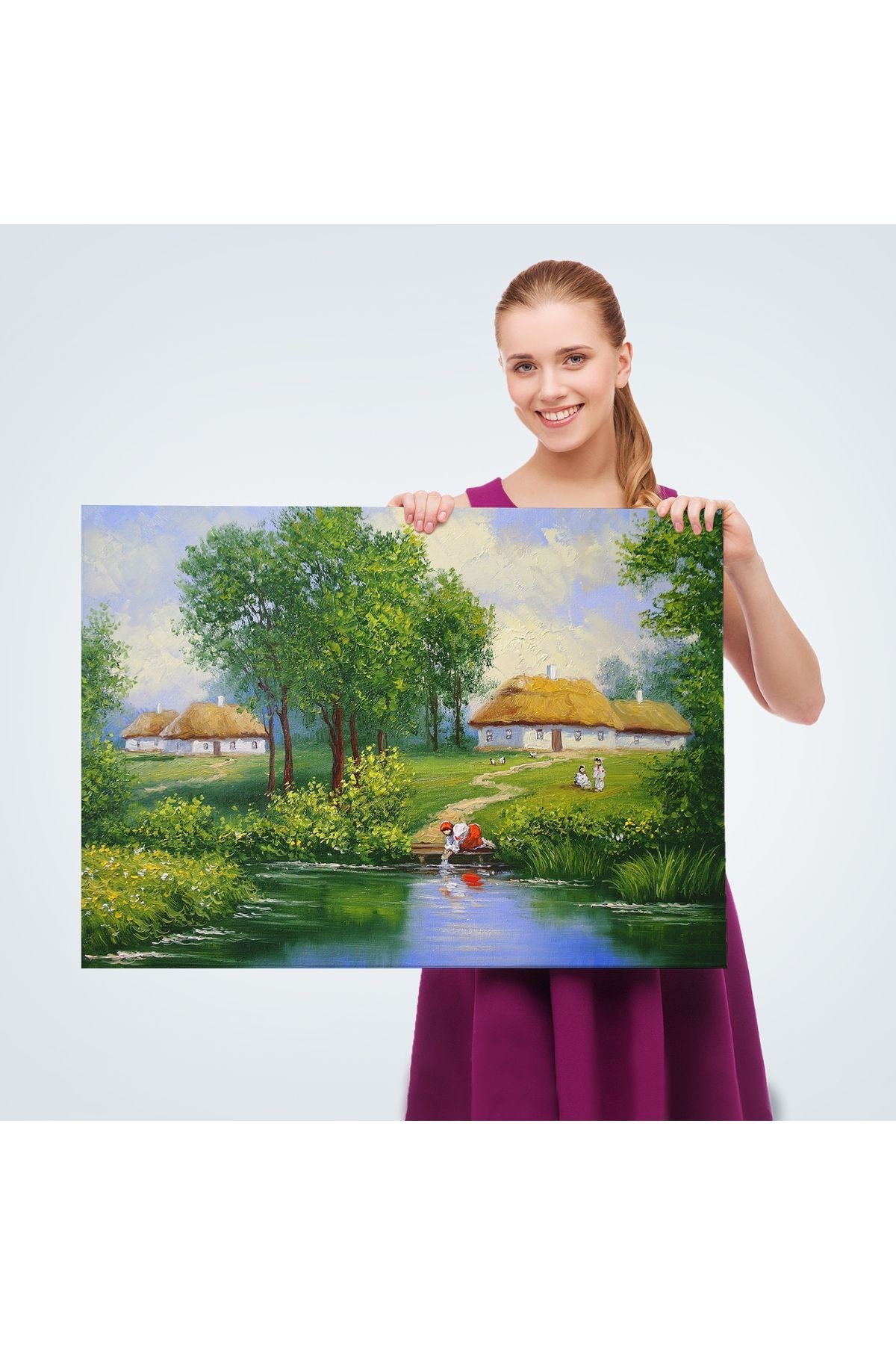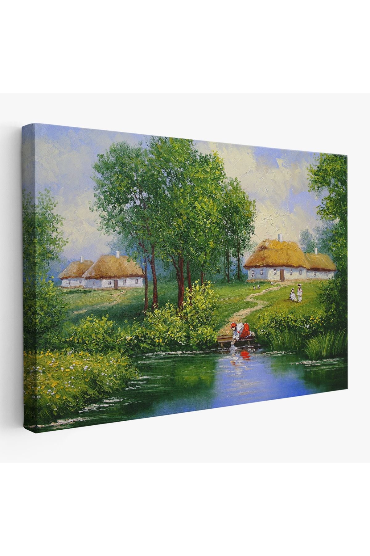 Akarsudan Su Dolduran Kadın Yağlıboya Görünüm Dekoratif Kanvas Duvar Tablosu-3551