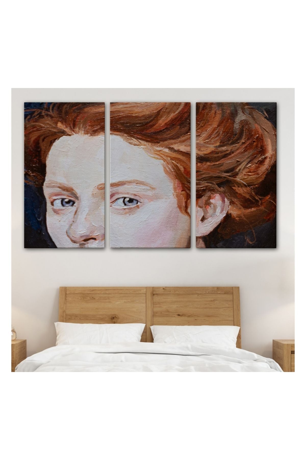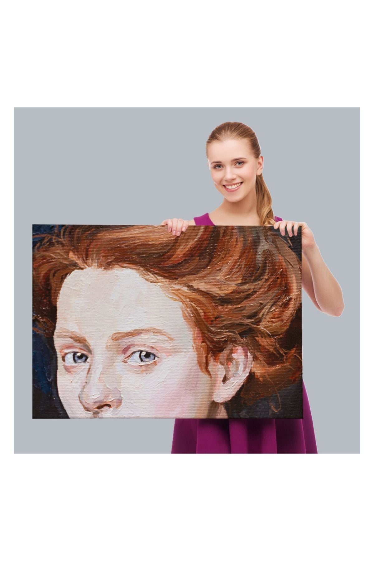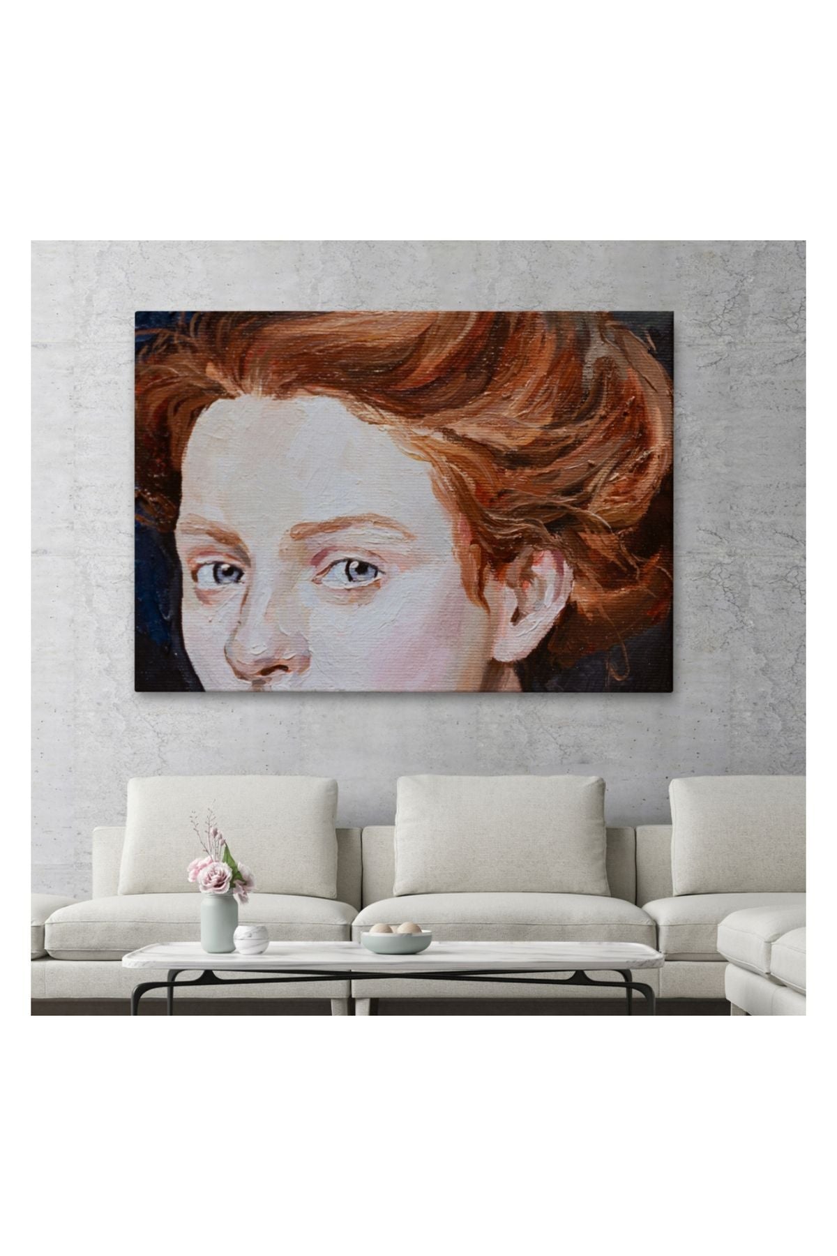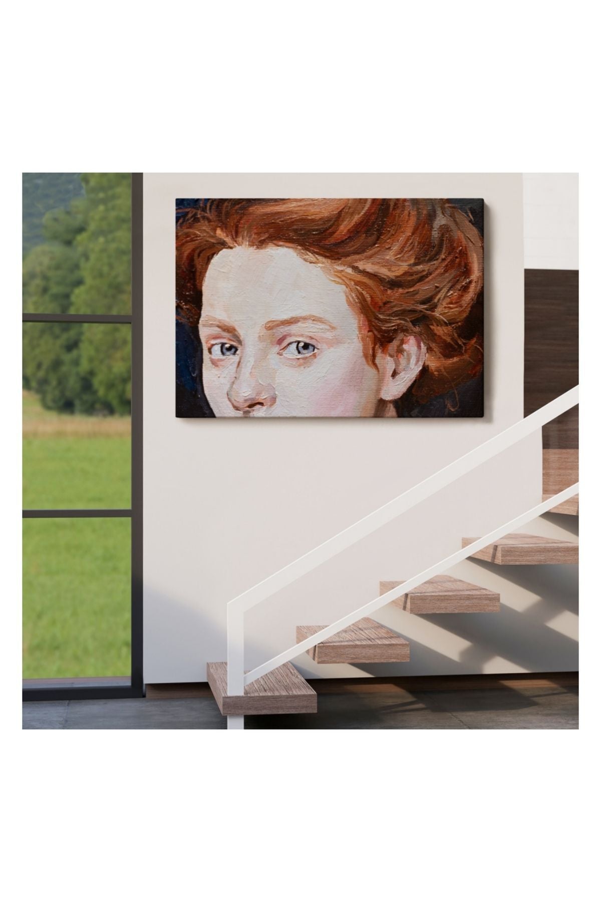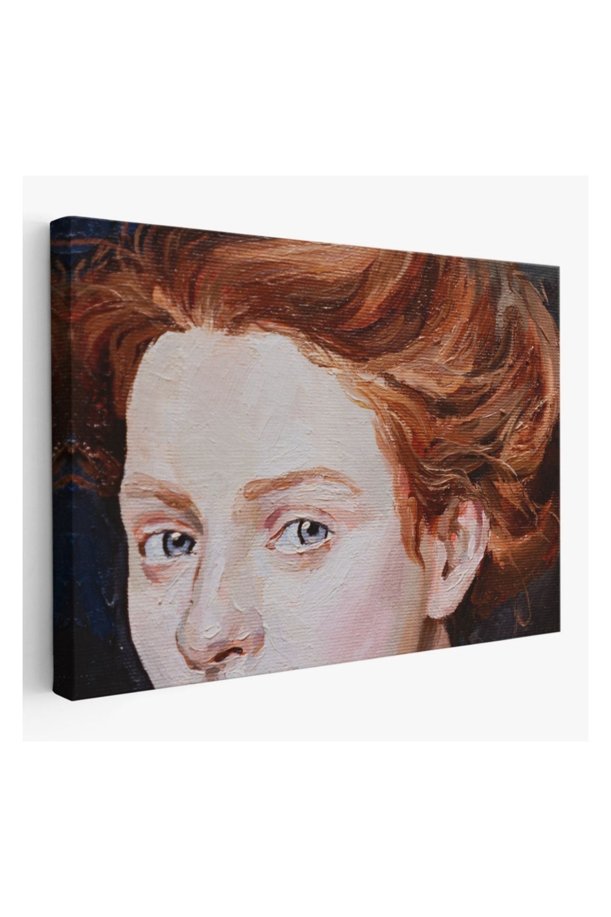 Kanvas Tablo, Duvar Dekoru, Kızıl Saçlı Mavi Gözlü Kadın Yağlıboya Görünüm 3741 BUNGKNV
