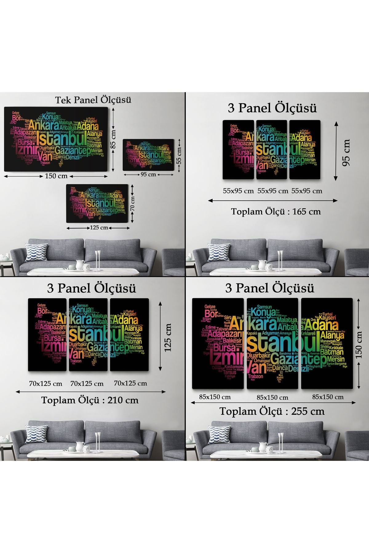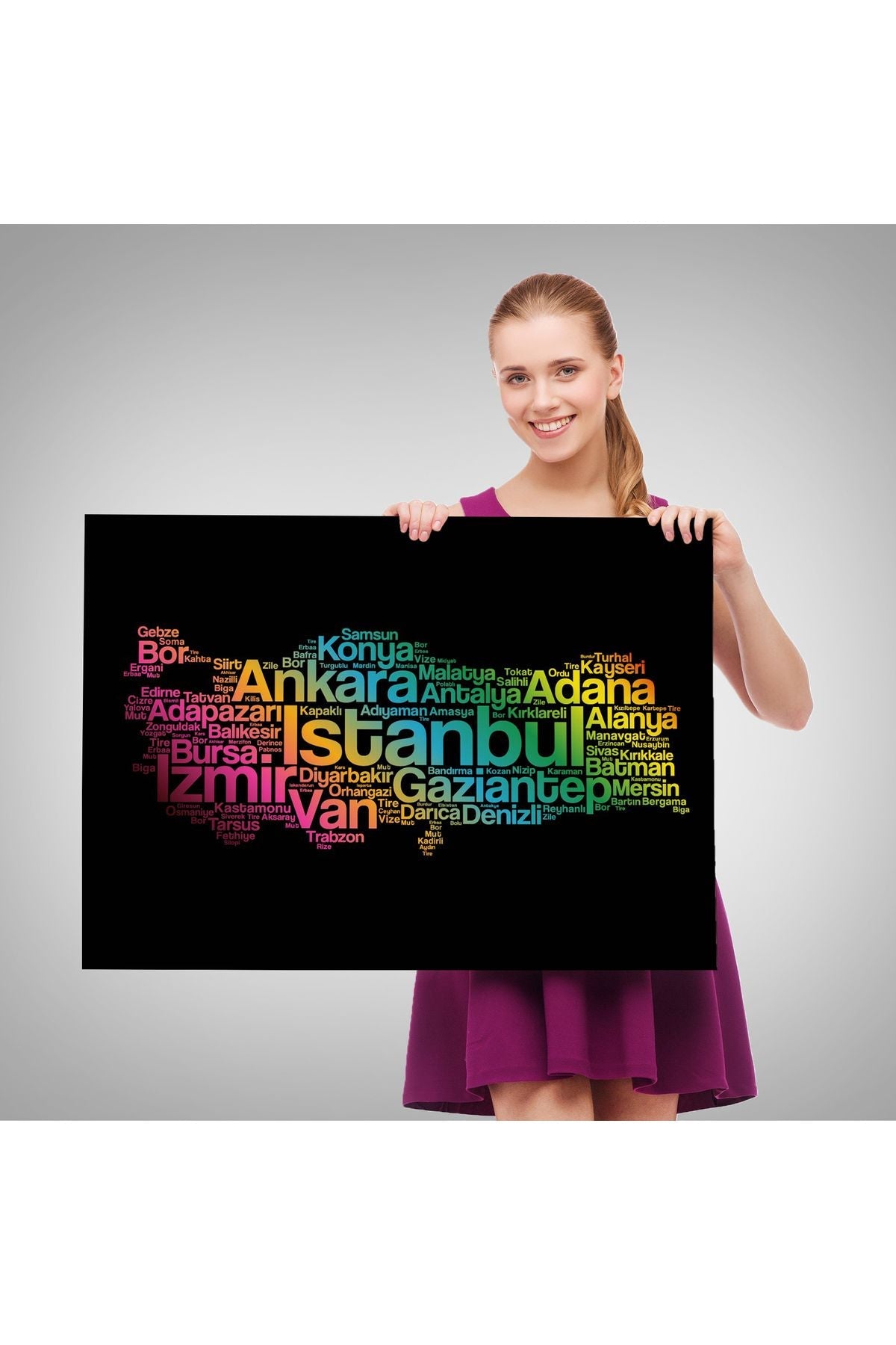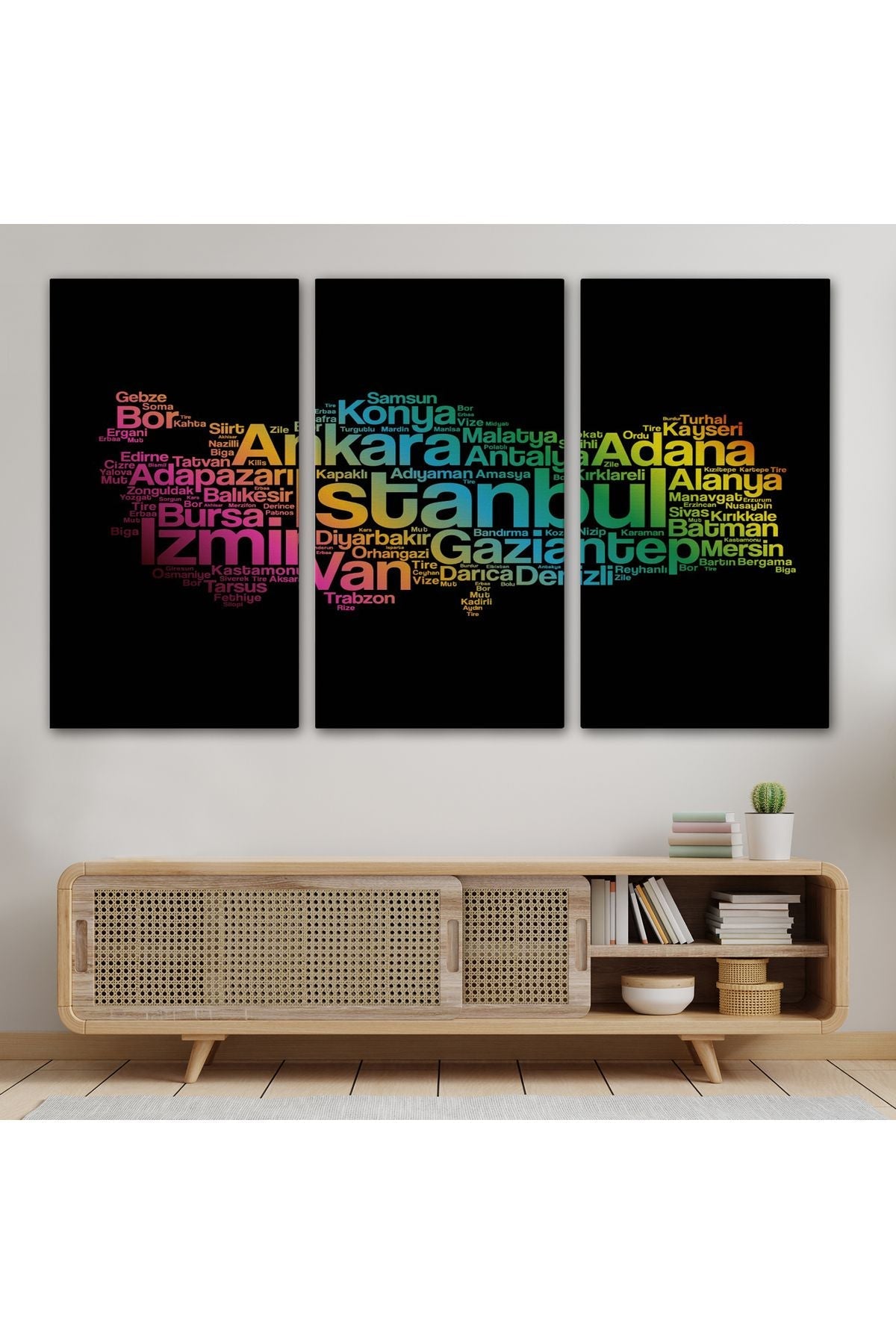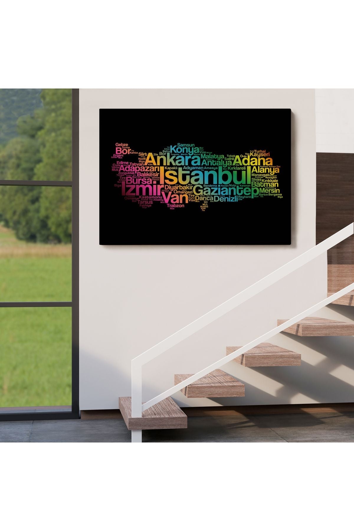 İller İsimli Siyah Zeminli Dekoratif Kanvas Tablo 1016
