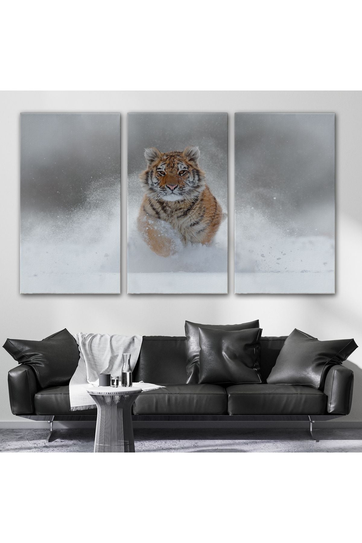 Karda Koşan Yavru Kaplan Dekoratif Kanvas Tablo 1135