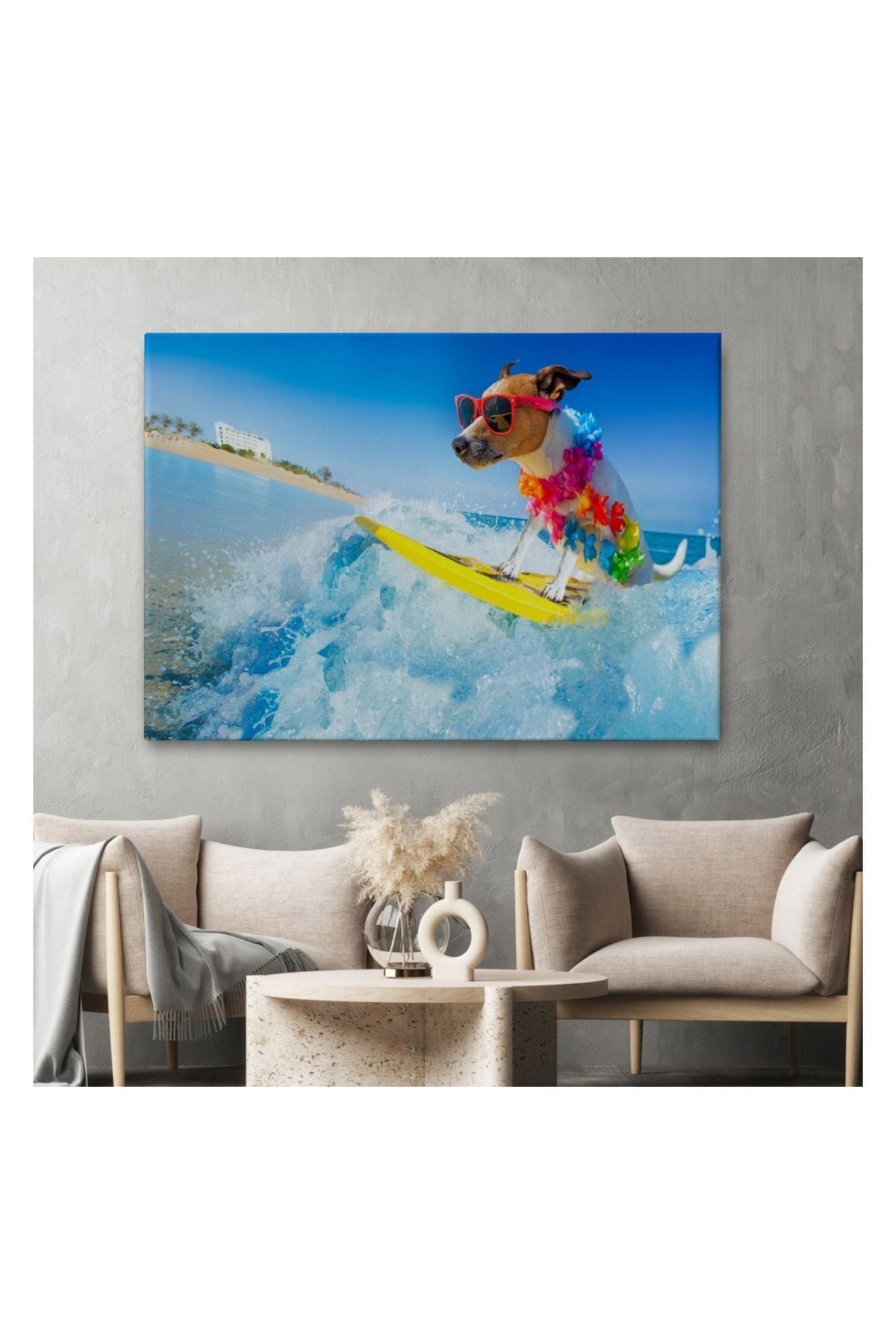 Kanvas Tablo, Duvar Dekoru, Su Kayağı Yapan Köpek, Hayvan Temalı 1155 BUNGKNV