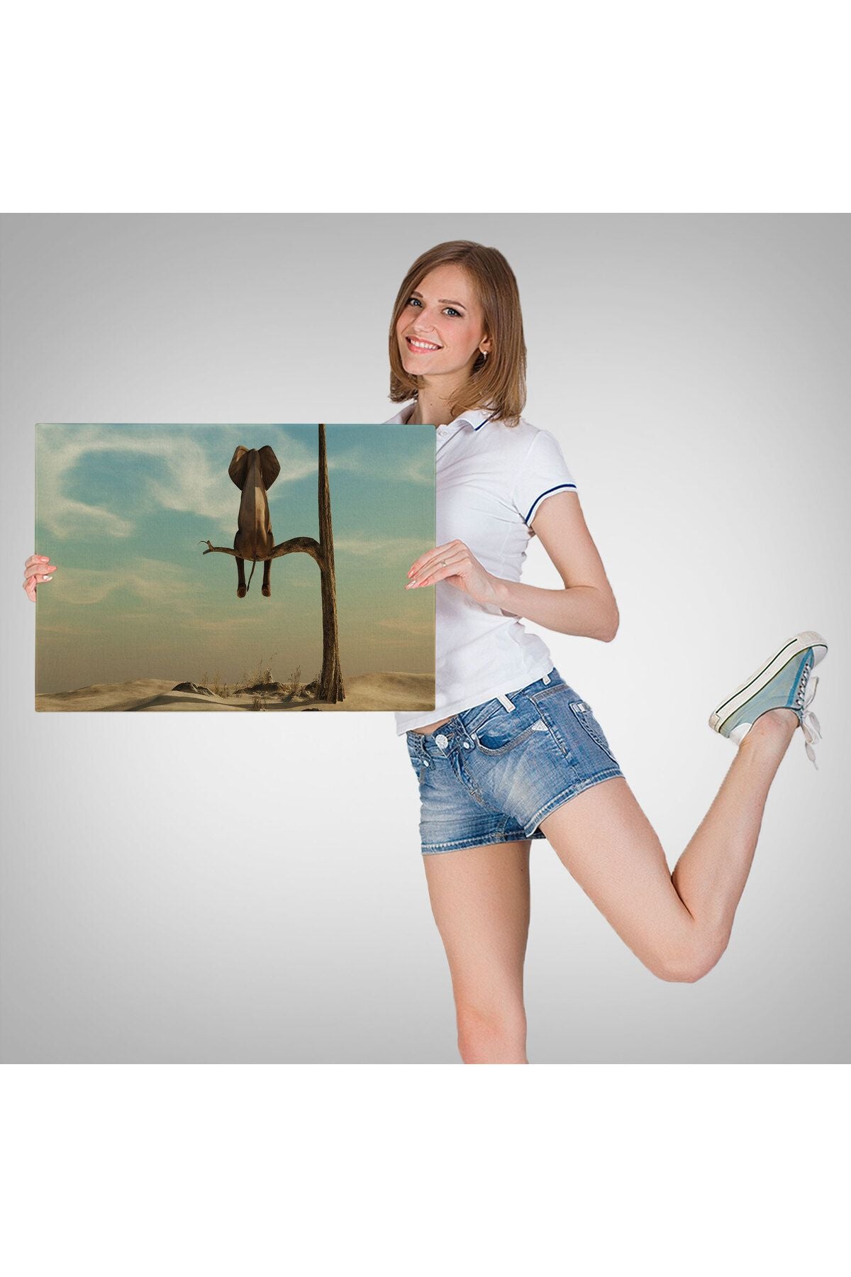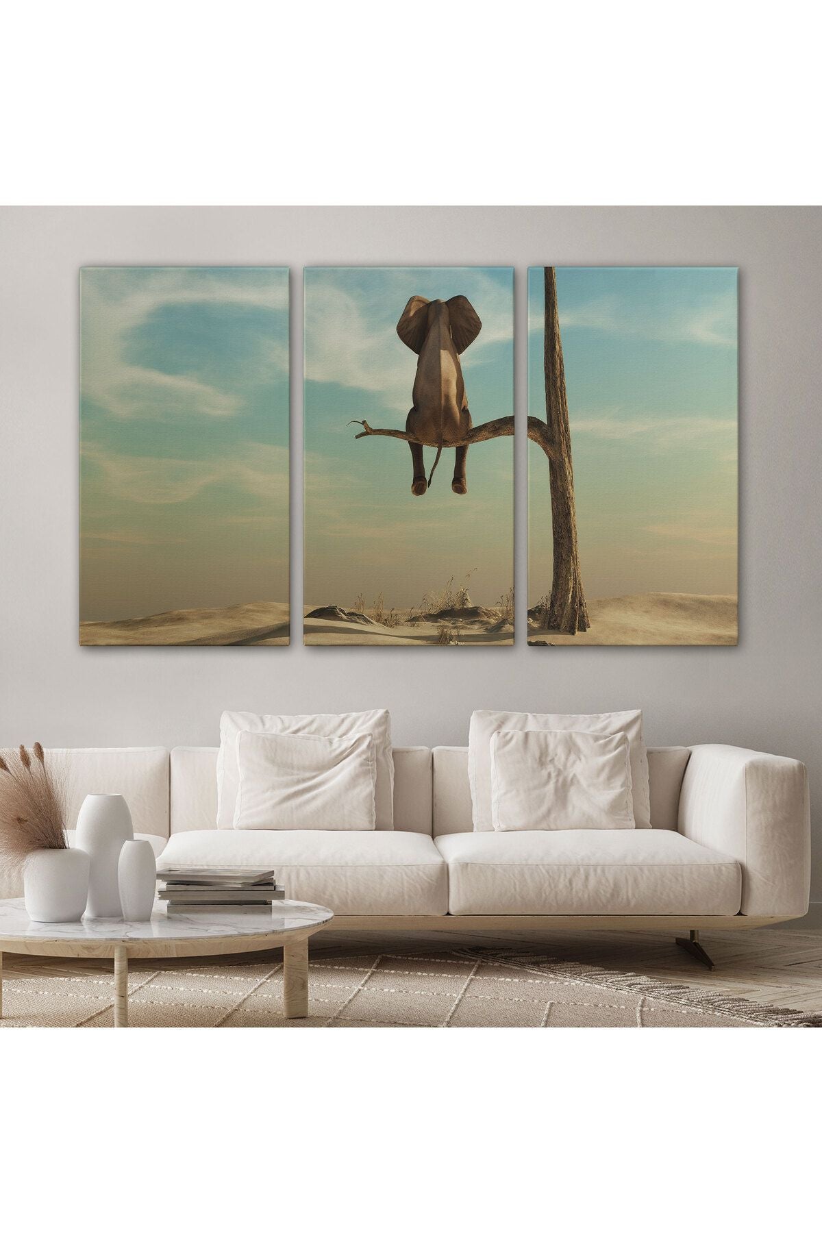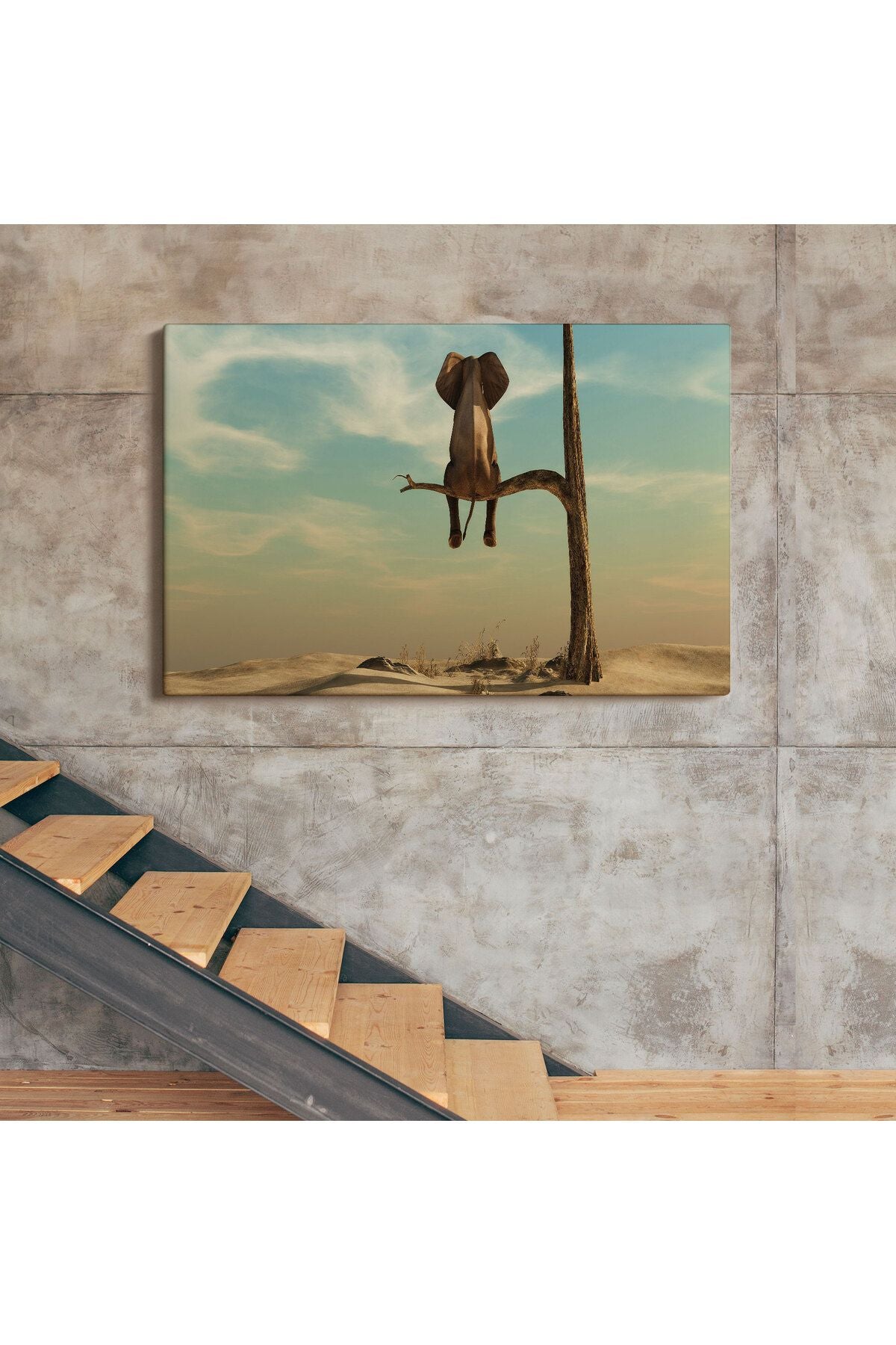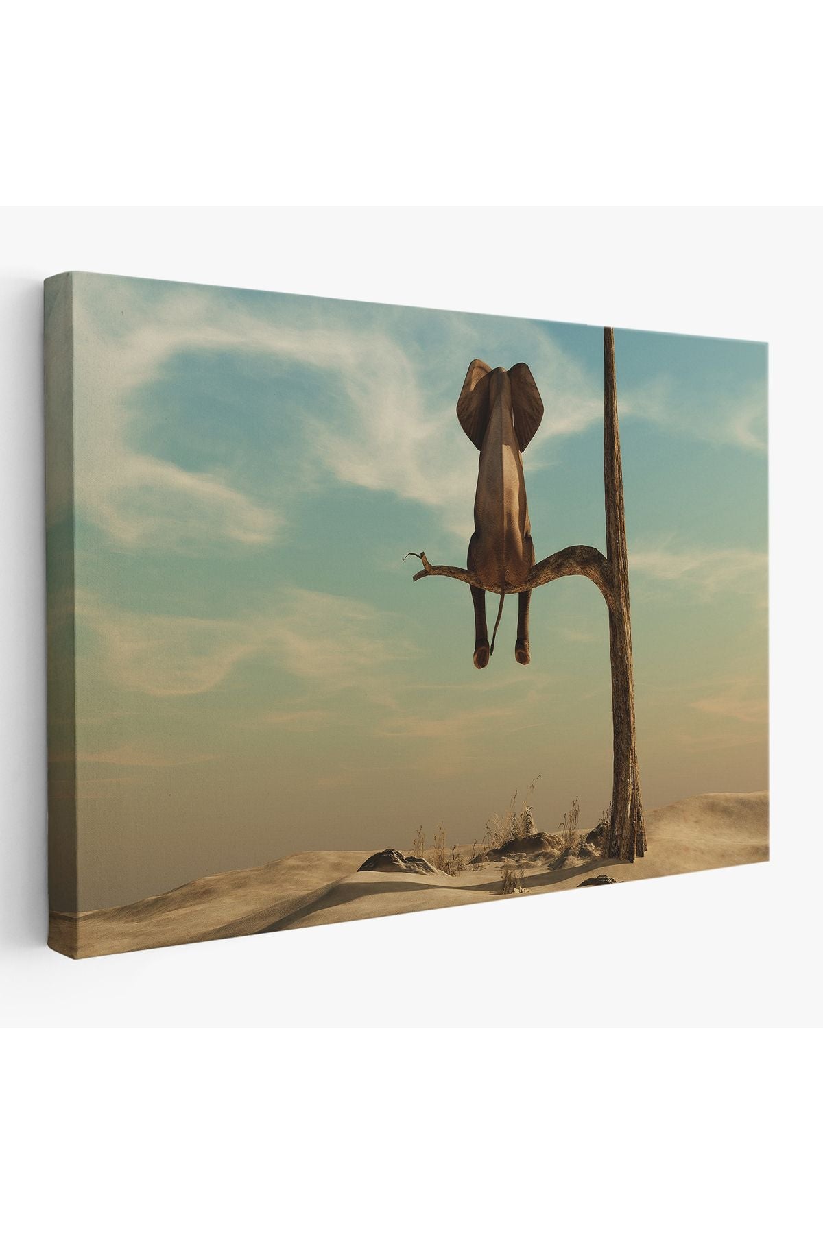 Ağaç Dalında Oturan Fil Dekoratif Kanvas Tablo 1171
