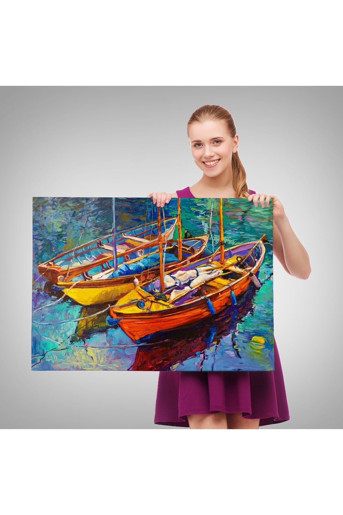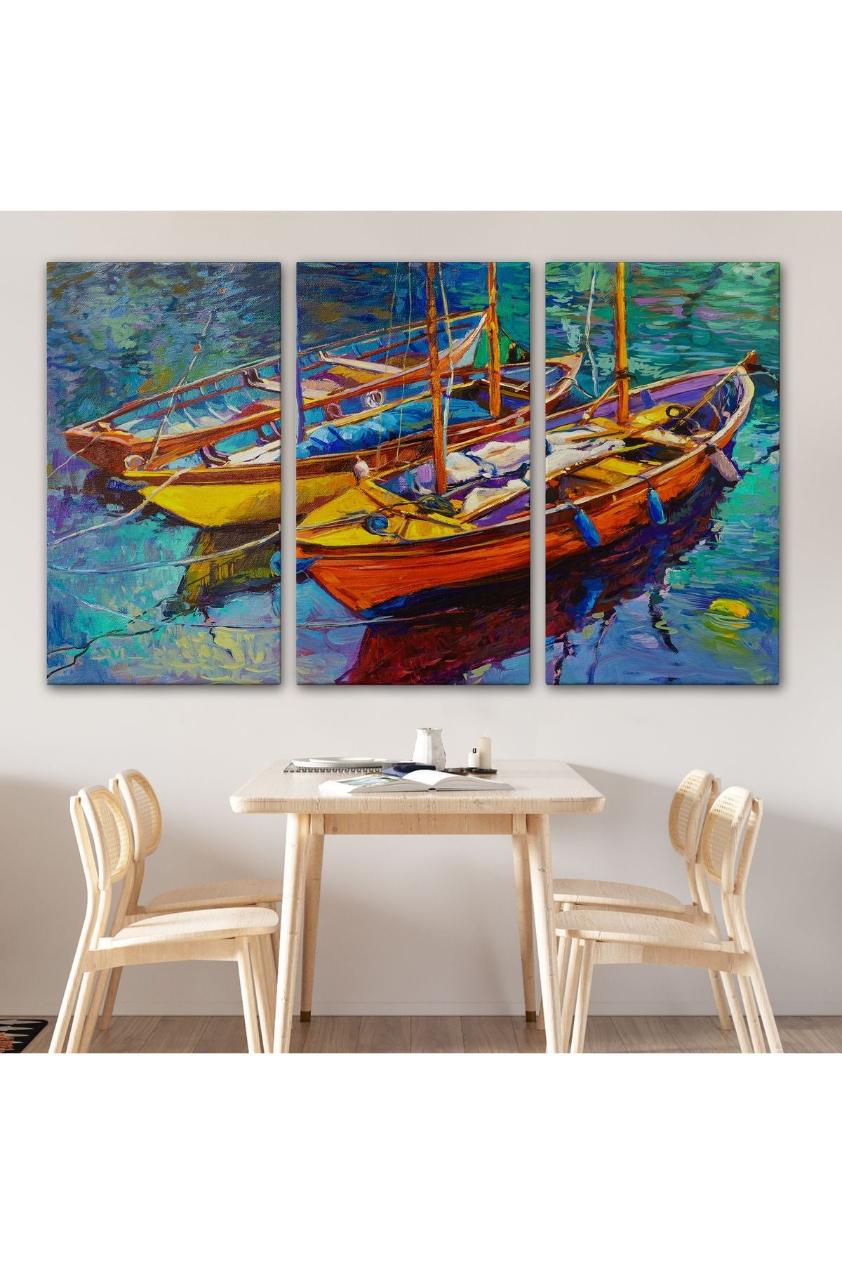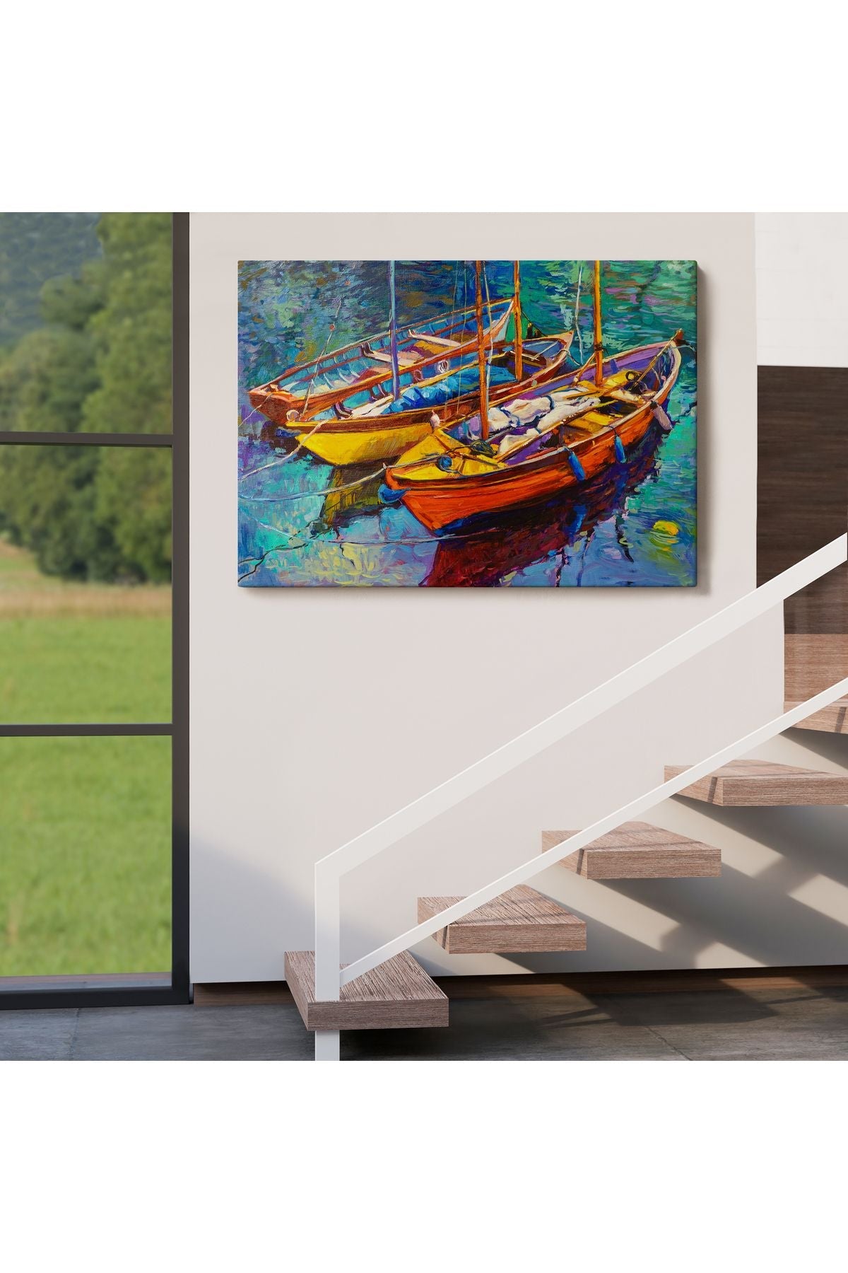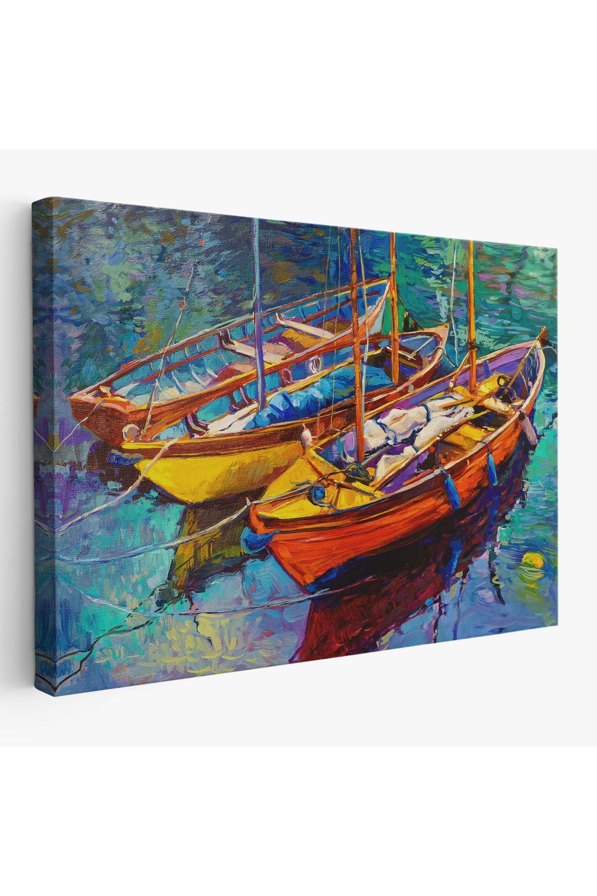 Okyanus Üzerinde Gün Batımı Tekne ve Deniz Kanvas Duvar Tablosu-1194