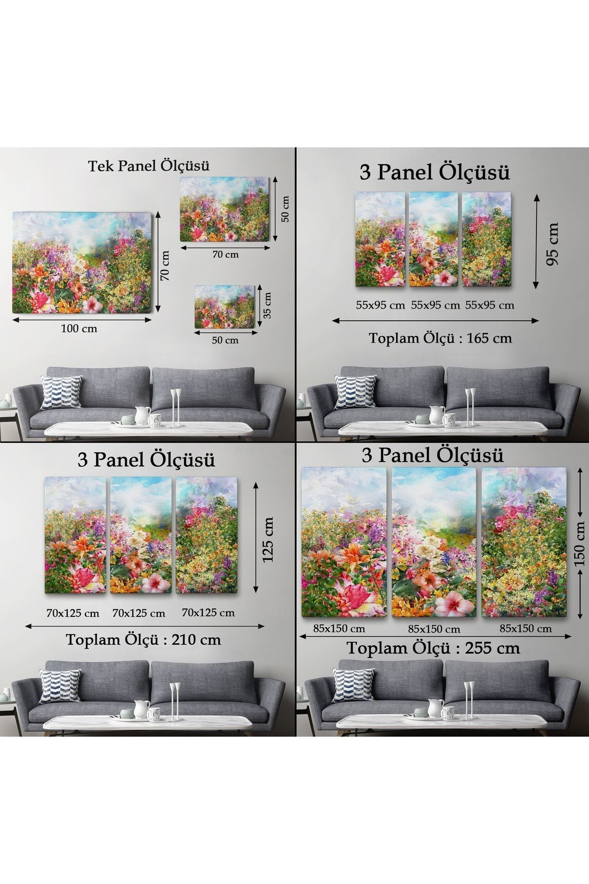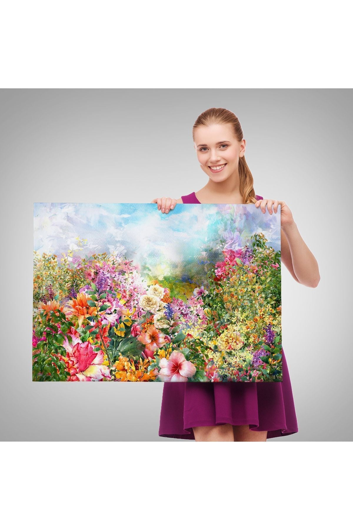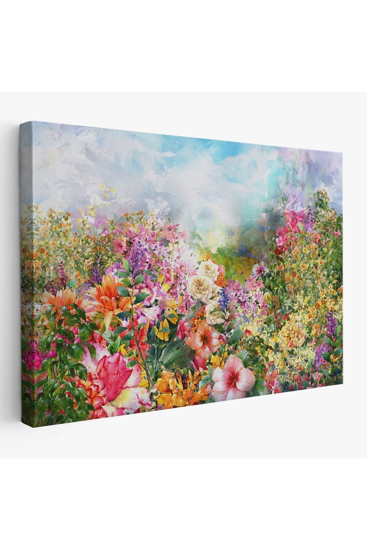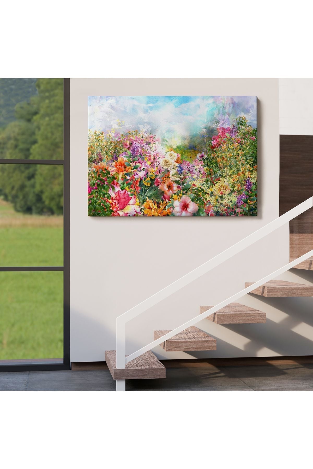 Suluboya Görünümlü Çok Renkli Çiçek Manzaralı Kanvas Tablo-1196