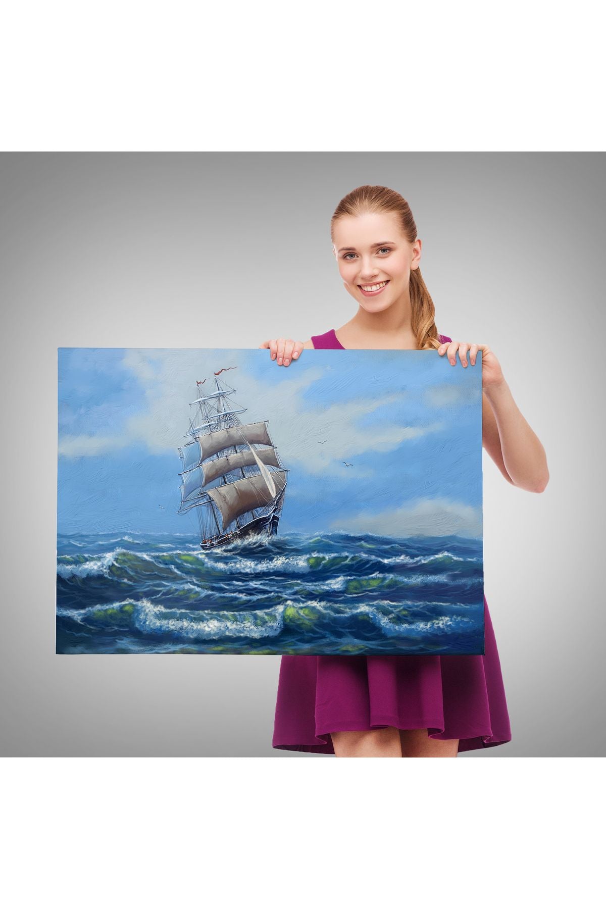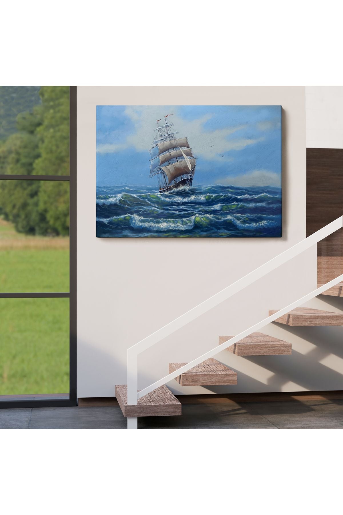 Dalgalı Okyanustaki Büyük Yelkenli Duvar Tablosu-1215