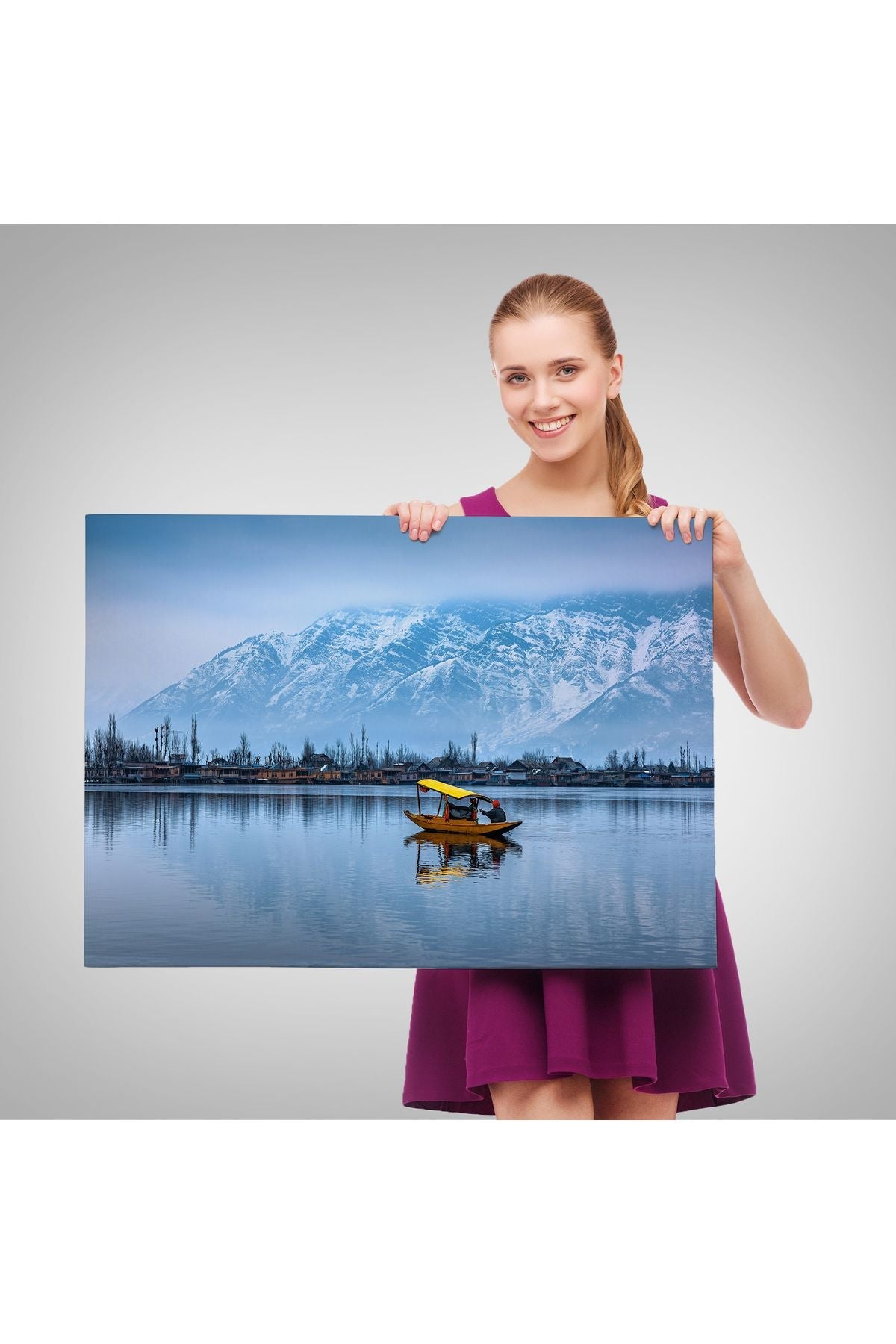 Hindistan Srinagar Dal Gölü Kış Manzara Tablosu-1244