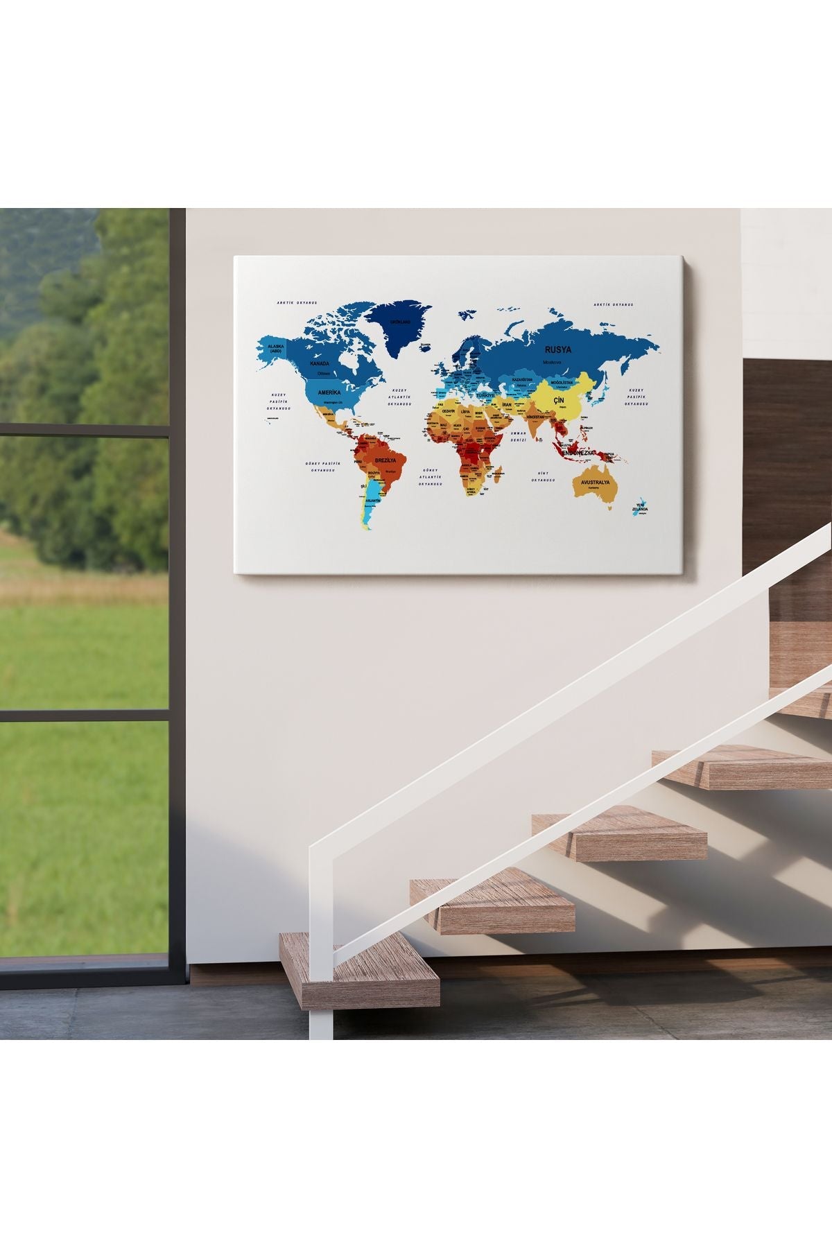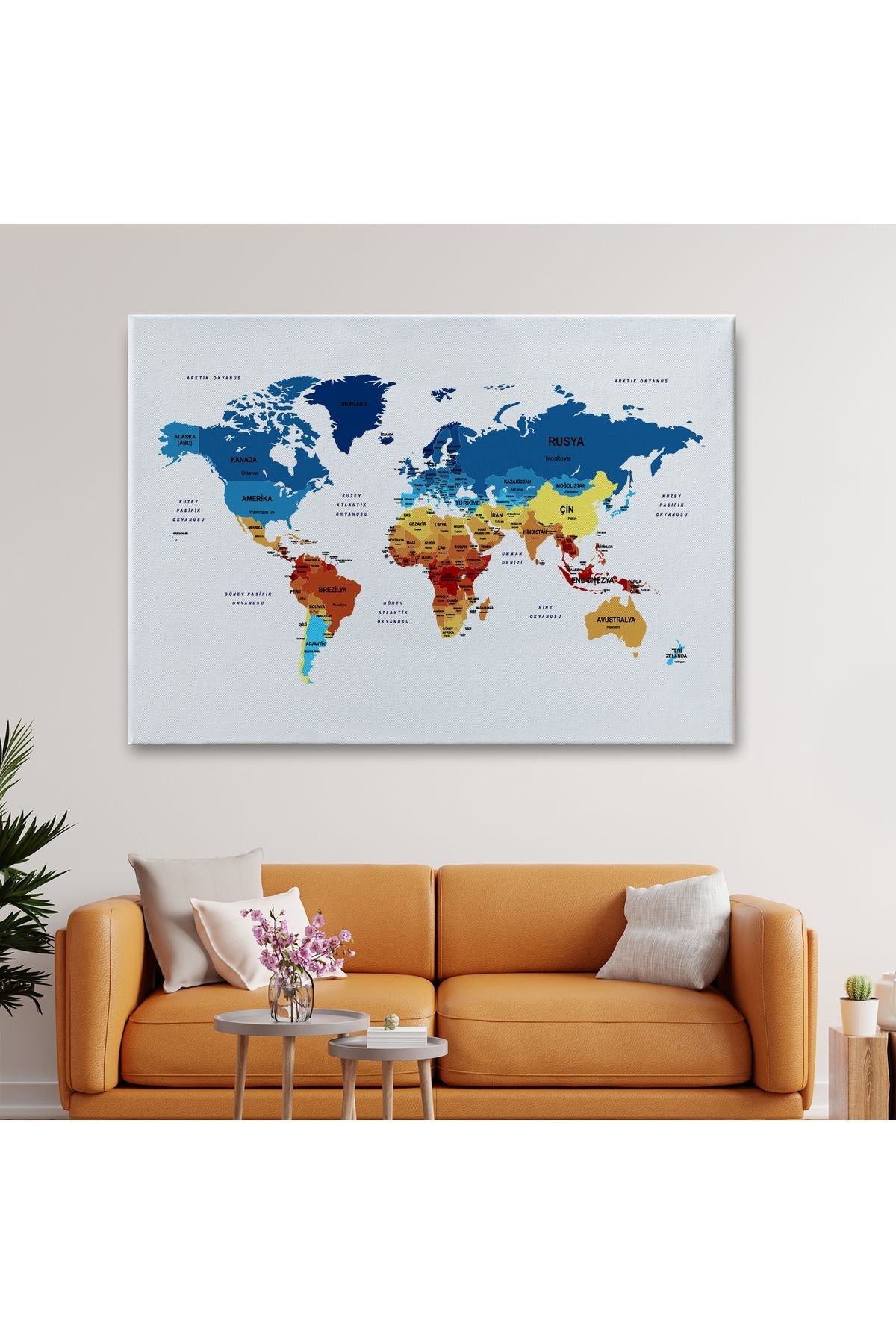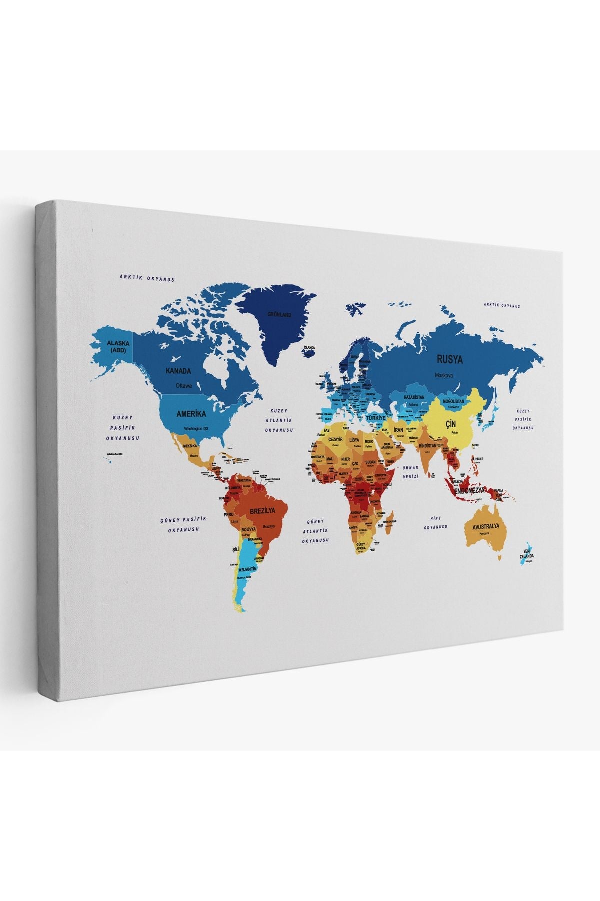 Türkçe Dünya Haritası Dekoratif Kanvas Tablo Ülke ve Başkentli 1492