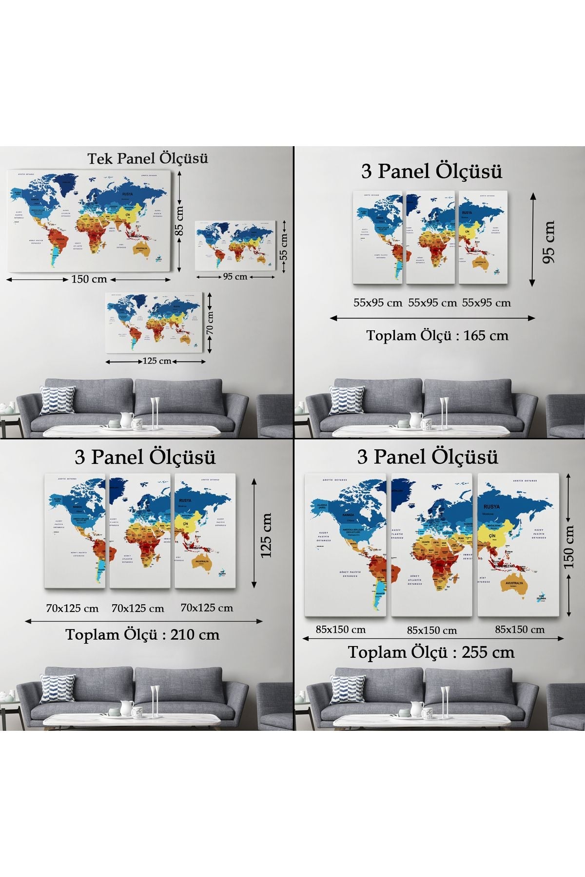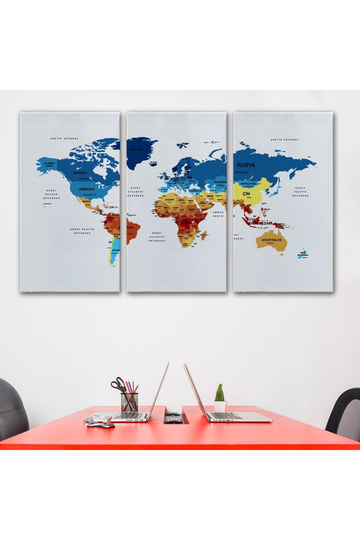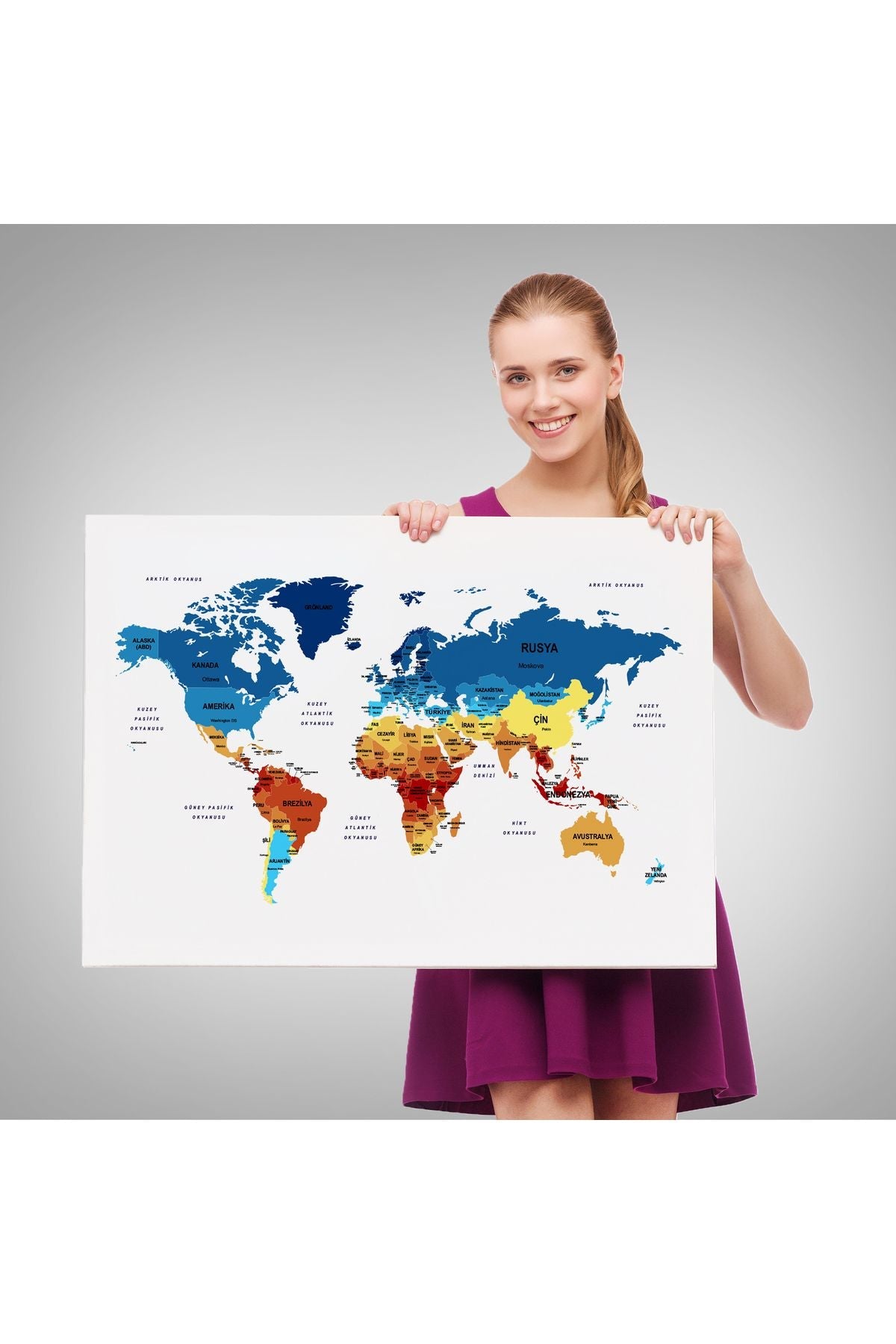 Türkçe Dünya Haritası Dekoratif Kanvas Tablo Ülke ve Başkentli 1492
