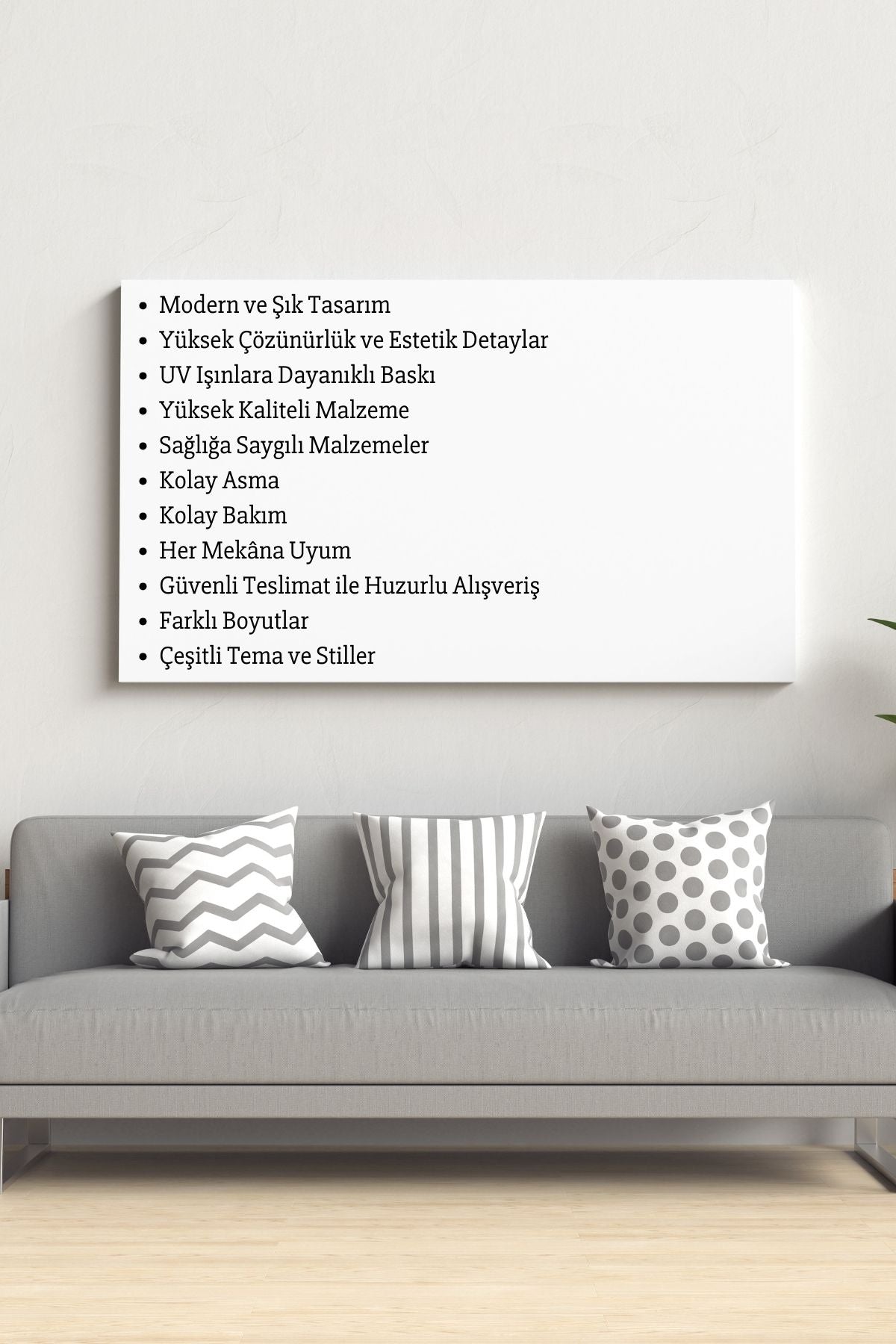 Yüksek nem, kanvasın gevşemesine, küflenmeye veya ahşap şasinin zarar görmesine yol açabilir. Banyo gibi nemli alanlarda kullanılmamalıdır.