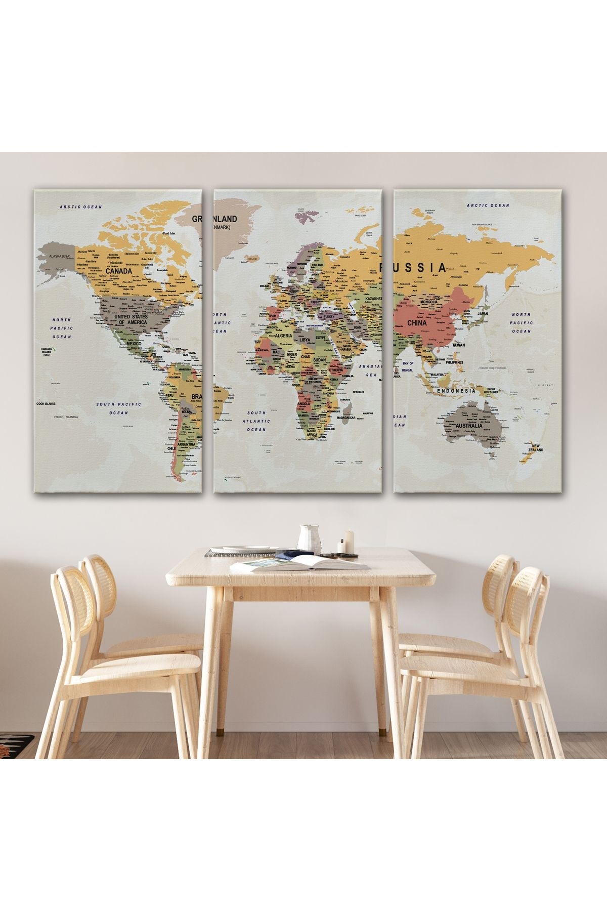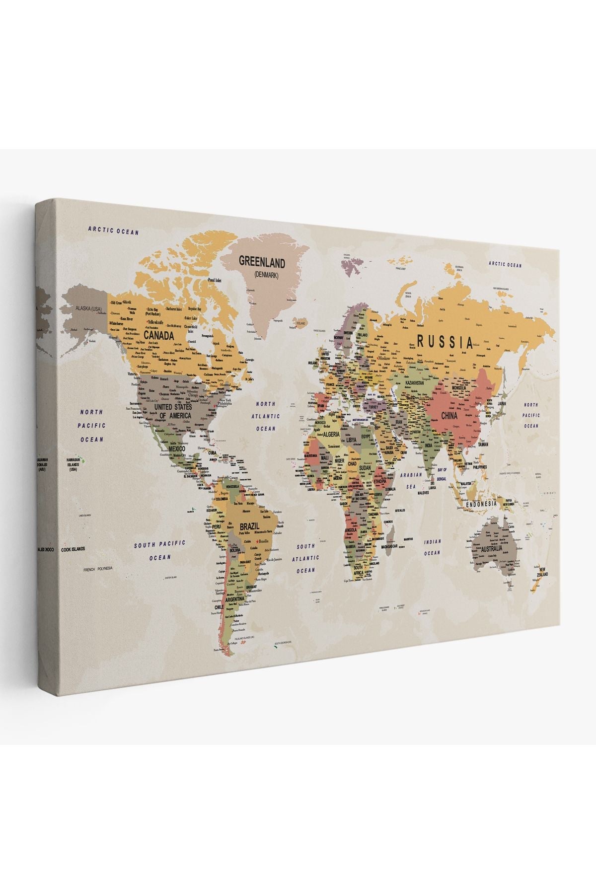 YB Dünya Haritası Son Derece Ayrıntılı Eğitici Okyanuslu Dekoratif Kanvas Tablo 2525