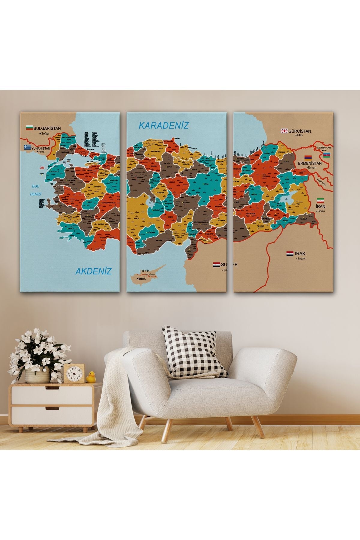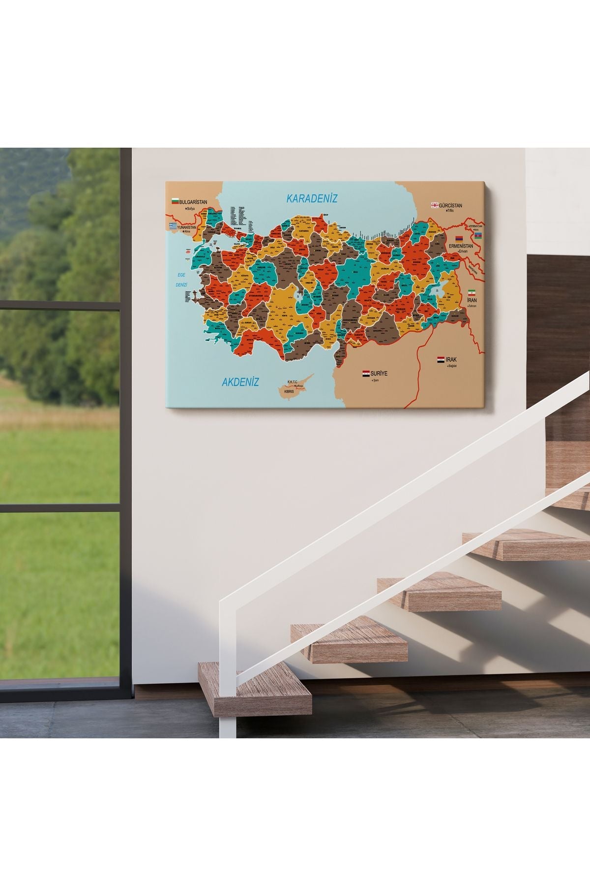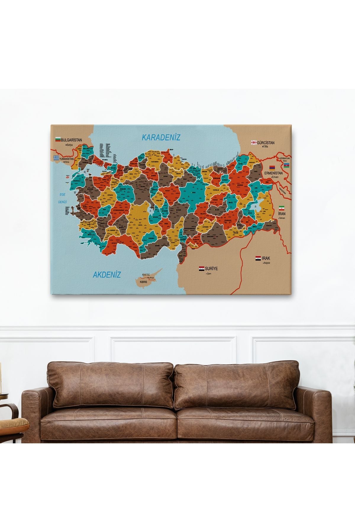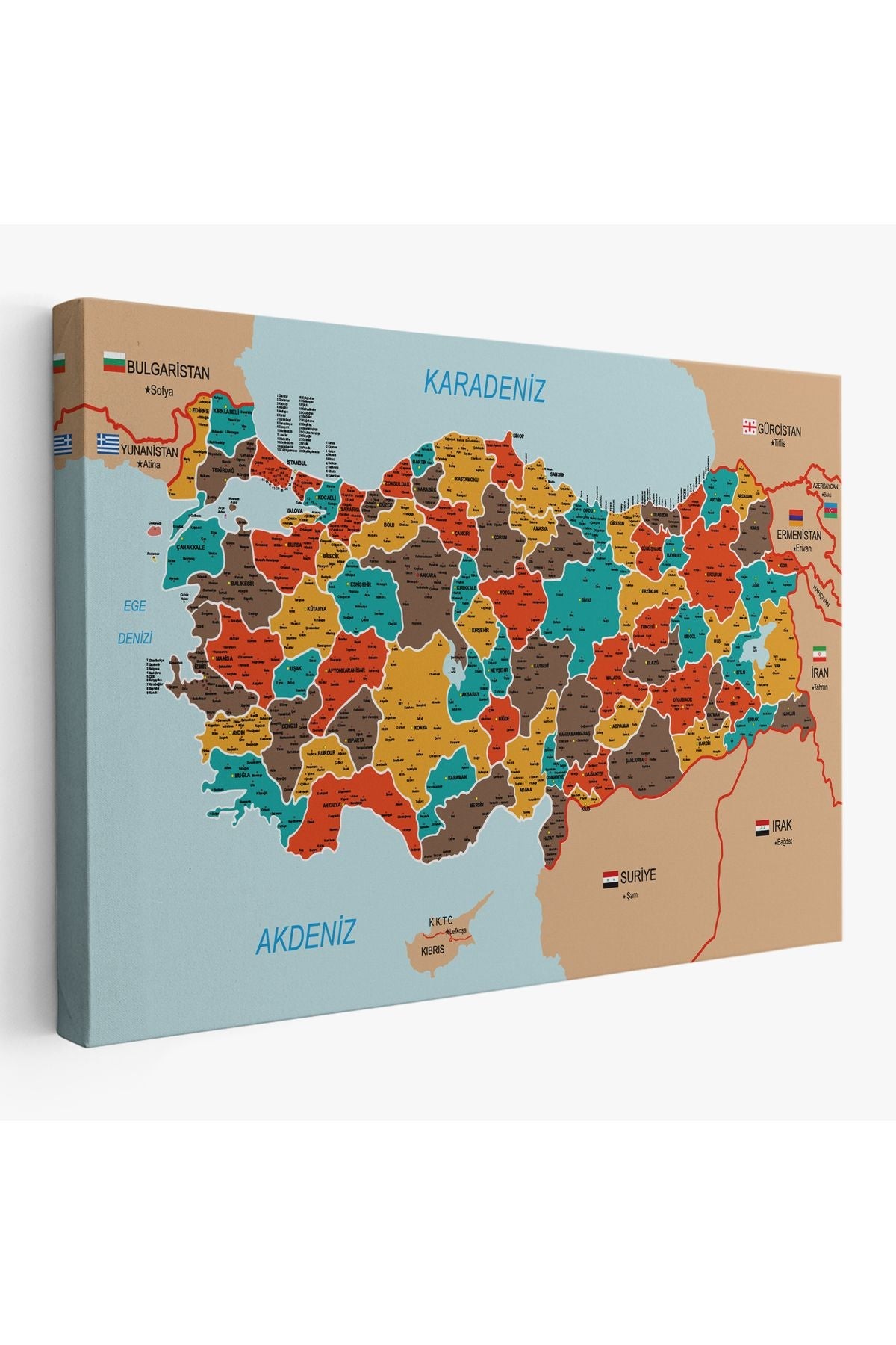 Türkiye Haritası Kanvas Tablo İl ve İlçeli Ayrıntılı Eğitici Komşulu Tablo 3010