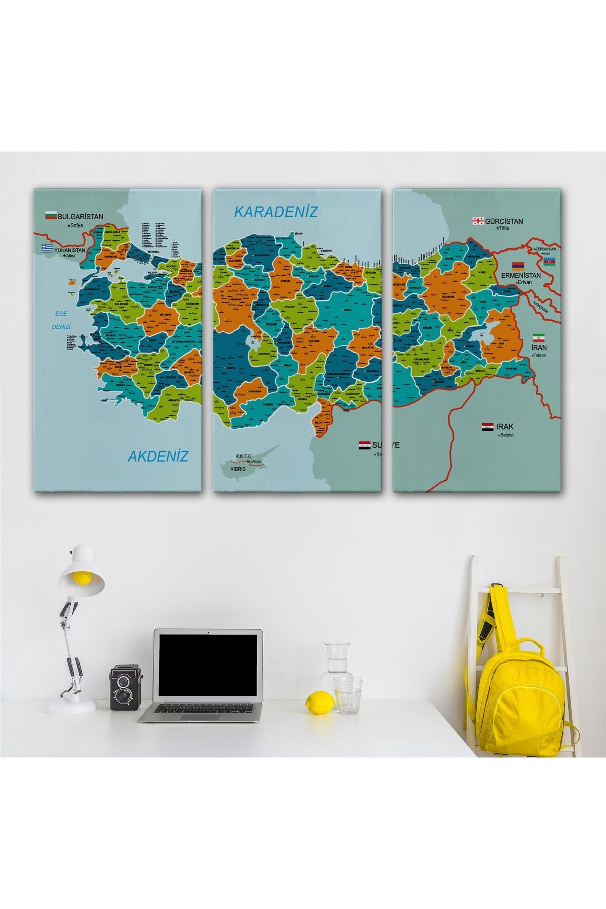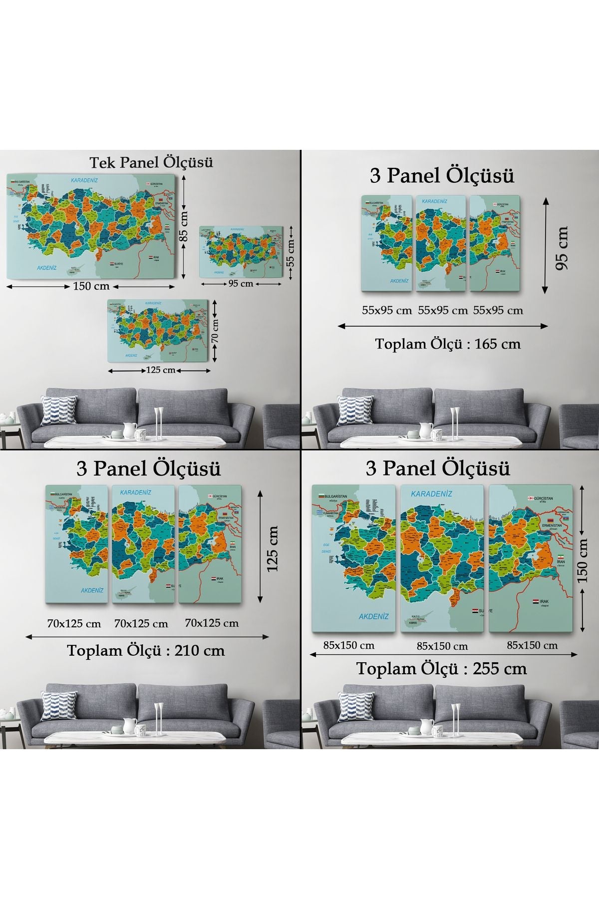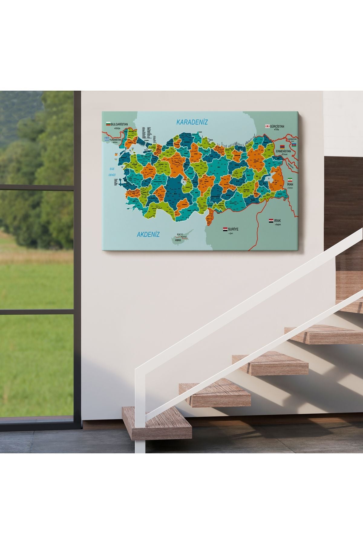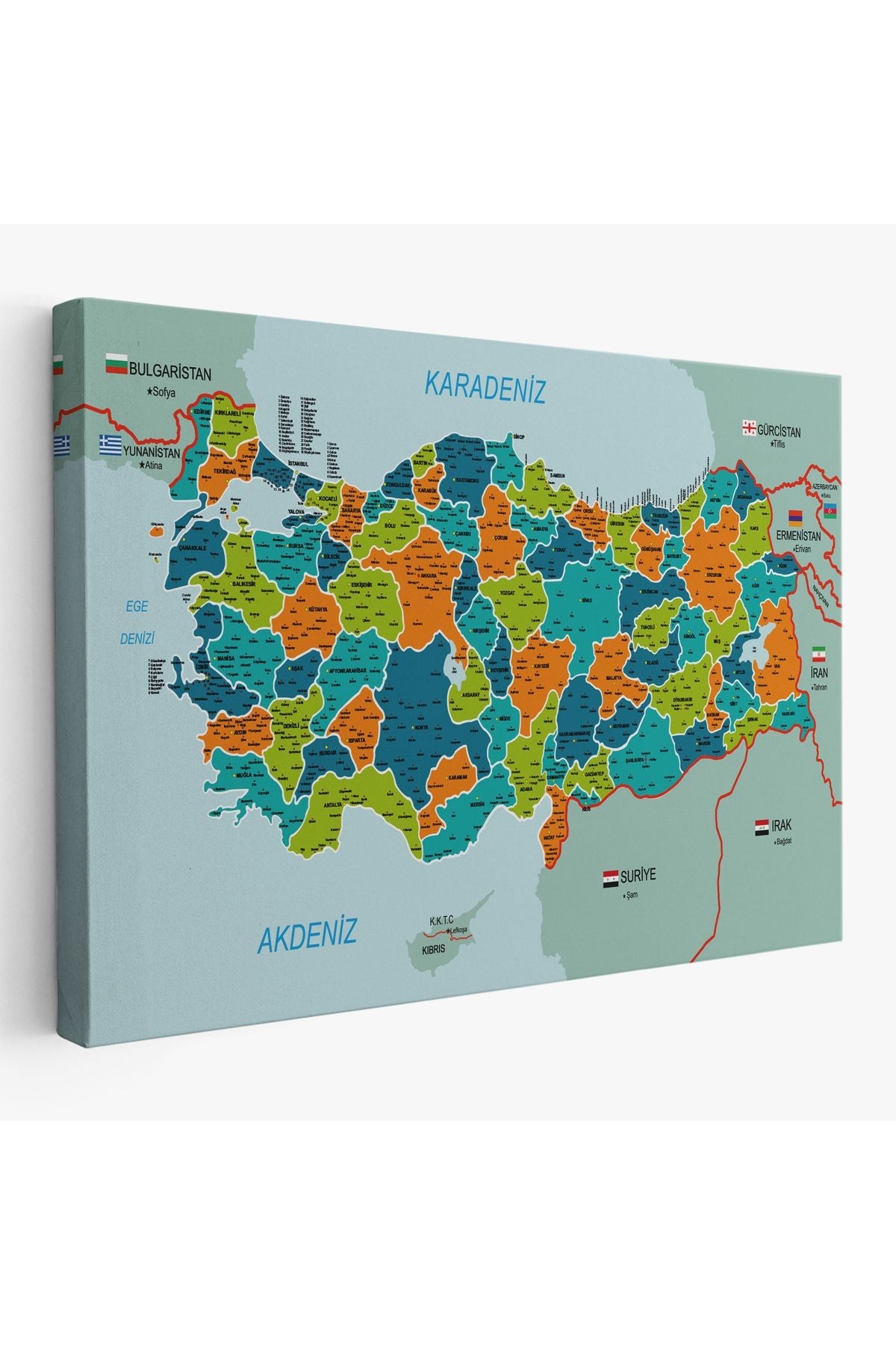 Türkiye Haritası Kanvas Tablo İl ve İlçeli Ayrıntılı Eğitici Komşulu Tablo 3015