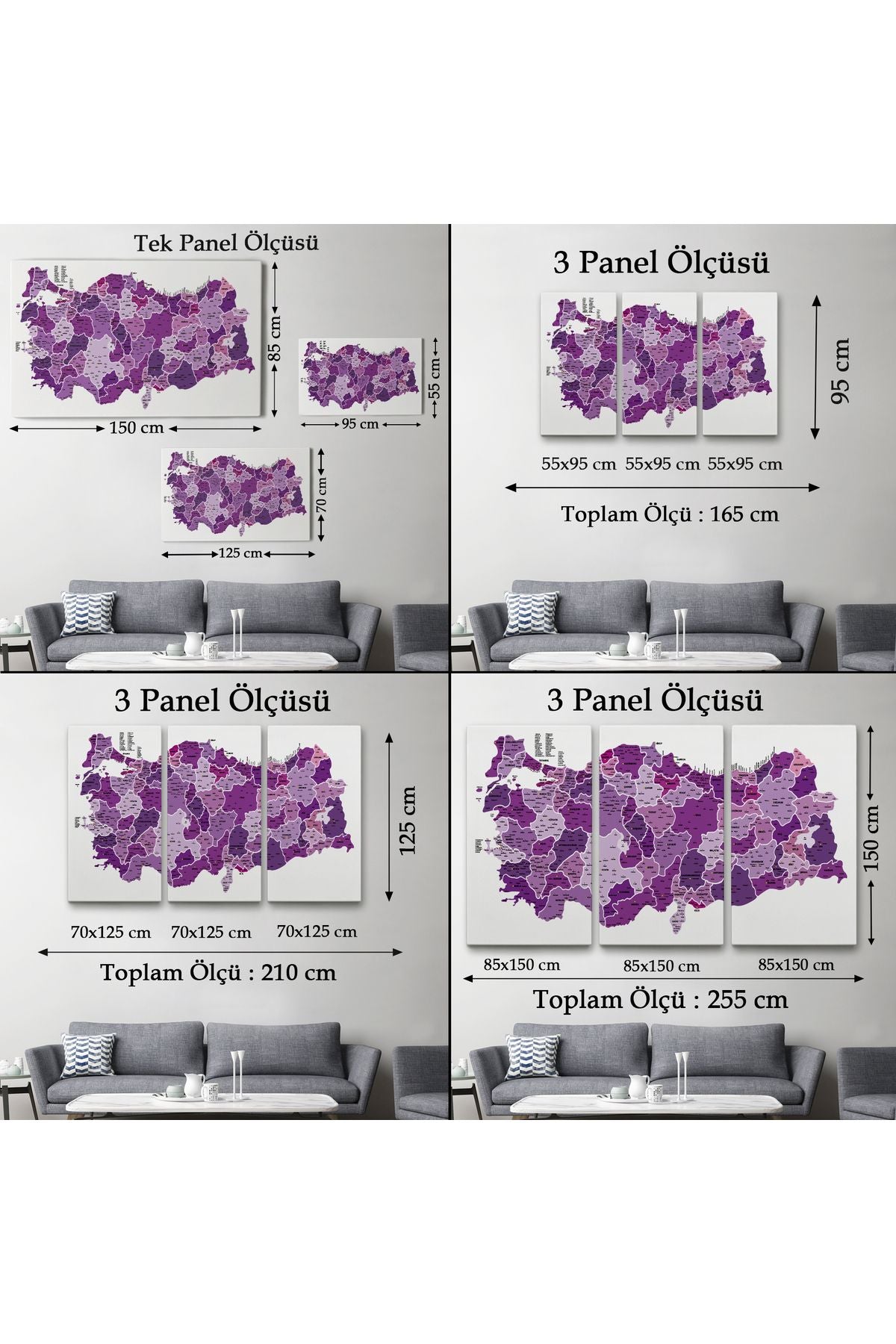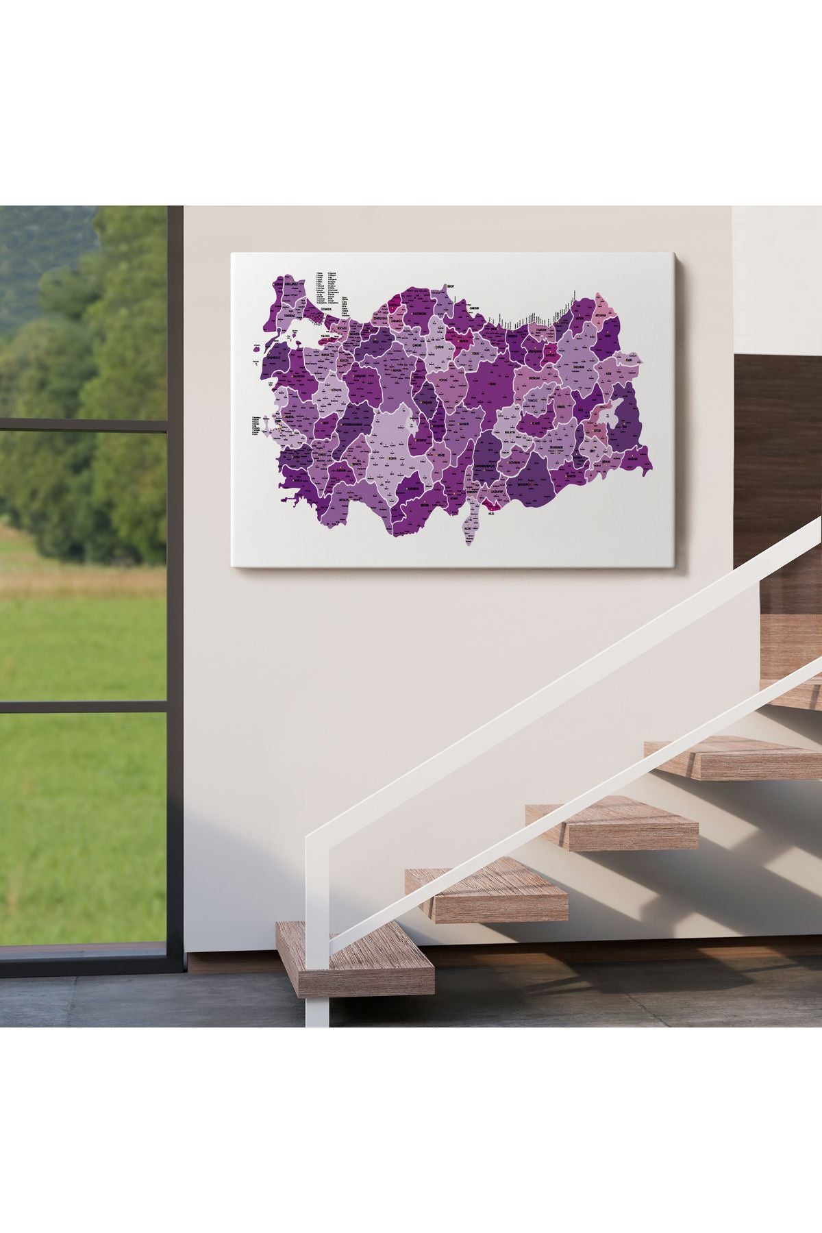 Türkiye Haritası Kanvas Tablo İl ve İlçeli Ayrıntılı Eğitici Dekoratif Tablo 3025