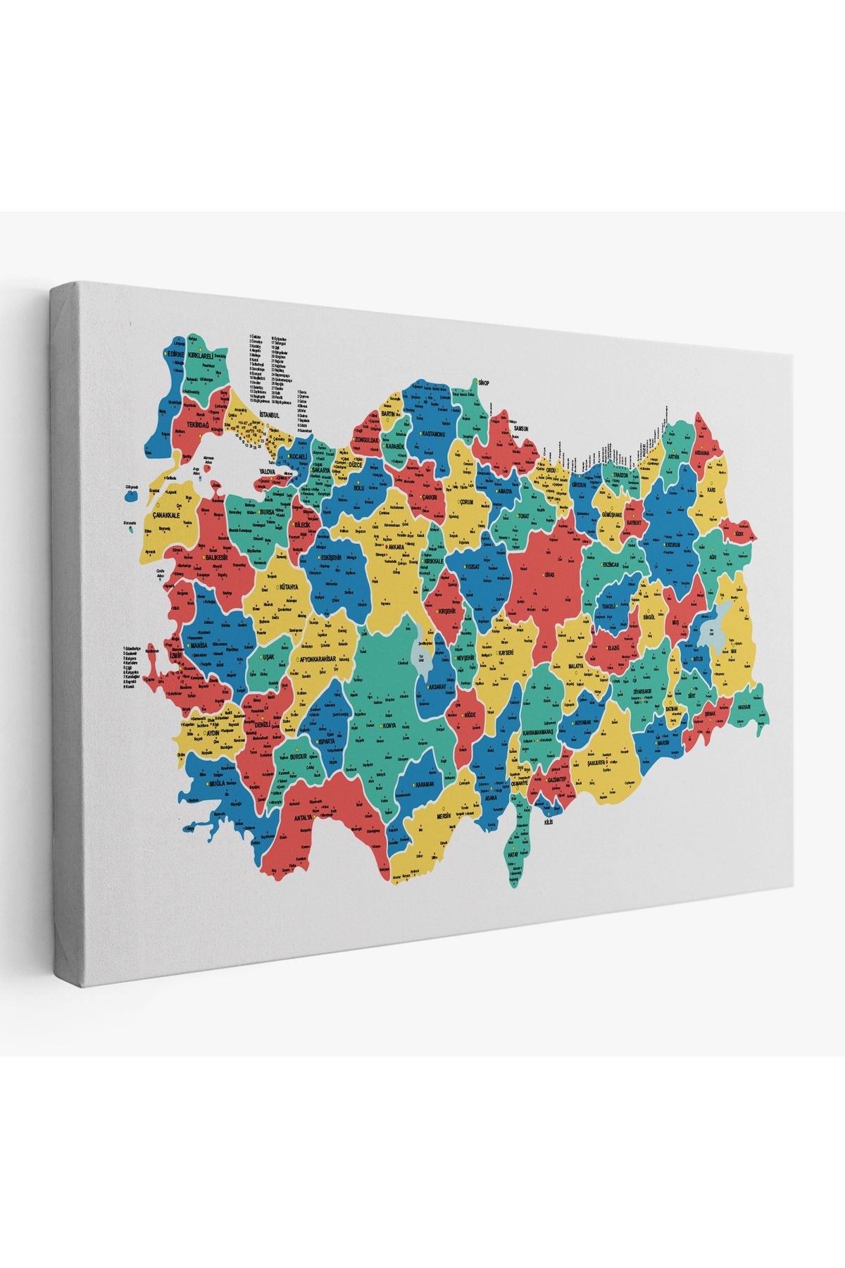 Türkiye Haritası Kanvas Tablo İl ve İlçeli Ayrıntılı Eğitici Dekoratif Tablo 3047