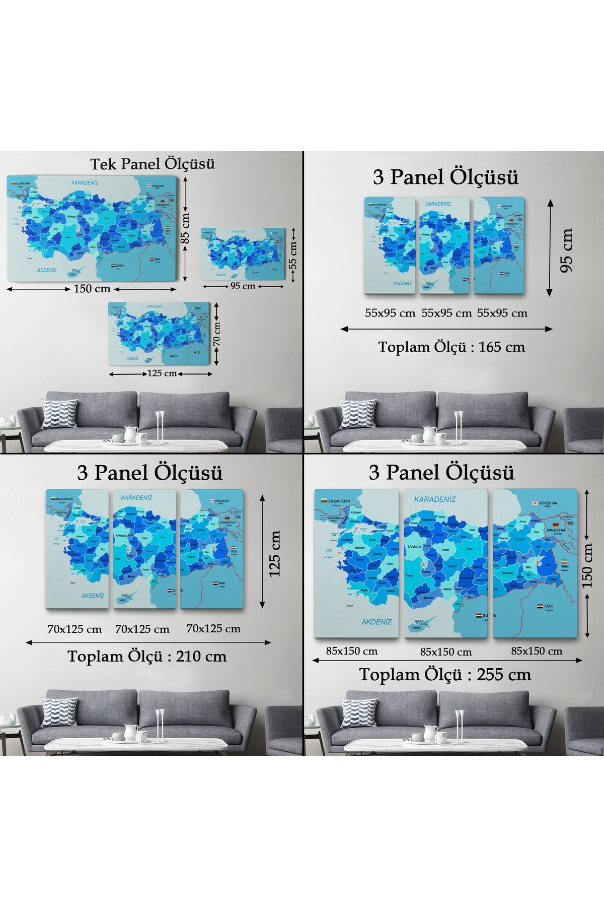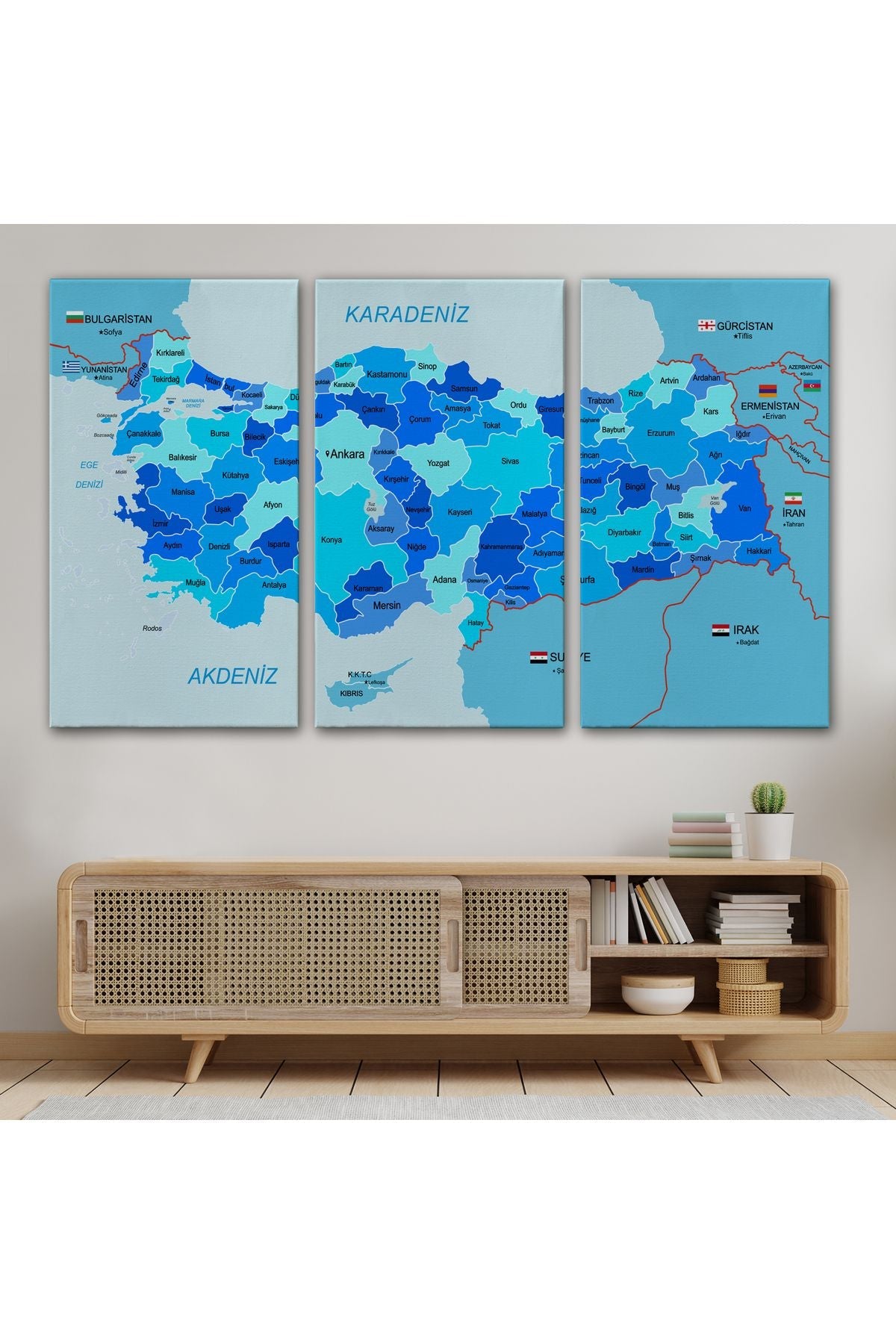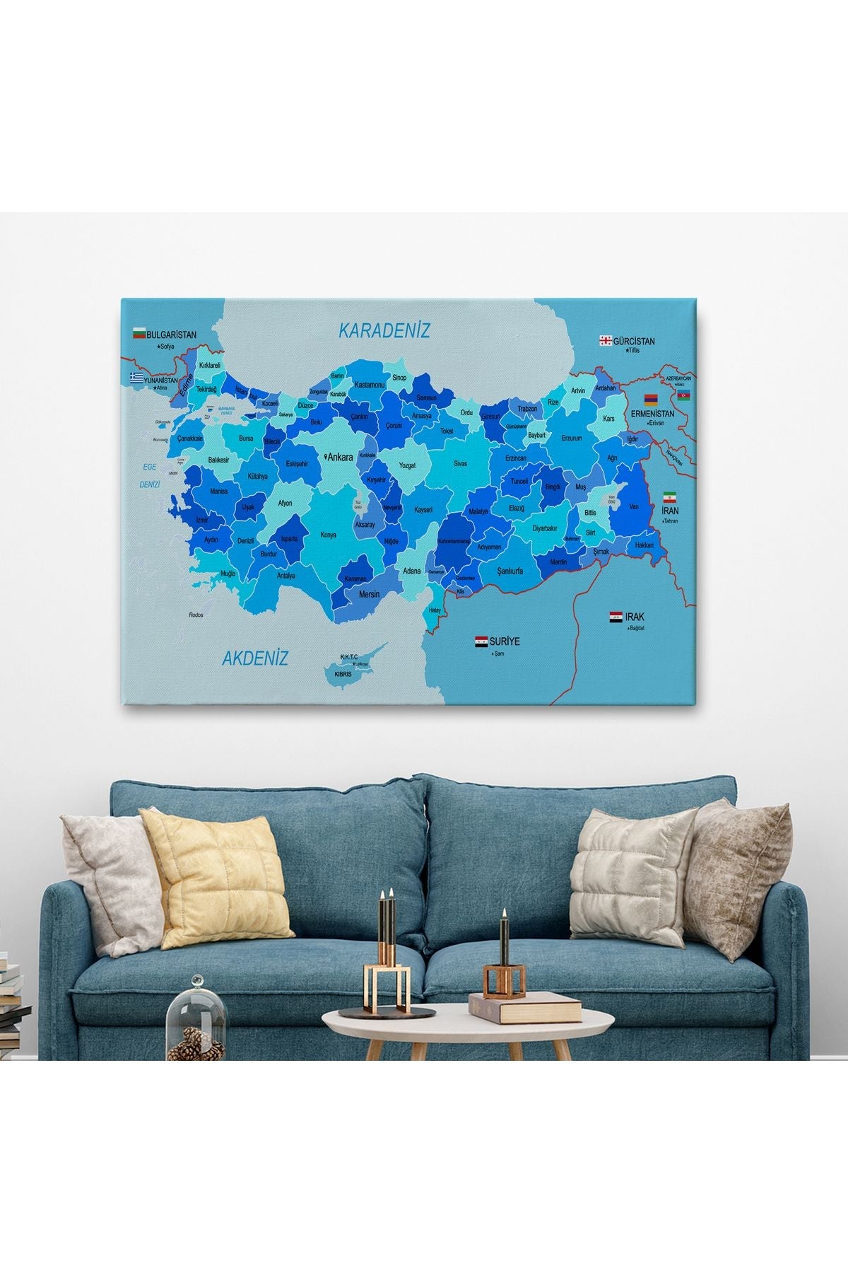 Türkiye Haritası Kanvas Tablo Sınır Komşulu Eğitici Dekoratif Tablo 3086
