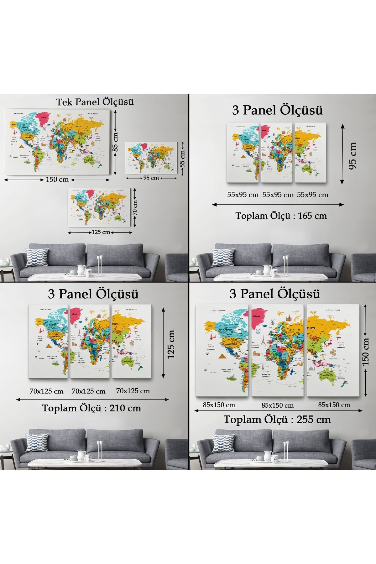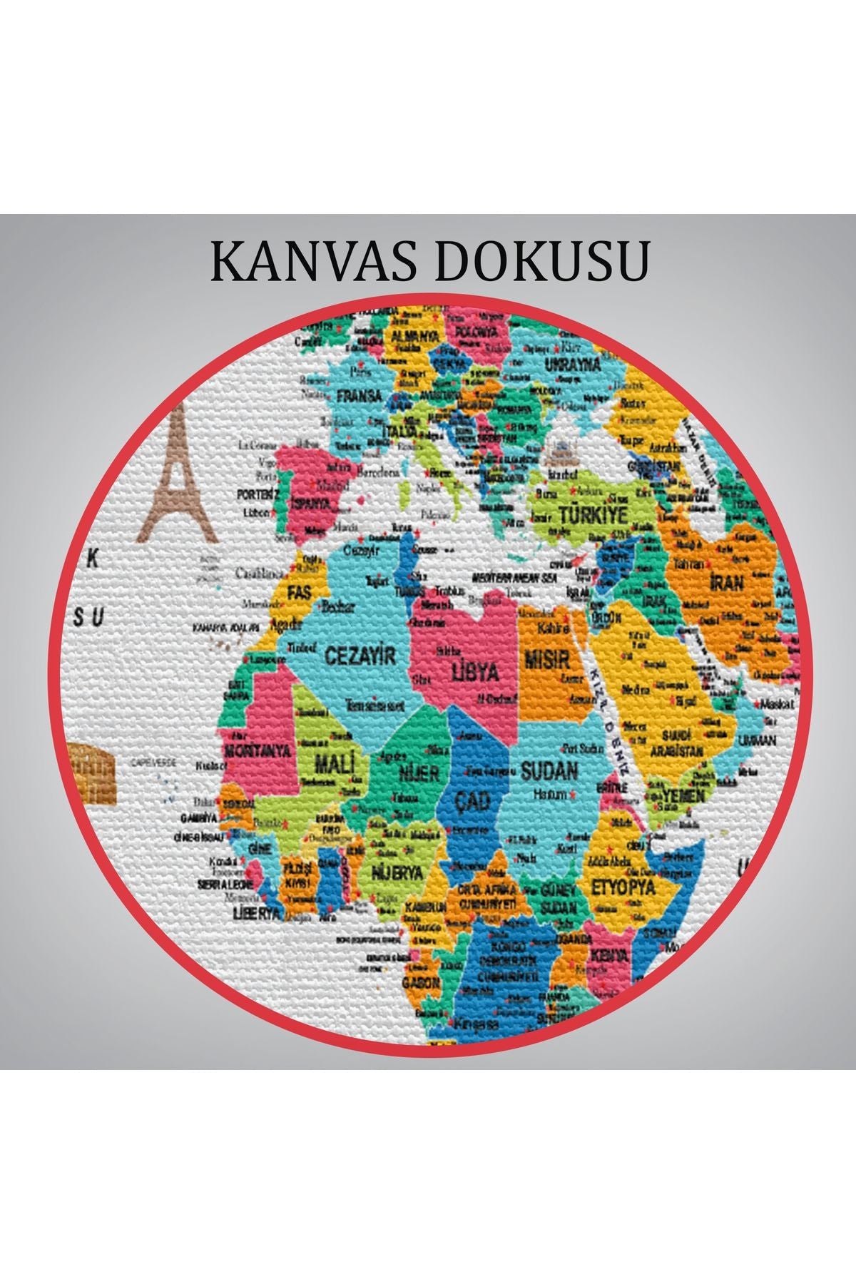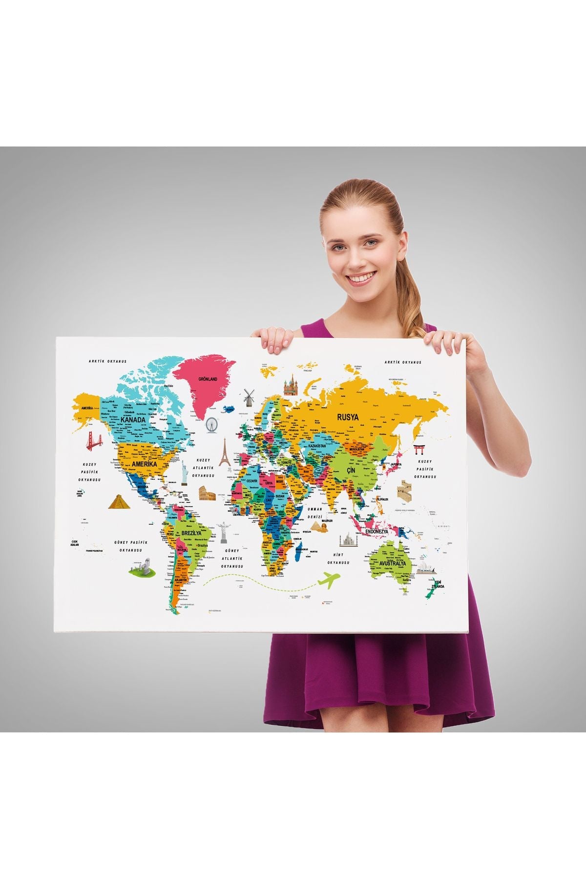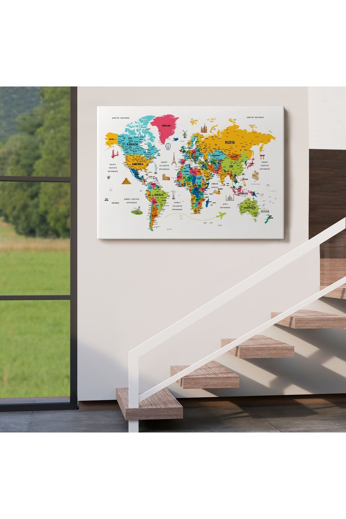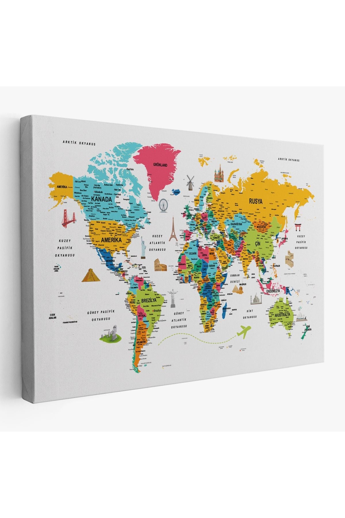 Türkçe Dünya Haritası Son Derece Ayrıntılı Eğitici ve Sembollü Kanvas Tablo 3214