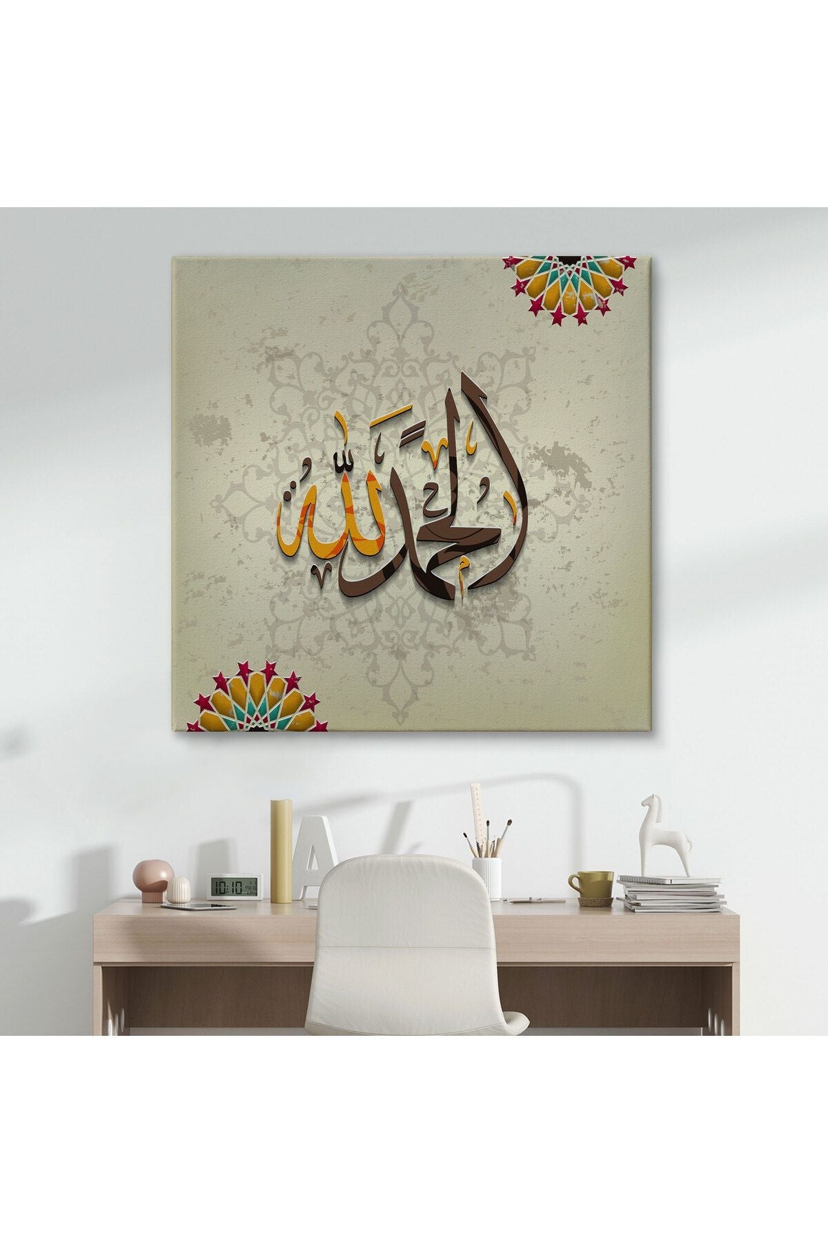 Hat Sanatı İle Arapça Elhamdülillah, Yazılı Dekoratif Kanvas Tablo-3266