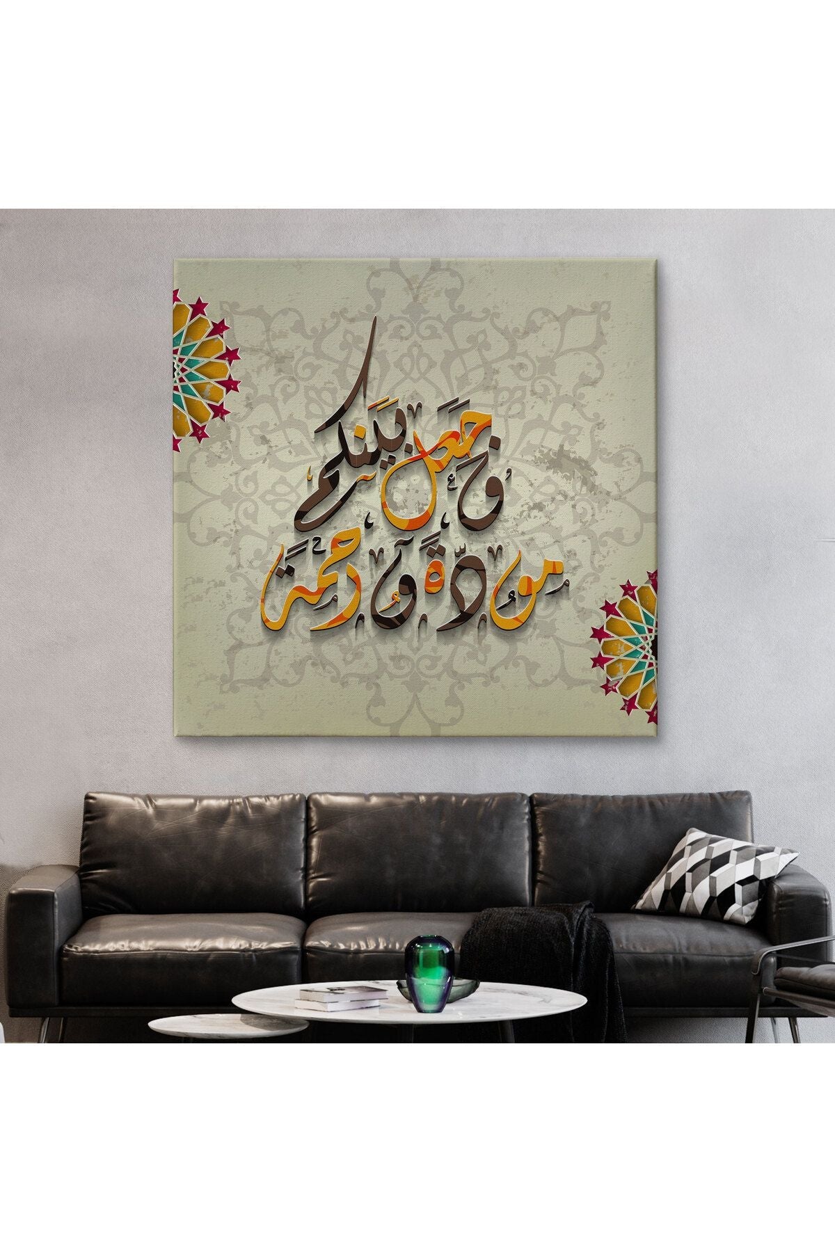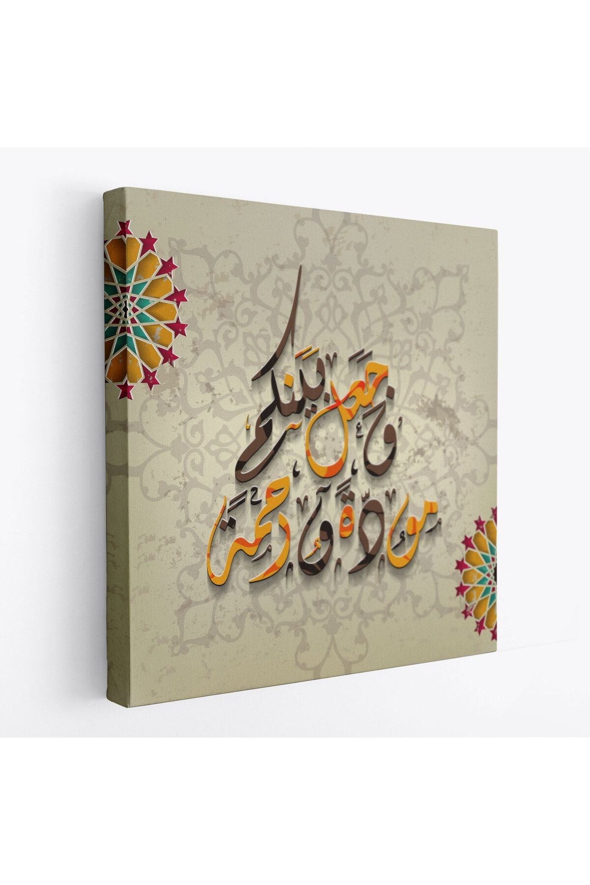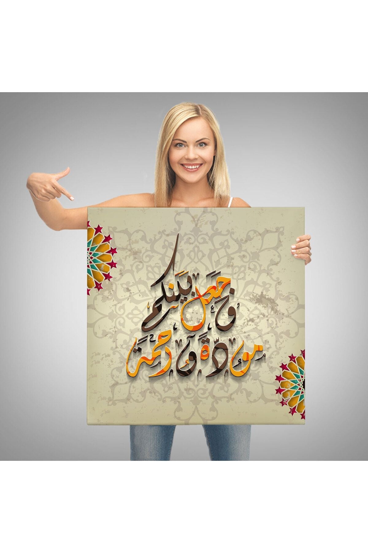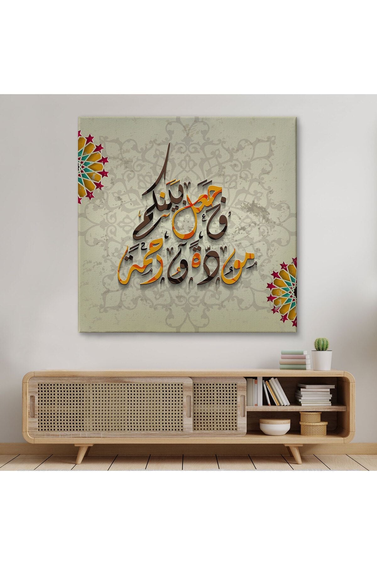 Allah Aranıza Sevgi ve Merhamet Yerleştirdi Yazılı Dekortif Duvar Kanvas Tablo-3273