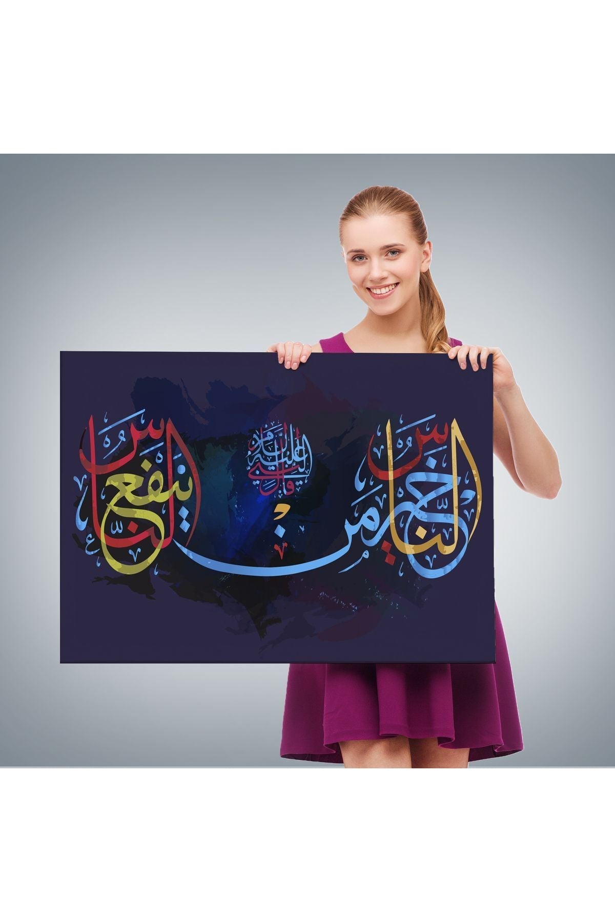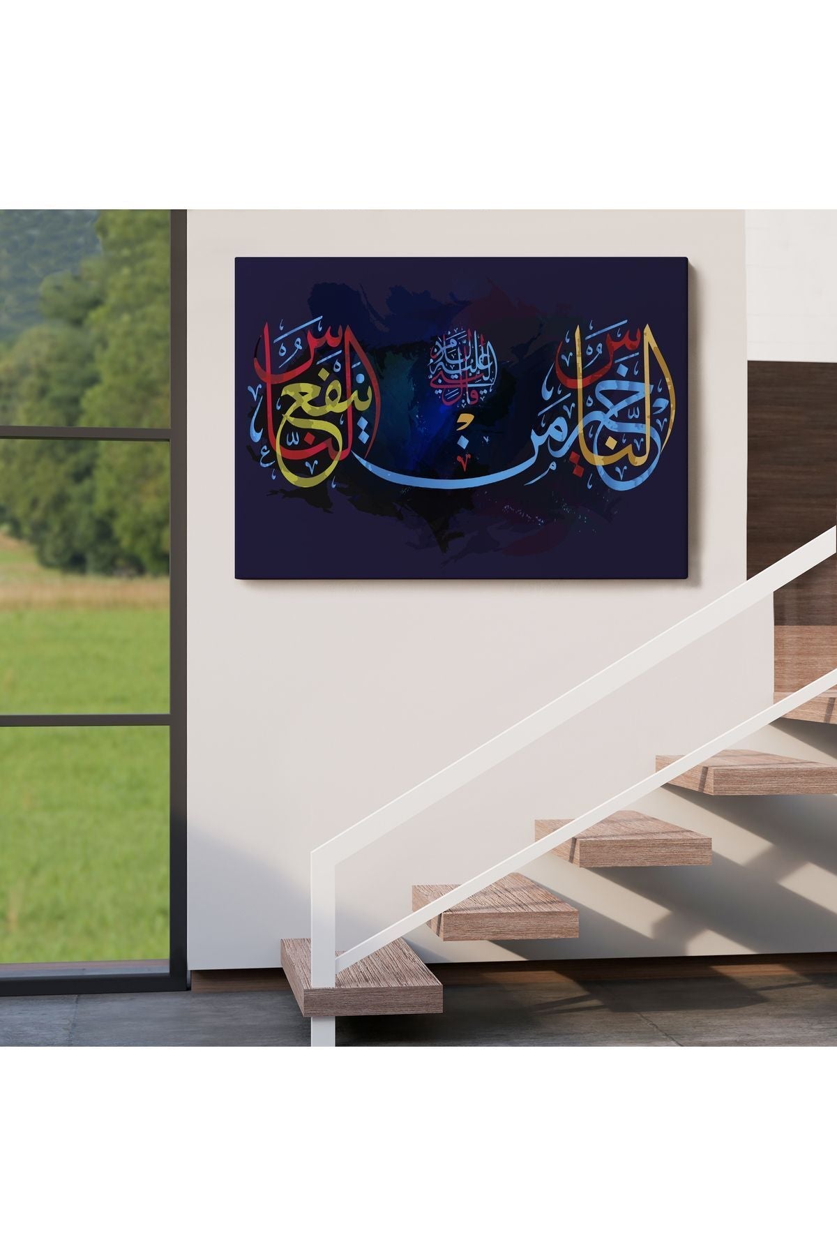 İnsanların En Hayırlısı İnsanlara Faydalı Olandır Yazılı Dekoratif Kanvas Tablo-3278