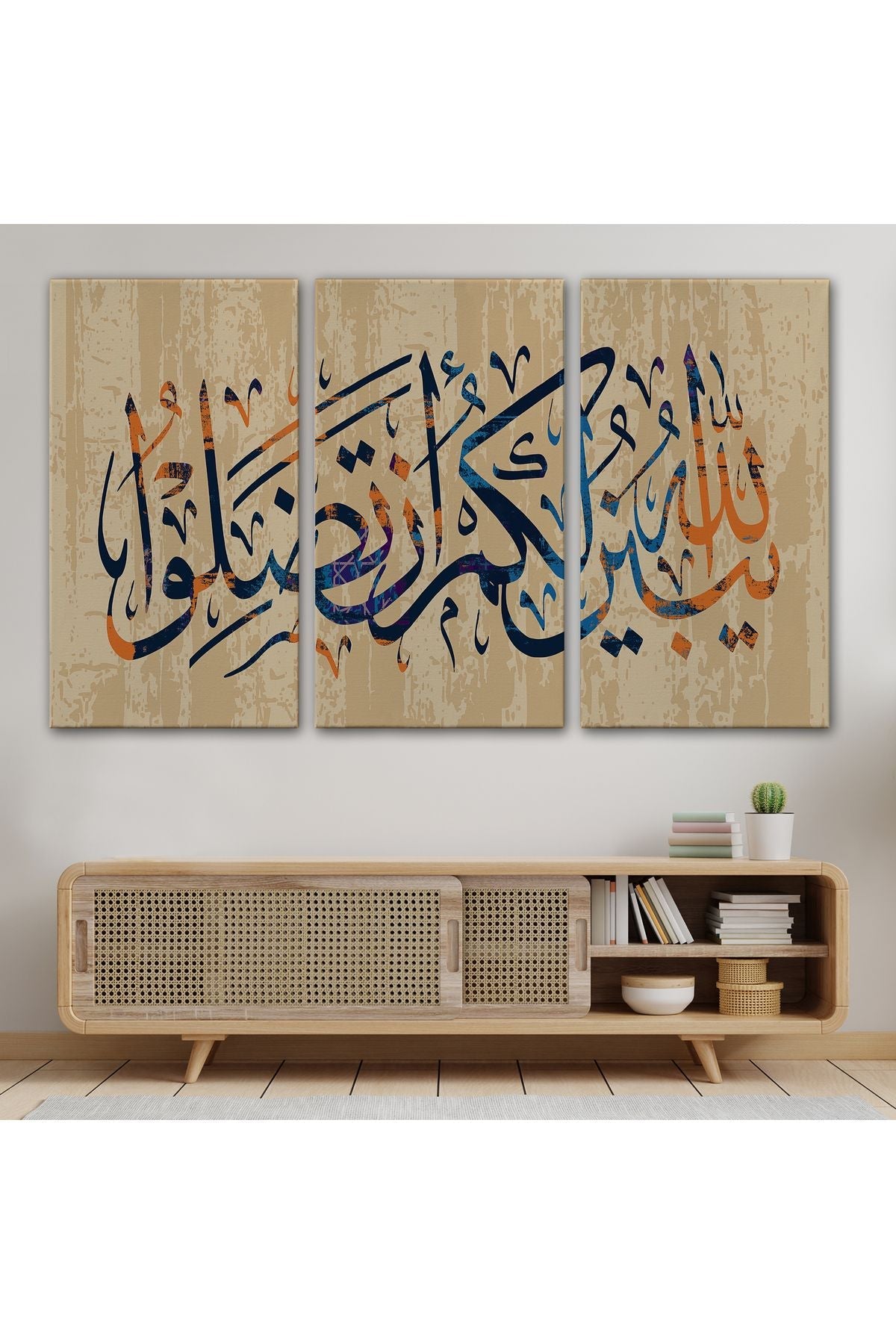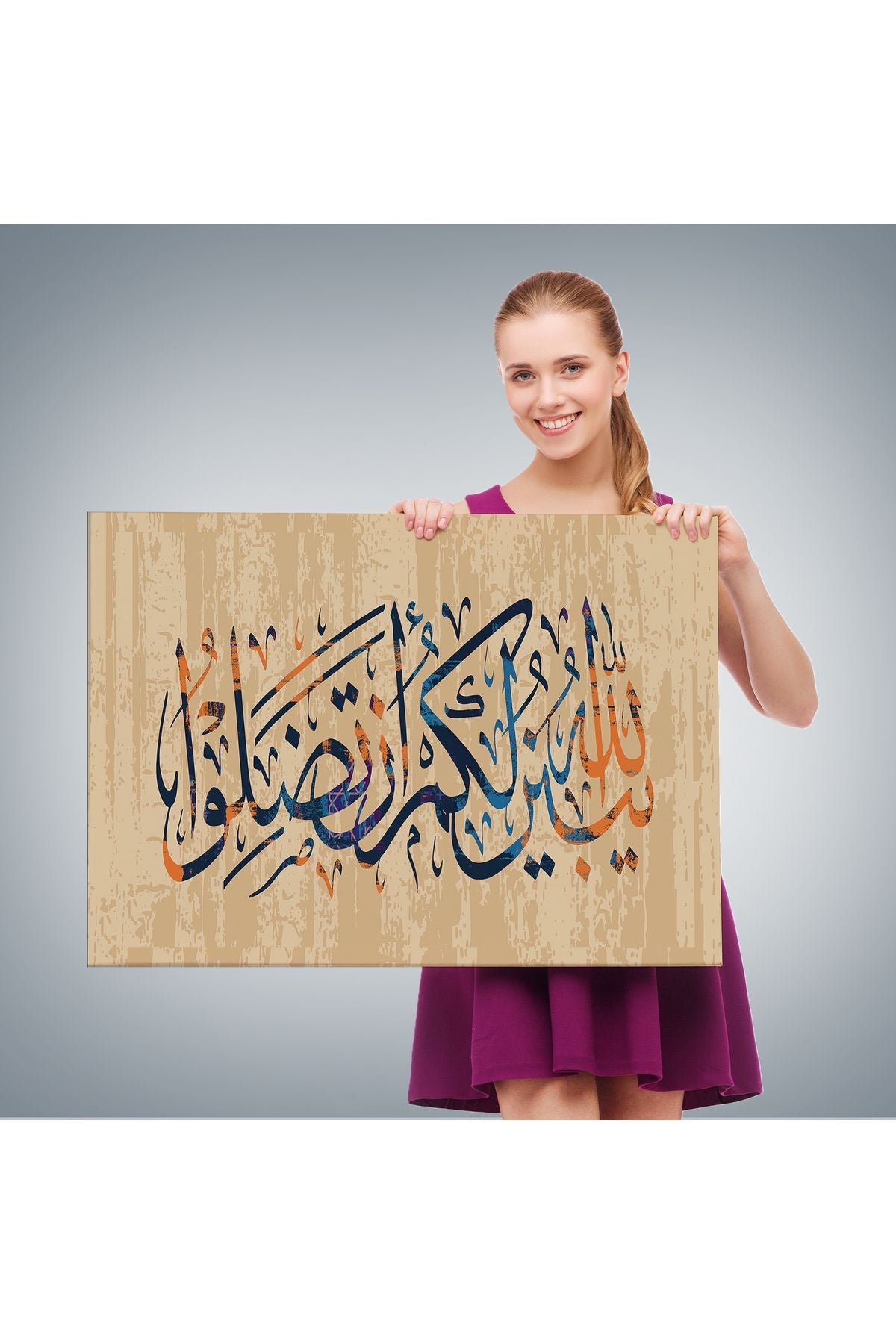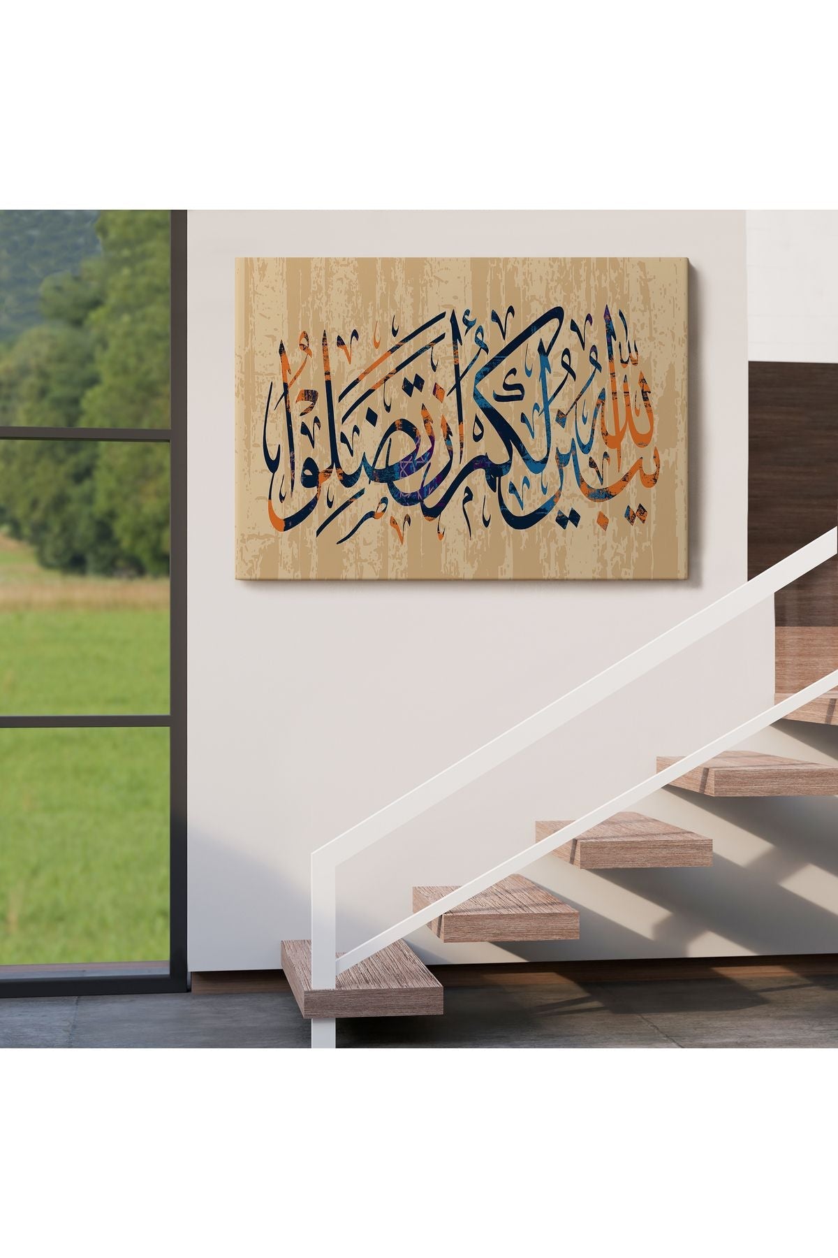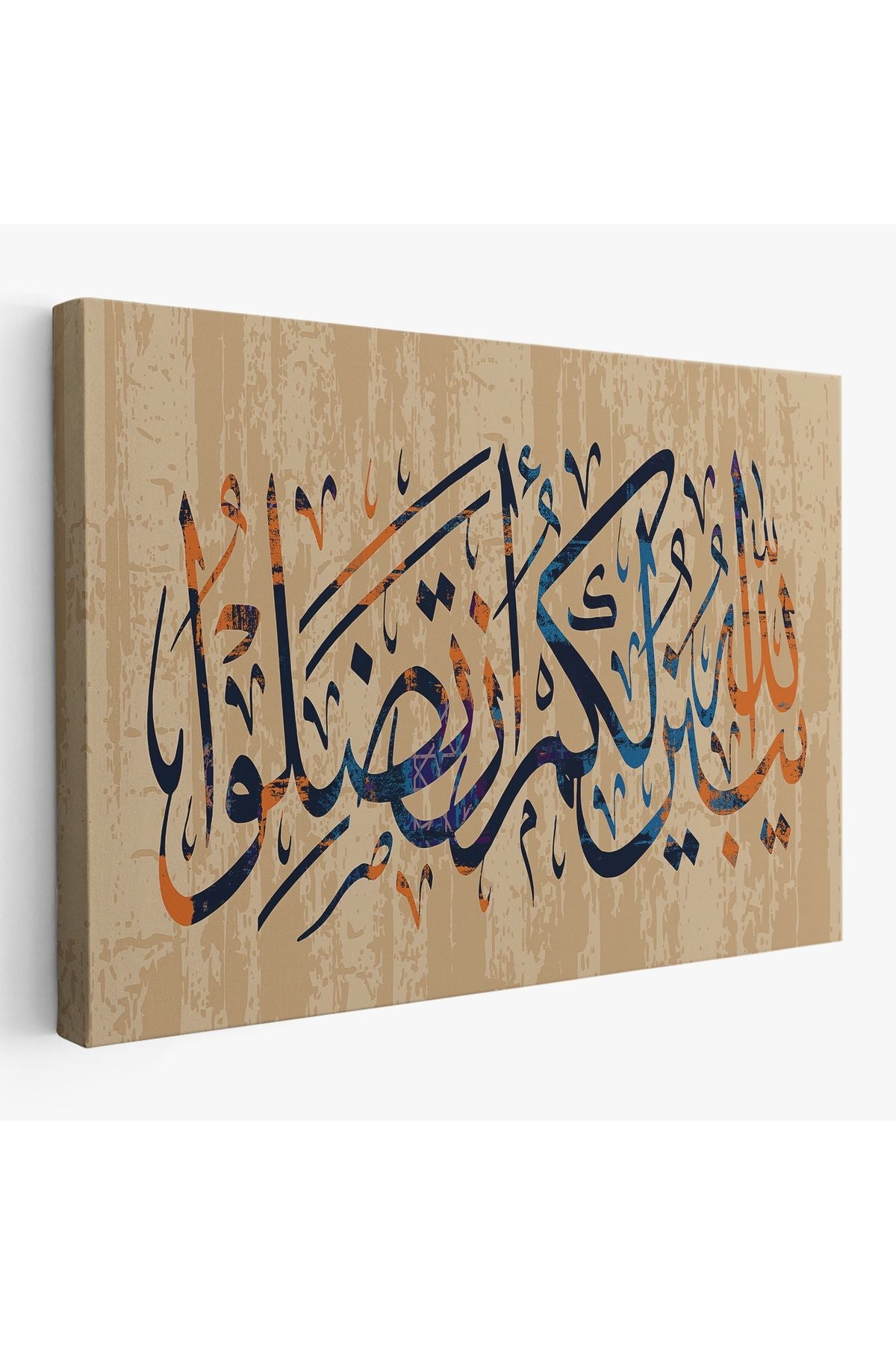 Allah Her Şeyi Hakkıyla Bilendir (Nisa 176) Yazılı Dekoratif Kanvas Tablo-3306