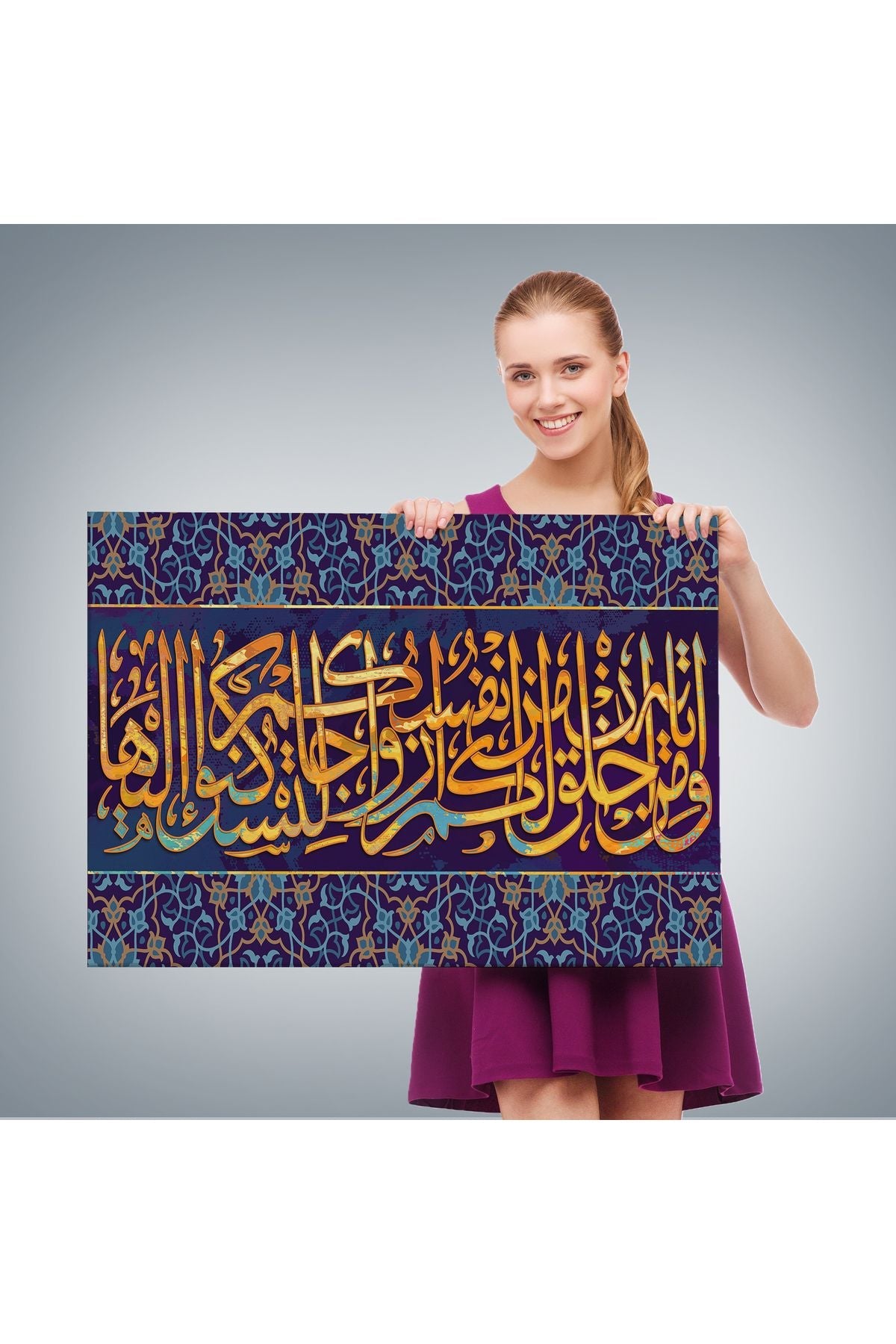 Dekoratif Kanvas Tablo-Rum Suresi 21 Ayet Yazılı Hat Sanatı Duvar Tablosu 3343