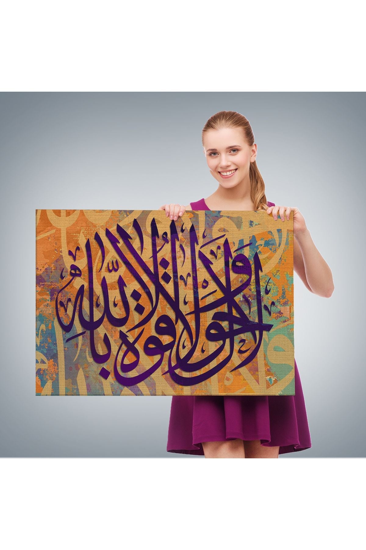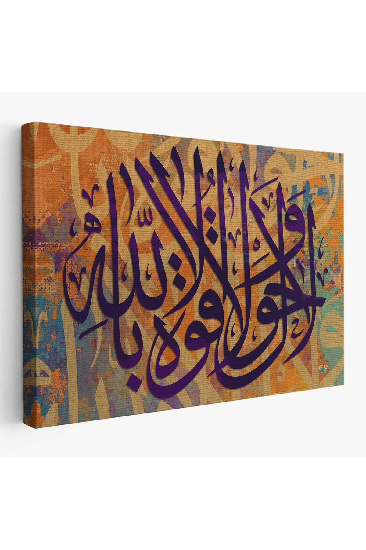 Allahdan Baska İlah Yoktur Güç Ondadır Yazılı Dekoratif Kanvas Tablo-3356