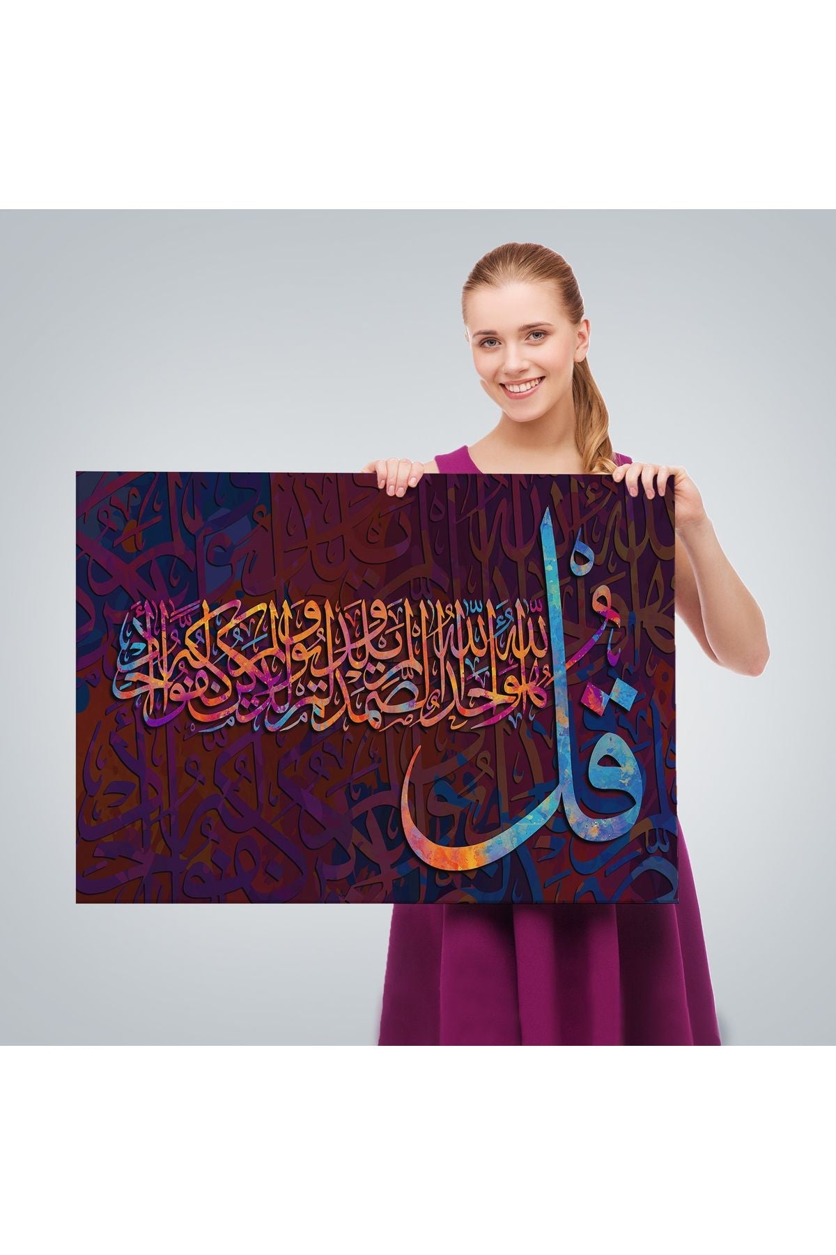HG İhlas Suresi Yazılı Dekoratif Kanvas Tablo-3413