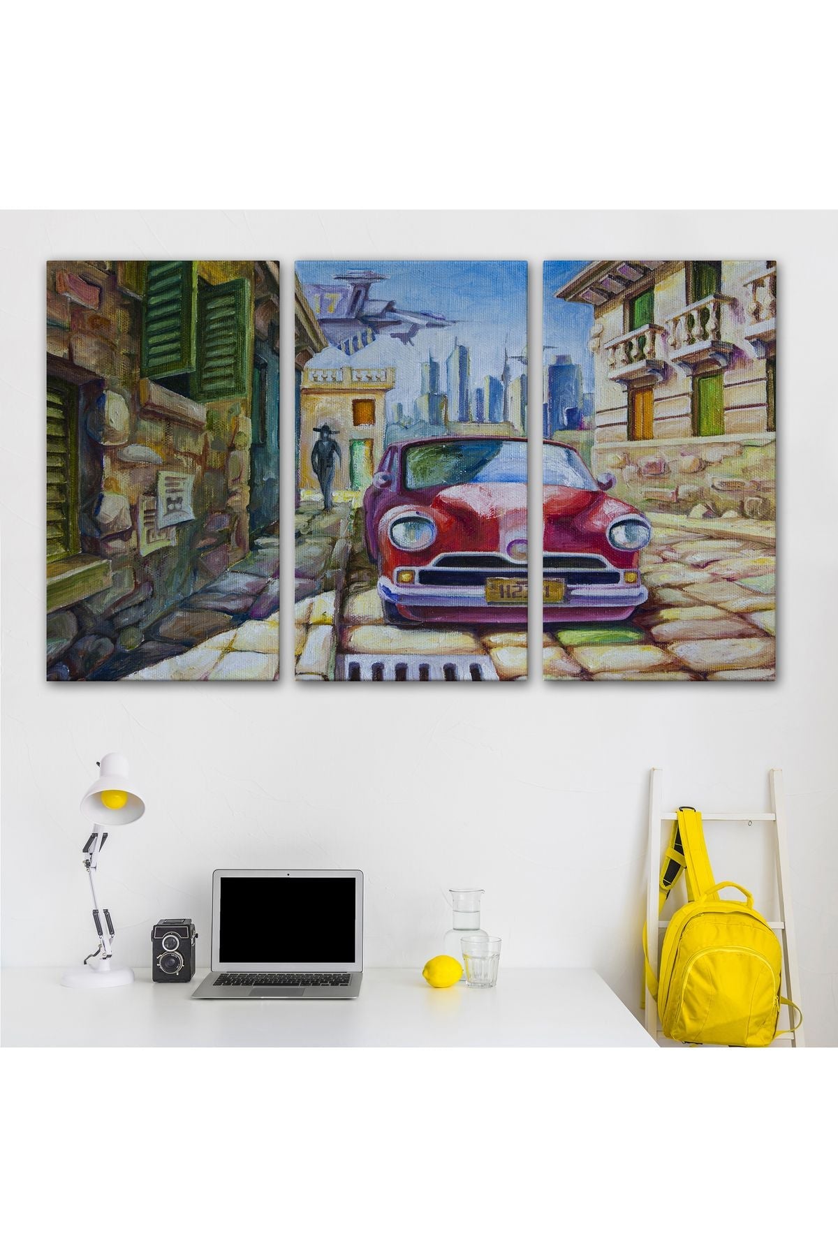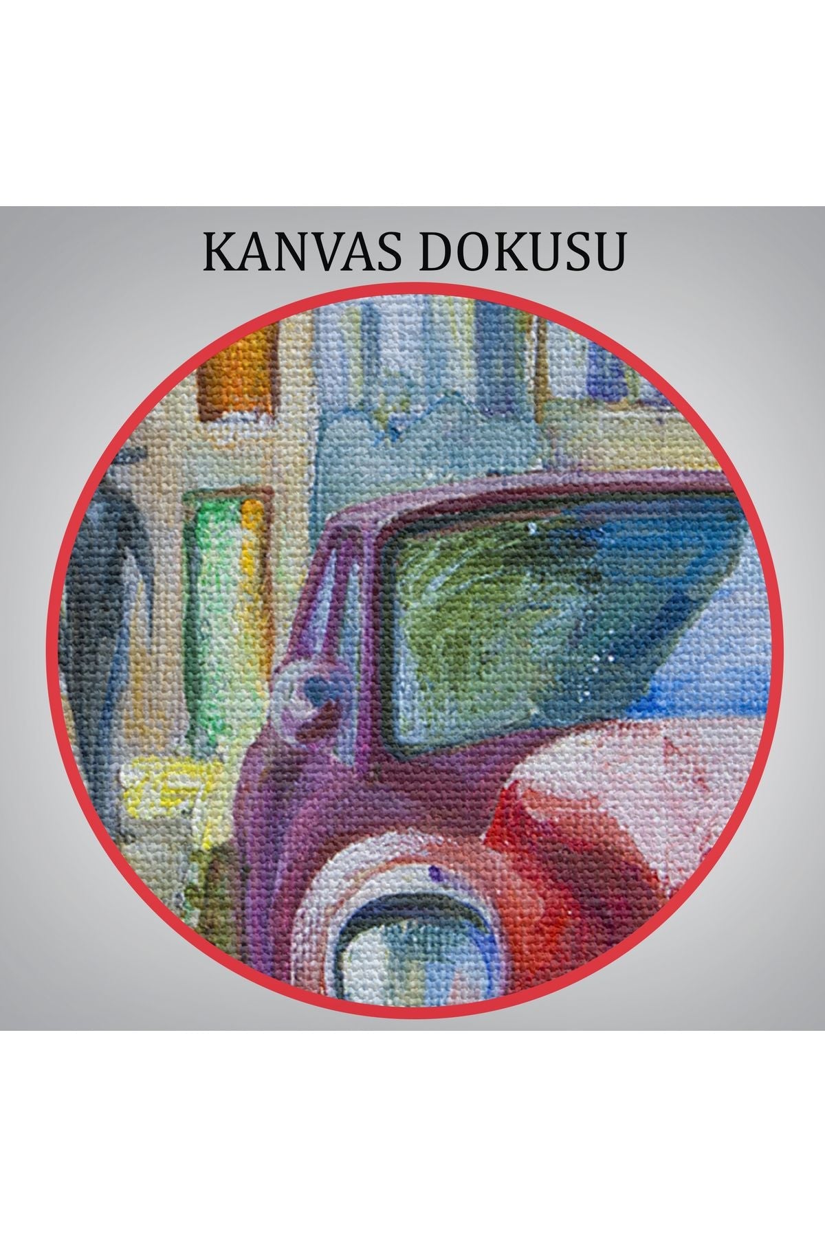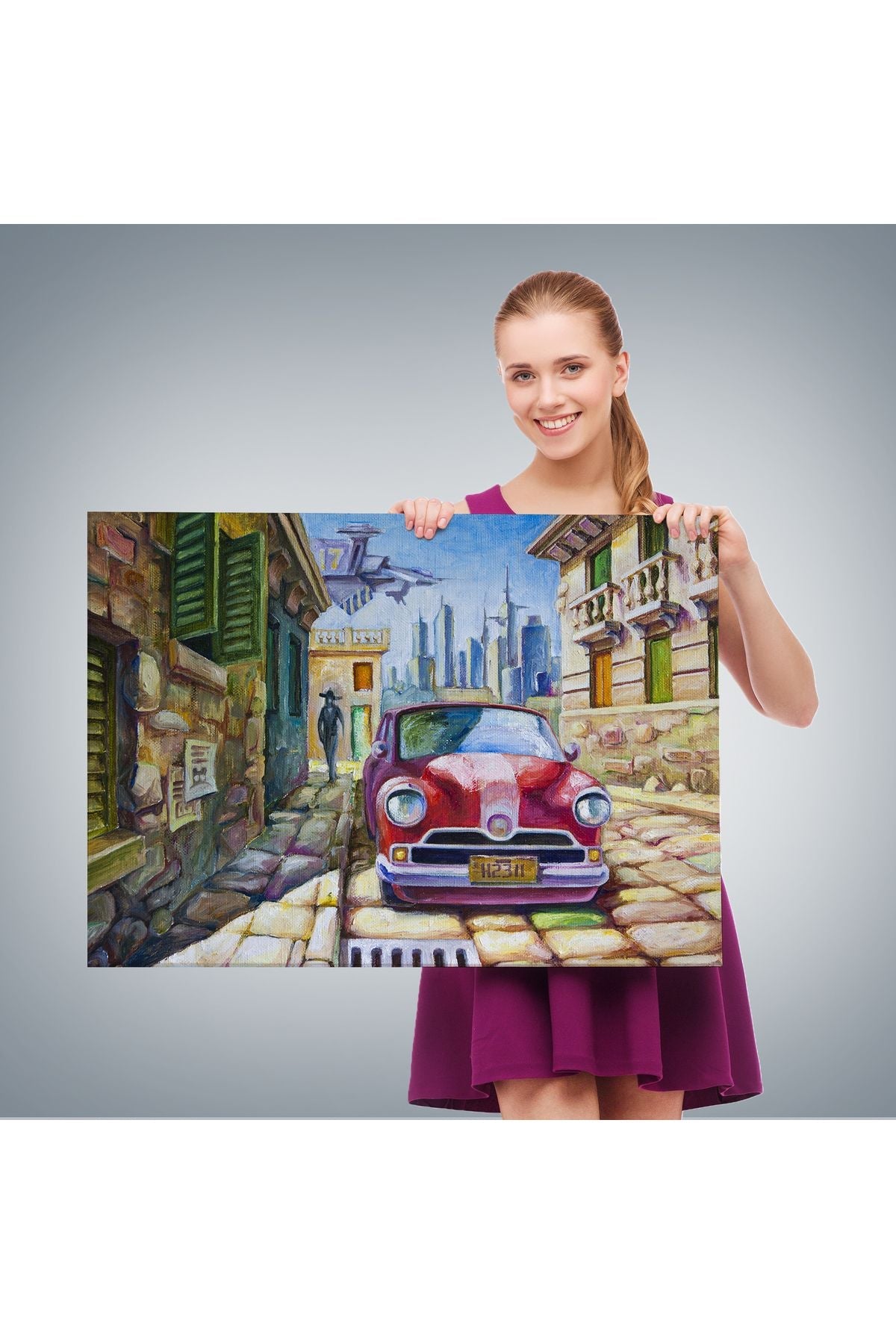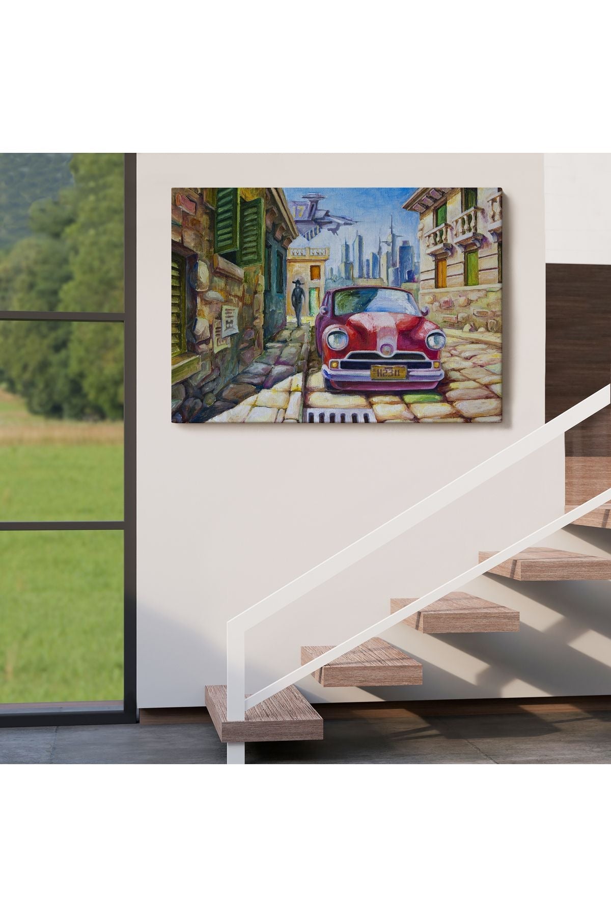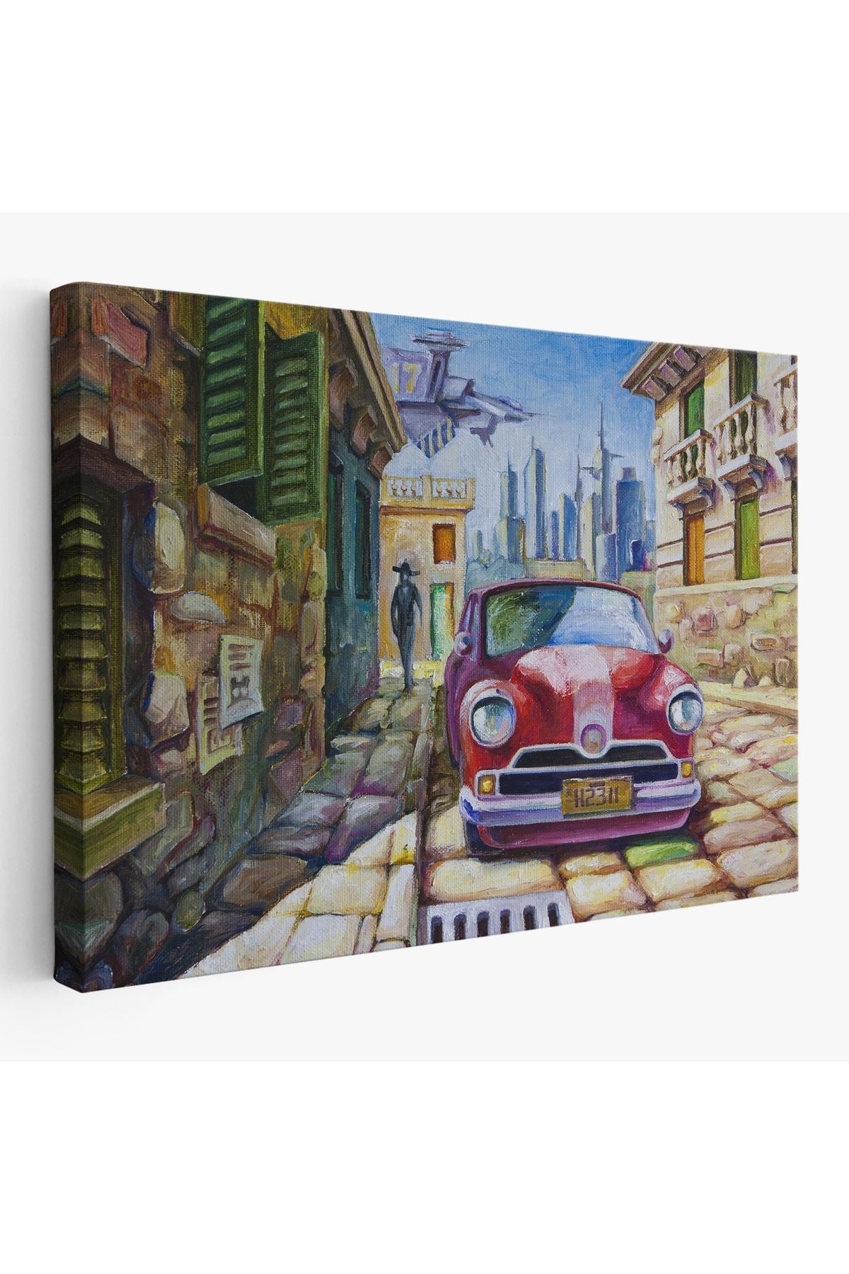 Dekoratif Kanvas Tablo, Duvar Tablosu-Yağlıboya Görünüm Eski Kırmızı Araba 3433